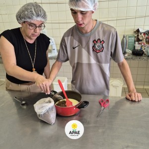 Os alunos do Socioeducacional participaram de uma atividade especial na cozinha didática, com a preparação e degustação de um delicioso bolo de chocolate.