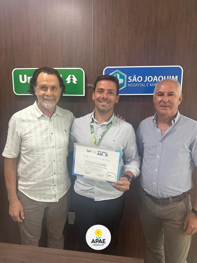 Os diretores da APAE Franca estiveram na Unimed Franca para um encontro especial com o Dr. Helton Vila Real dos Santos, médico urologista e Diretor Financeiro da instituição, que será Embaixador do 14º Leilão União de Forças – Um Lance de Amor.
