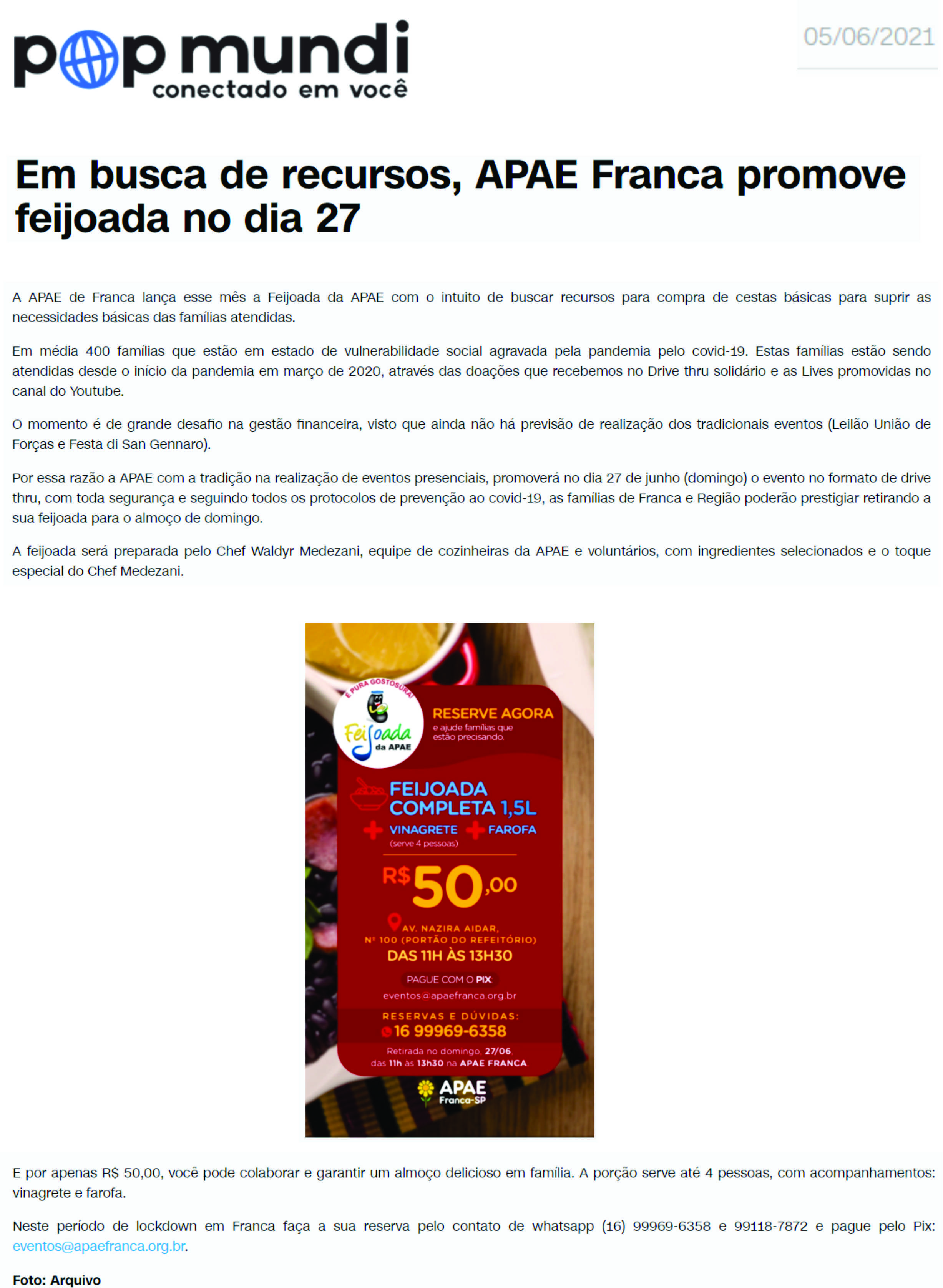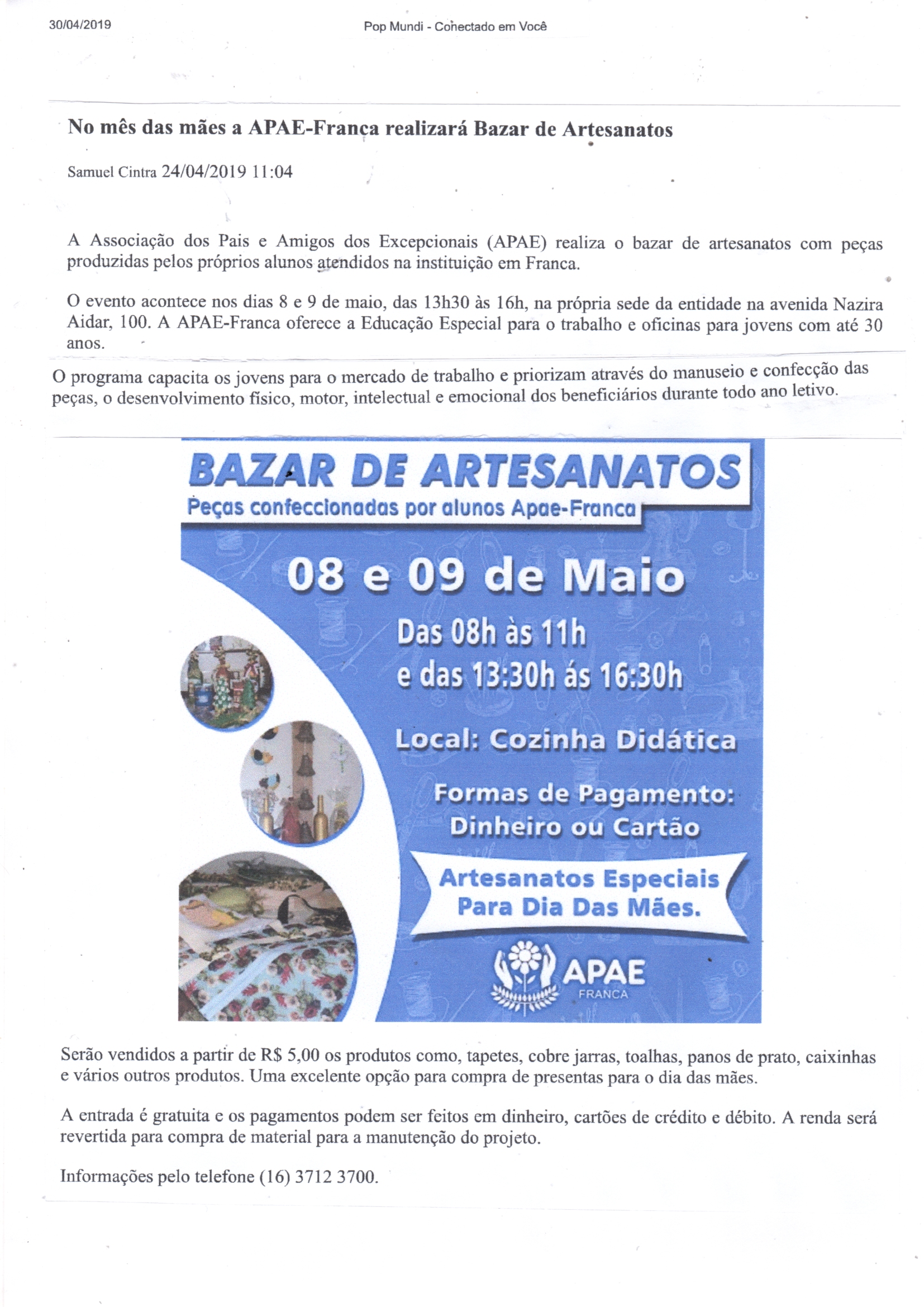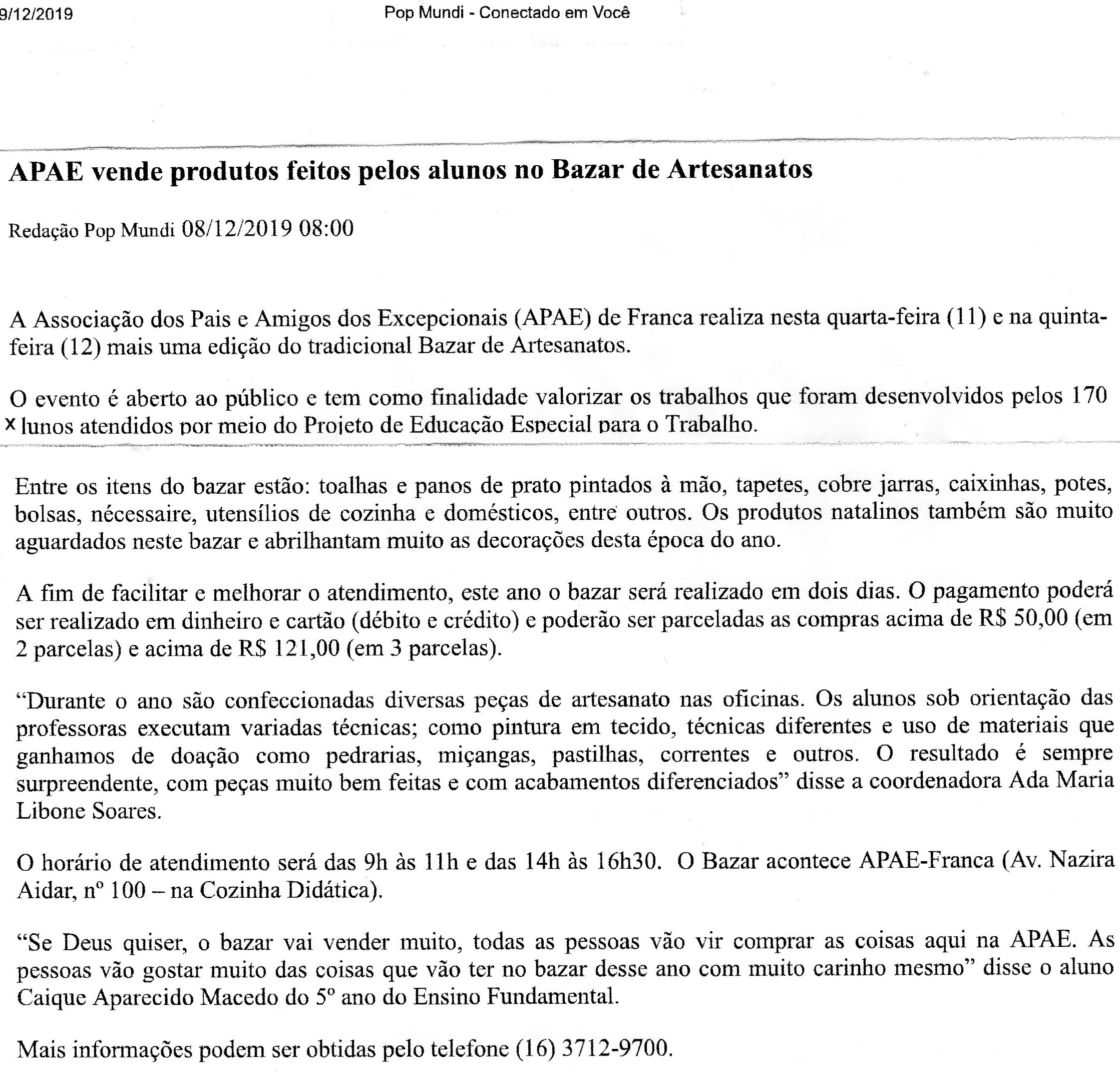 02.07.25 Pop Mundi APAE realiza Bazar de Quitutes nesta sexta, em prol da Barraca da Foga...
