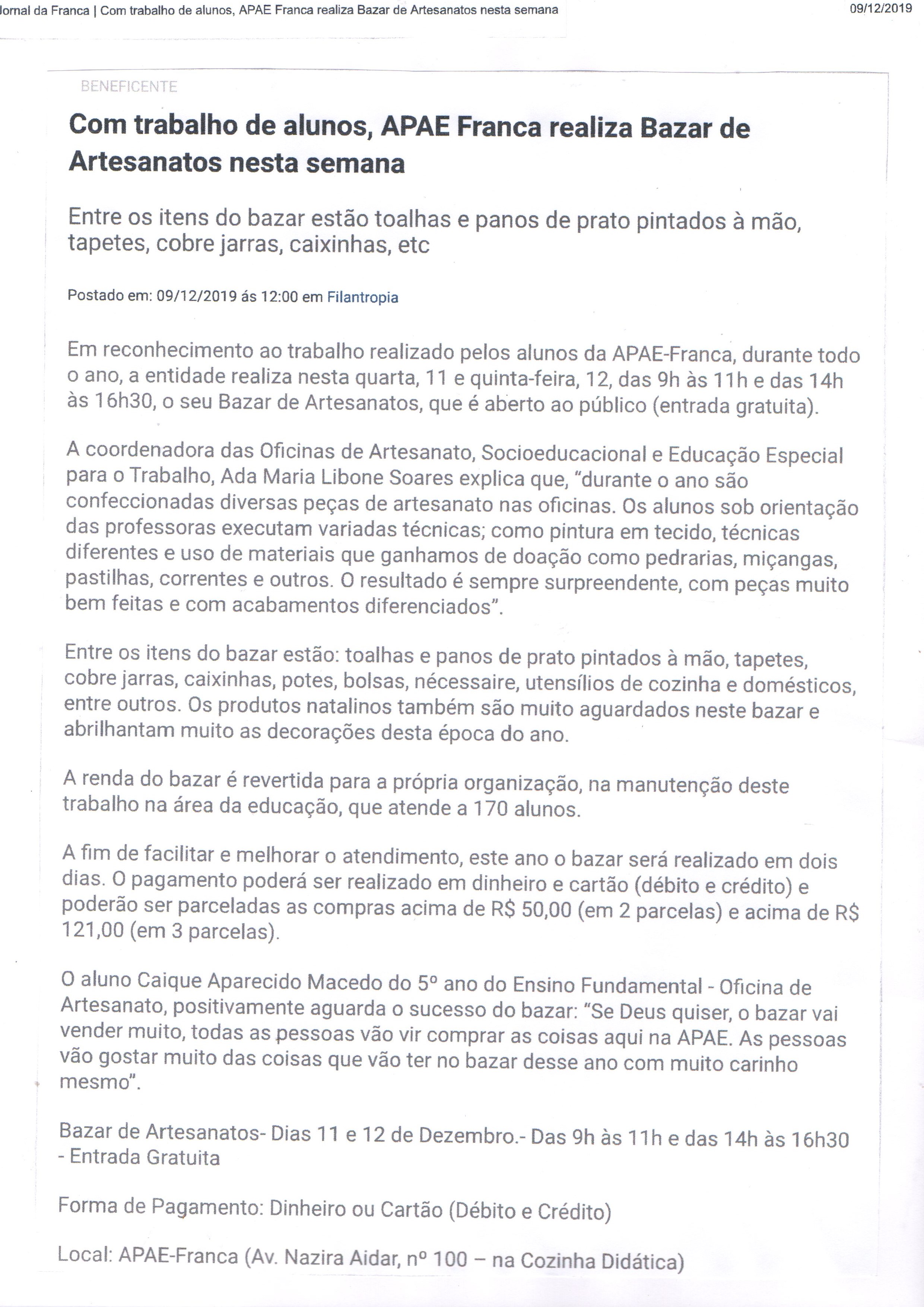 12/08/16 - DIÁRIO DA FRANCA - Apae organiza Bazar dos Quitutes hoje - 1208-diario-da-franc...