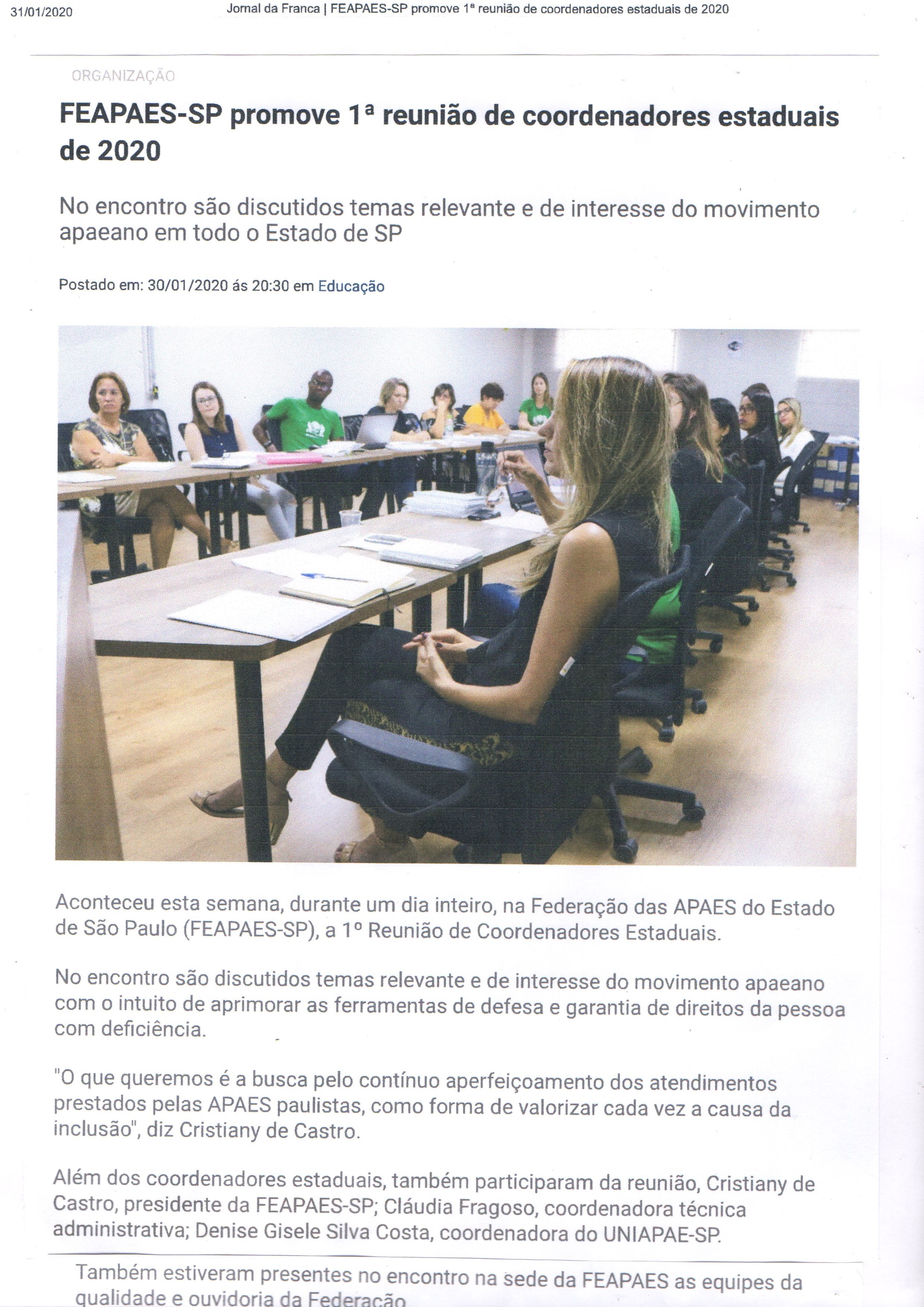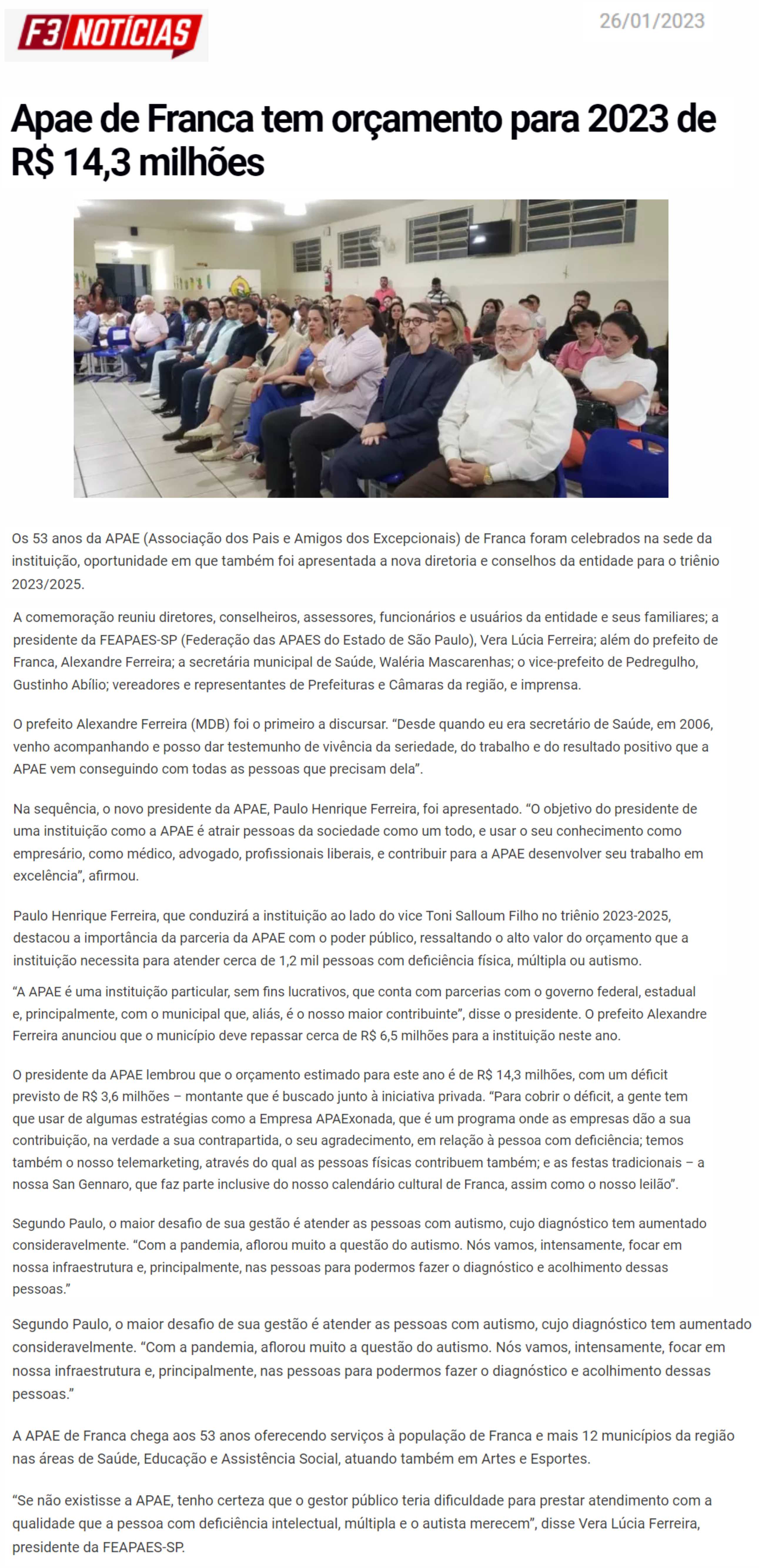 15.01.2026 JORNAL DA FRANCA Nova diretoria da APAE Franca promete foco em inovação e equil...