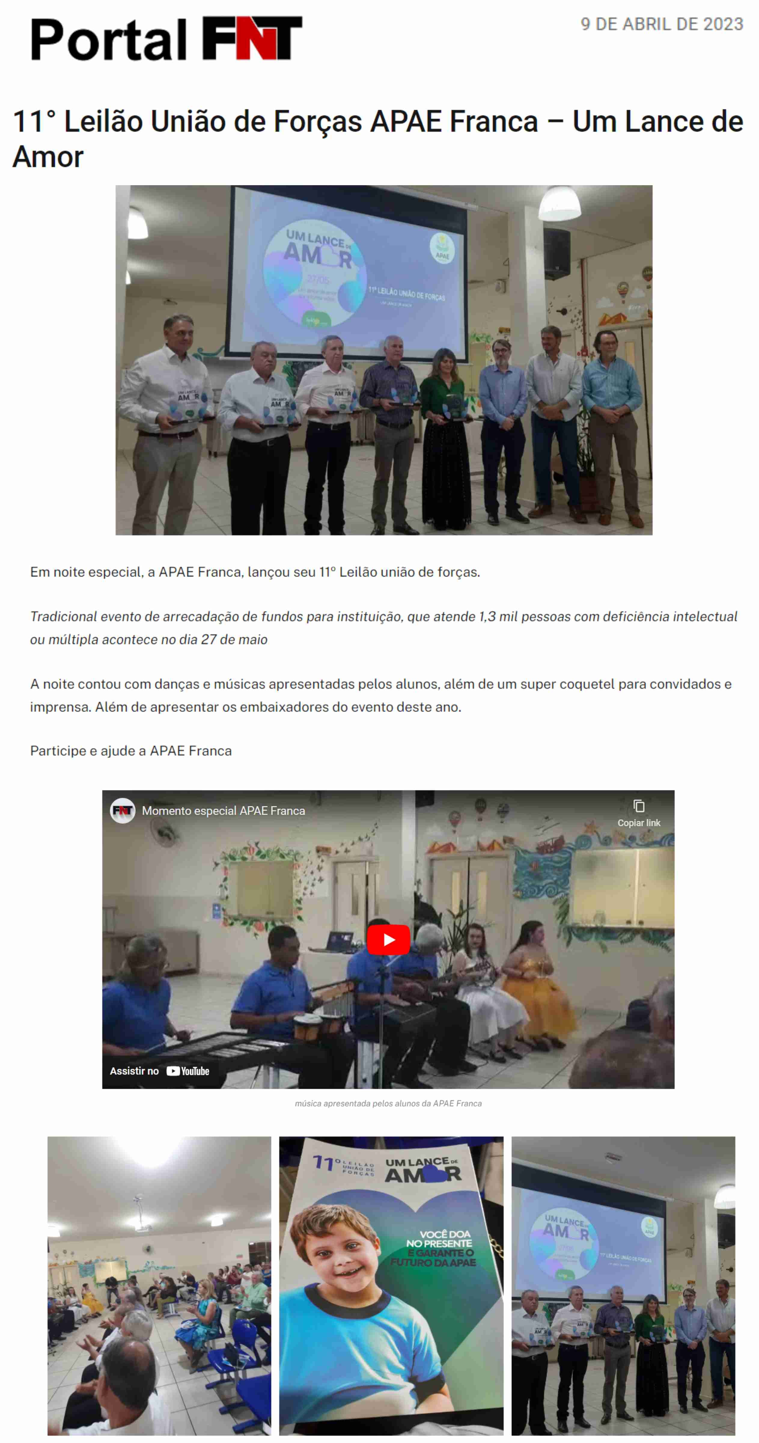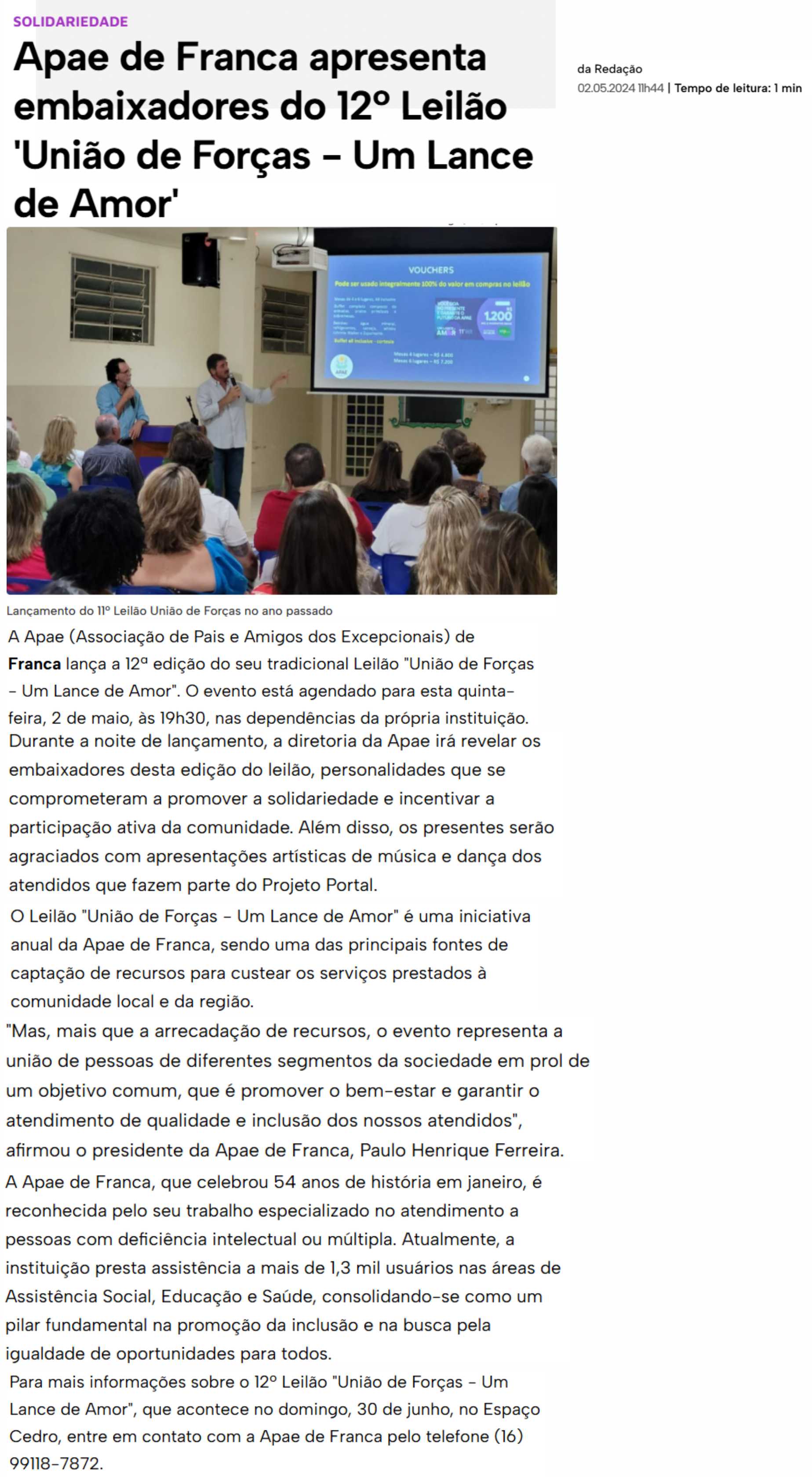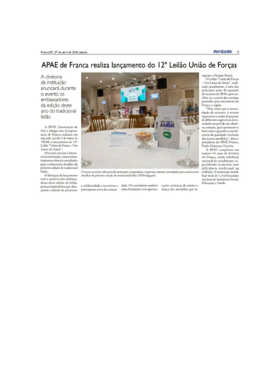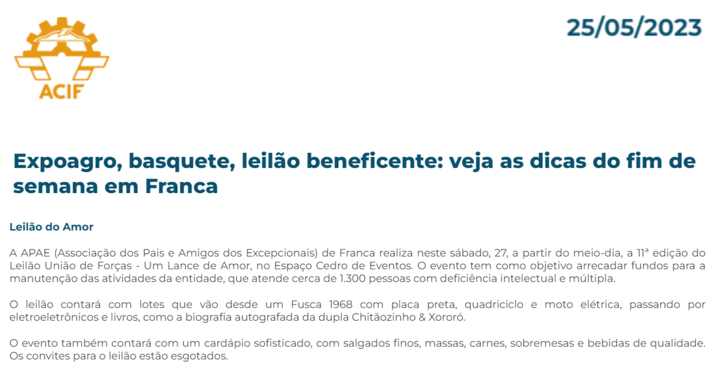 15.05.25 F3 Notícias APAE Franca faz leilão no dia 24.5 para ampliar atendimento para mais...