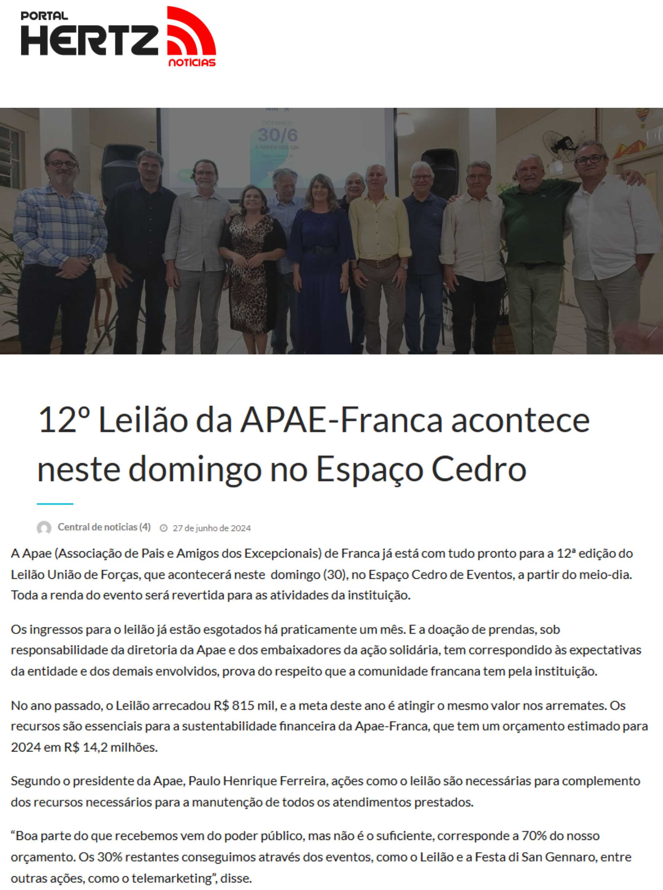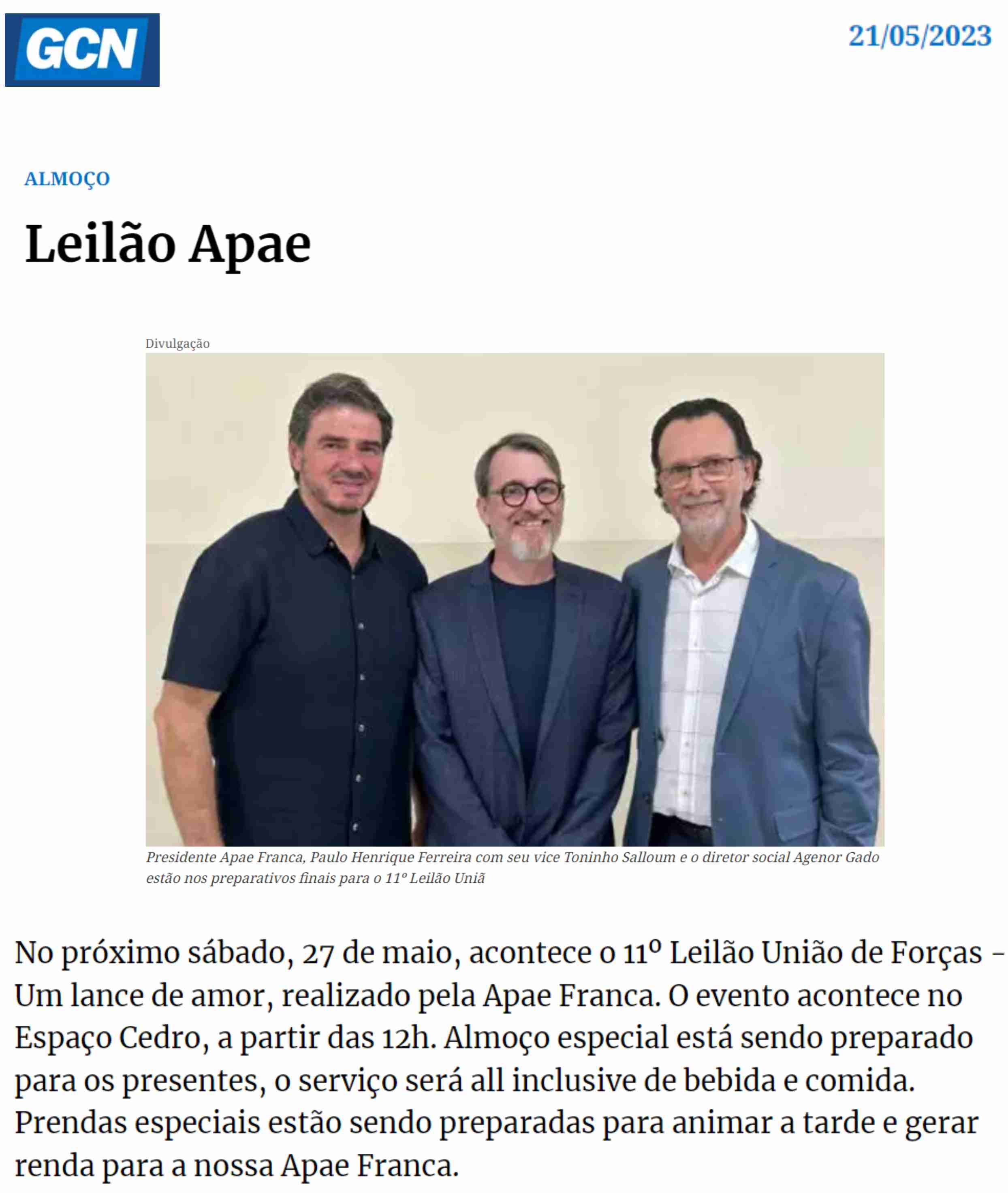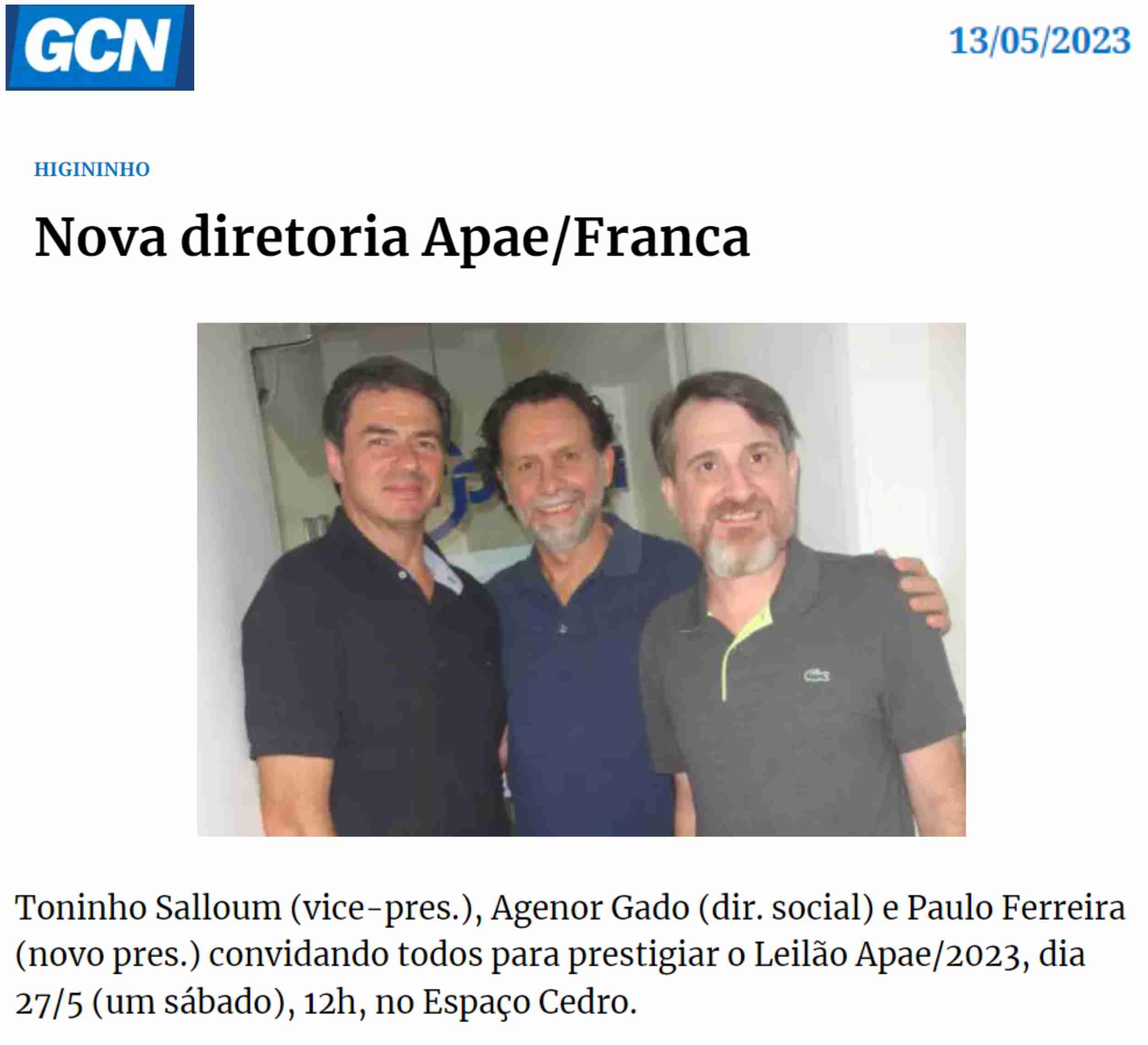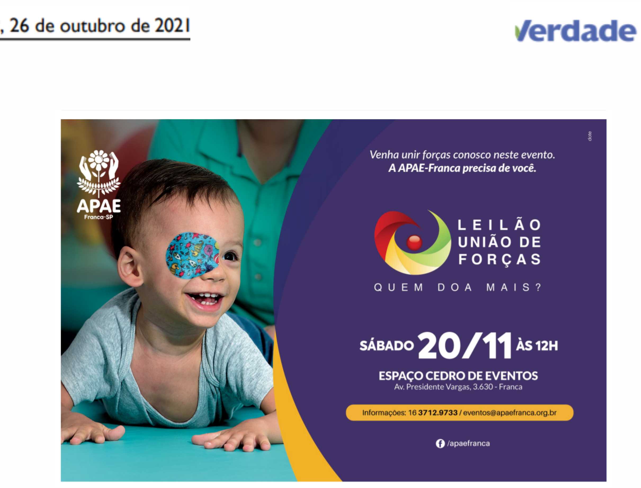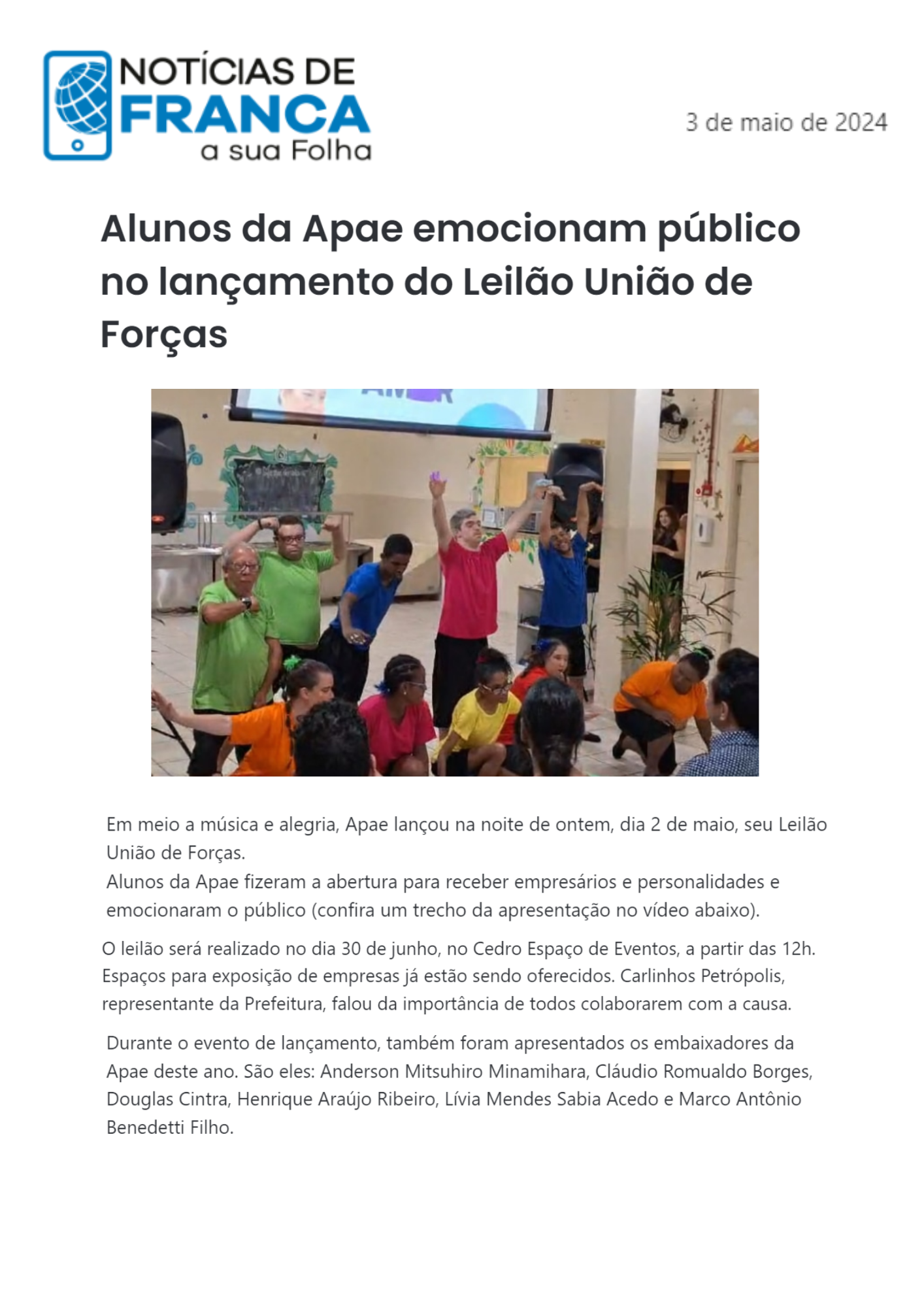 15.05.25 F3 Notícias APAE Franca faz leilão no dia 24.5 para ampliar atendimento para mais...