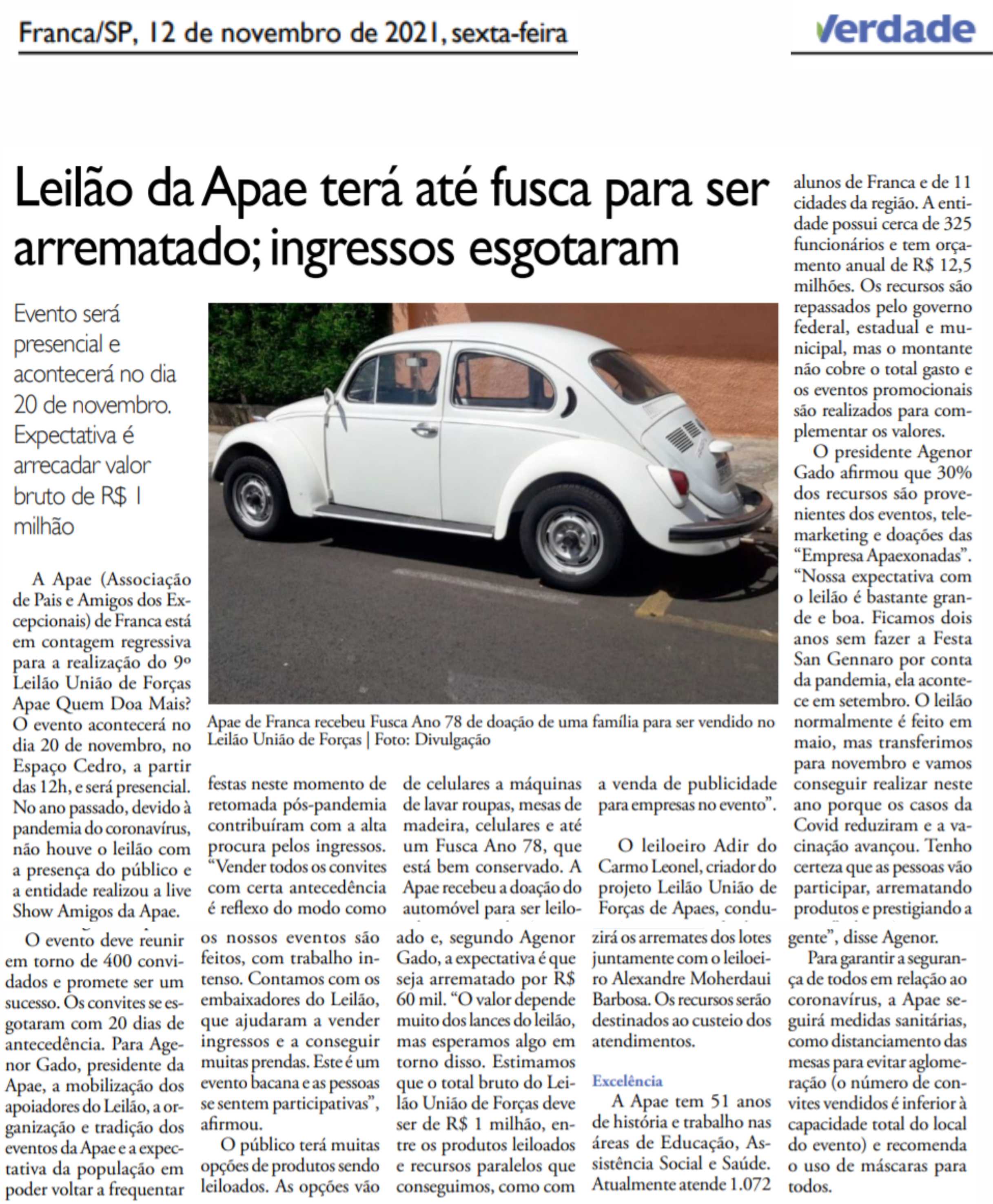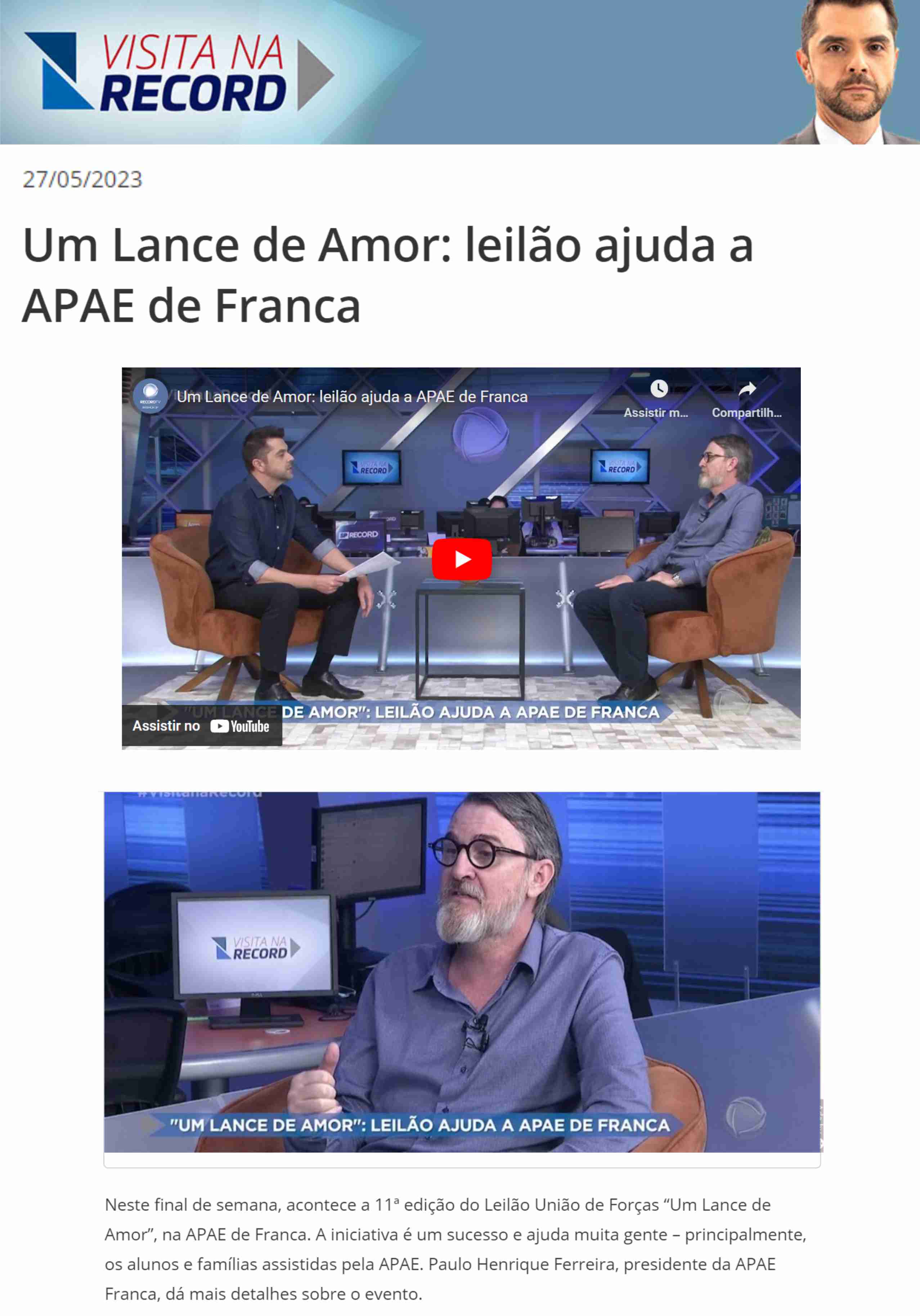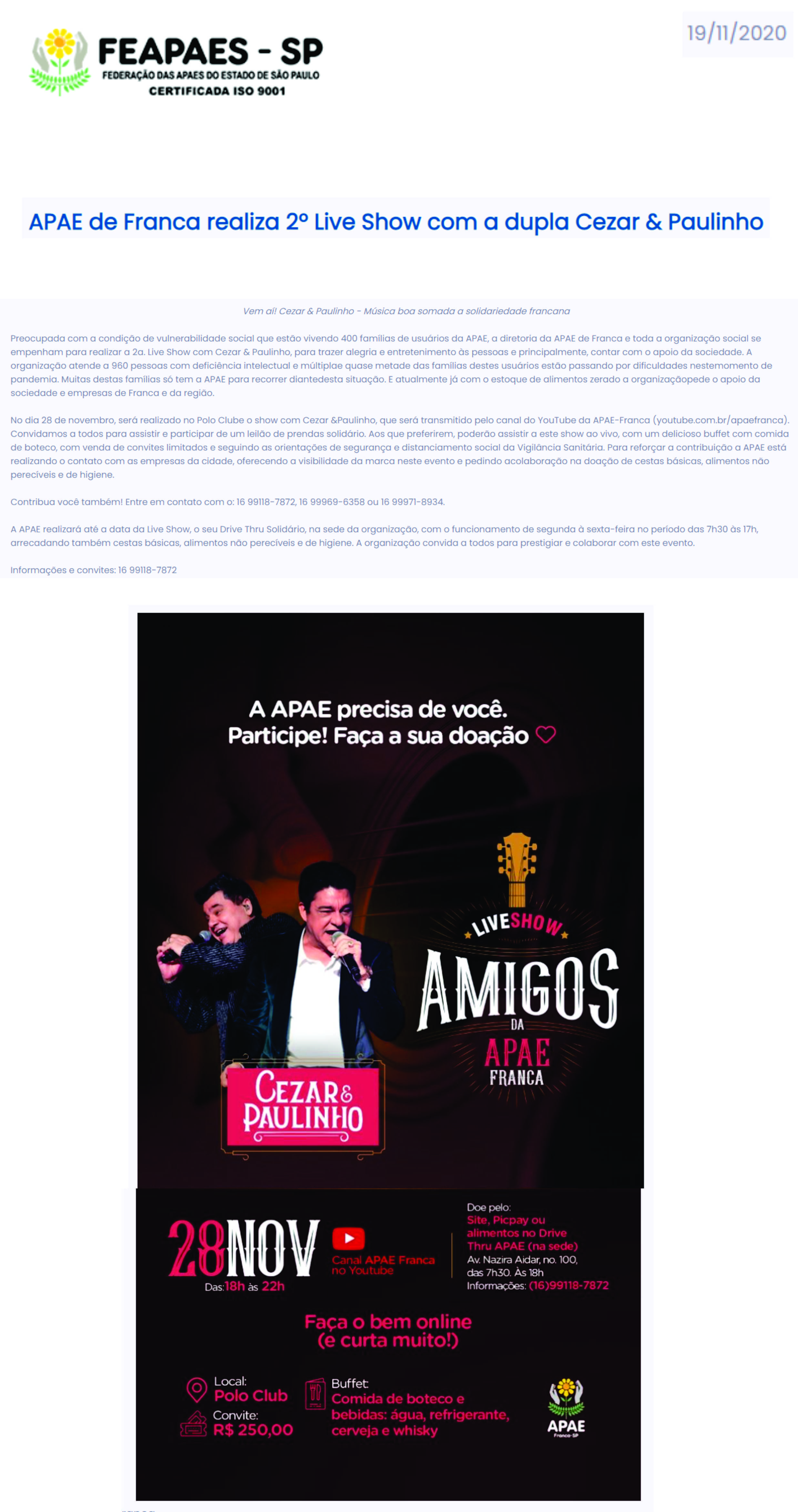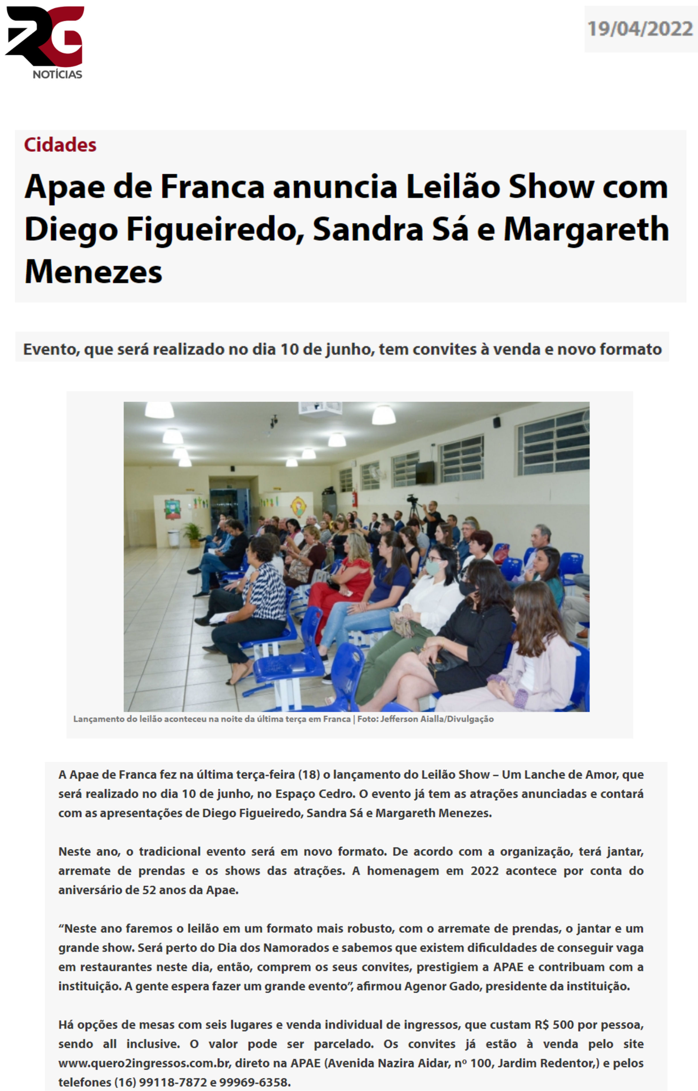 15.05.25 F3 Notícias APAE Franca faz leilão no dia 24.5 para ampliar atendimento para mais...