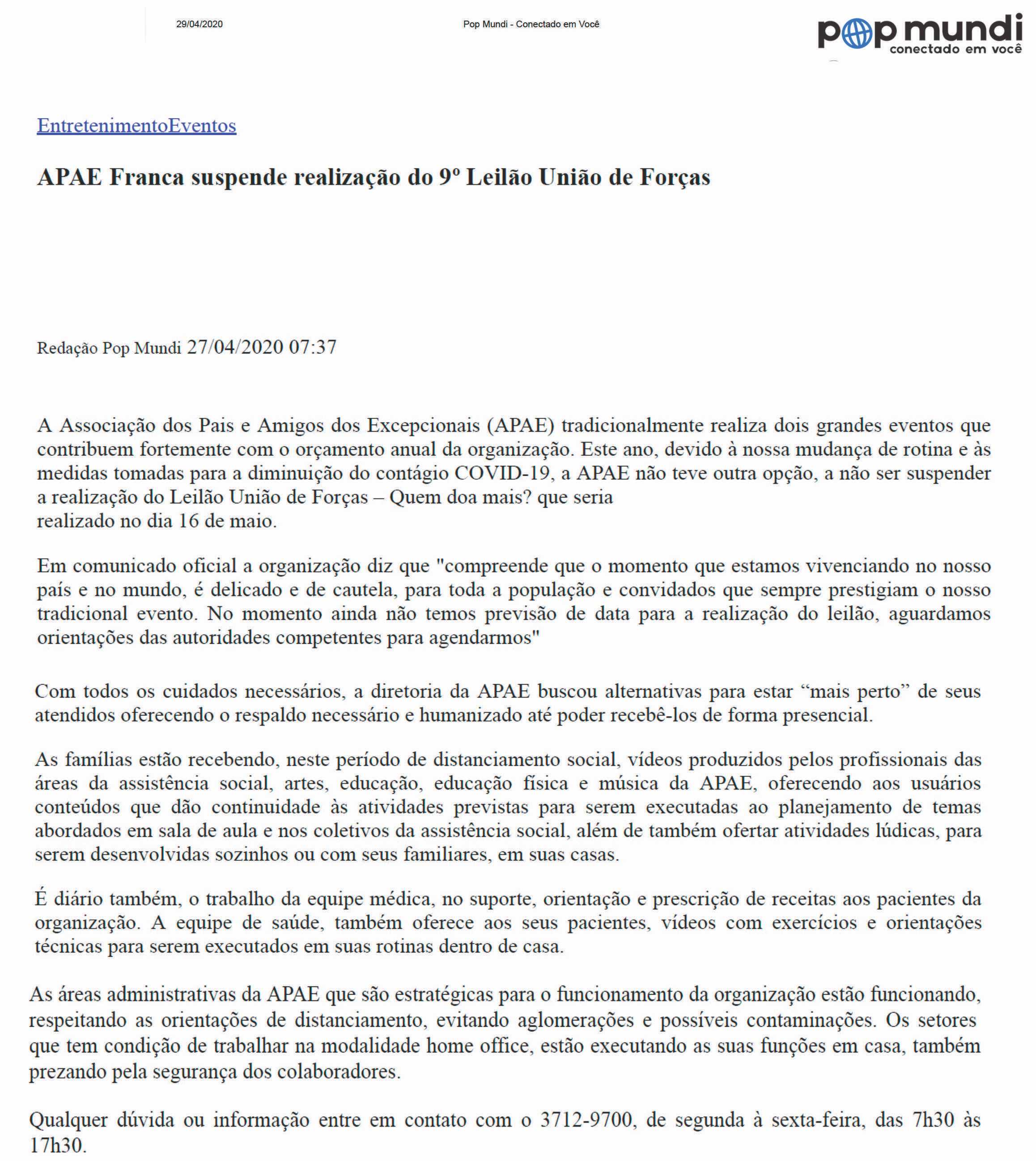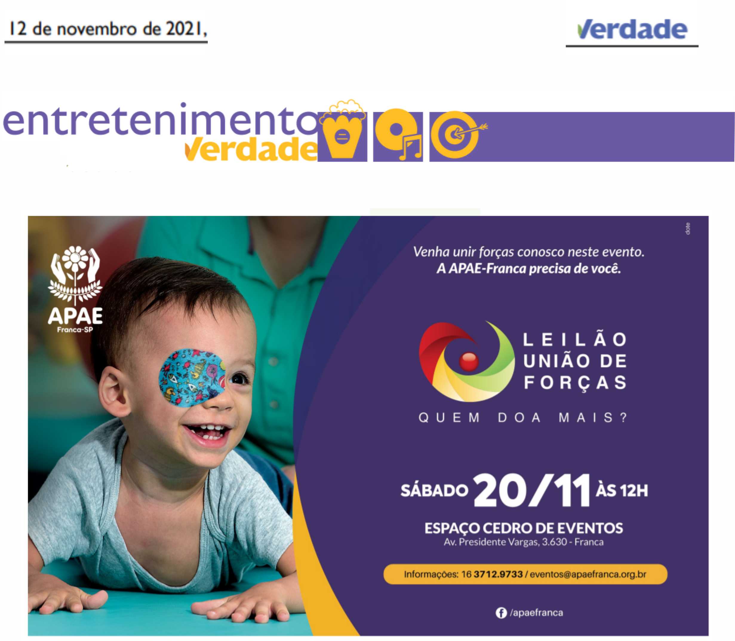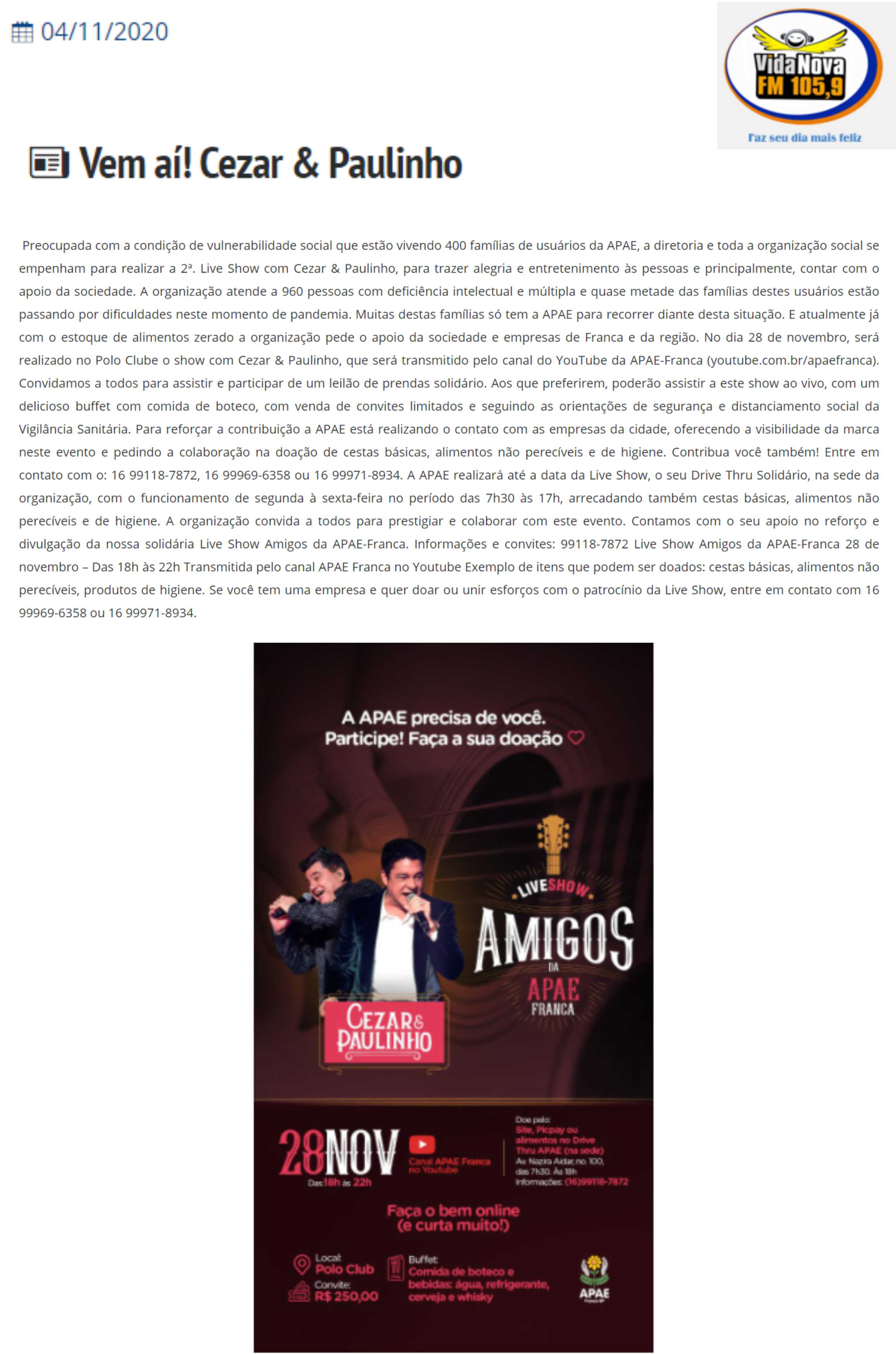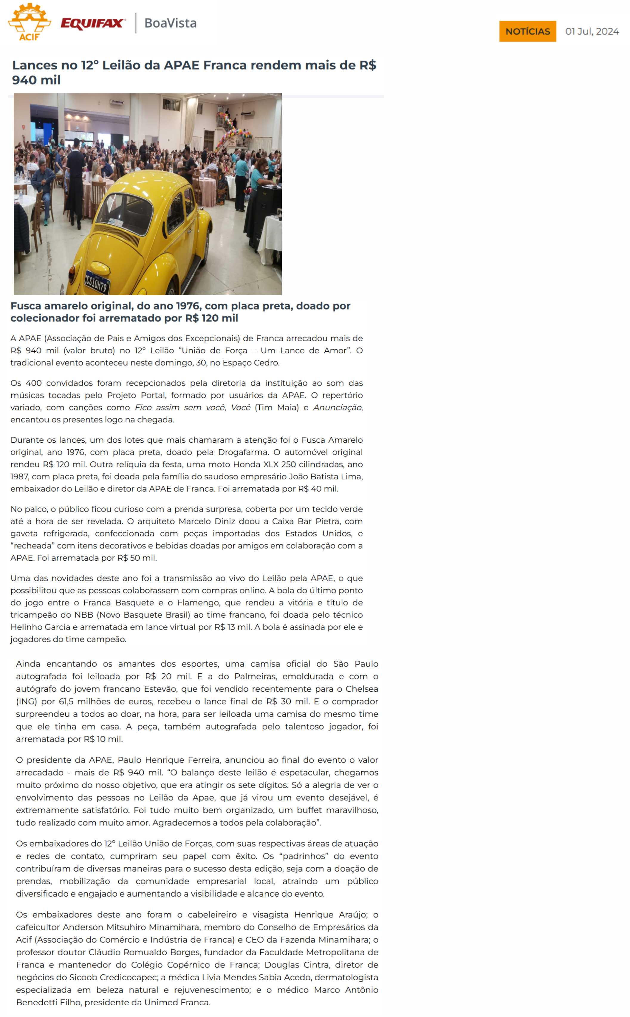 15.05.25 F3 Notícias APAE Franca faz leilão no dia 24.5 para ampliar atendimento para mais...