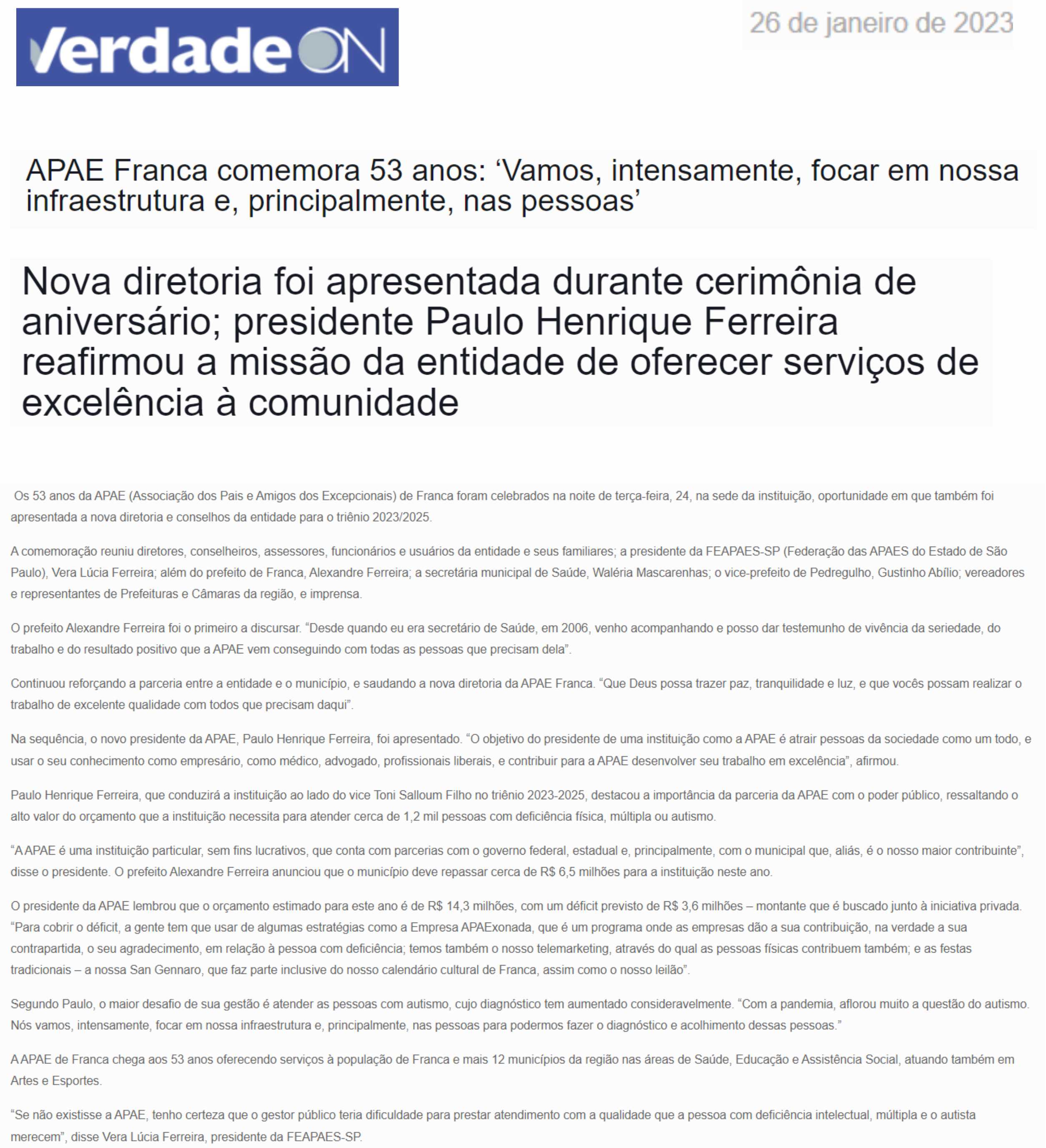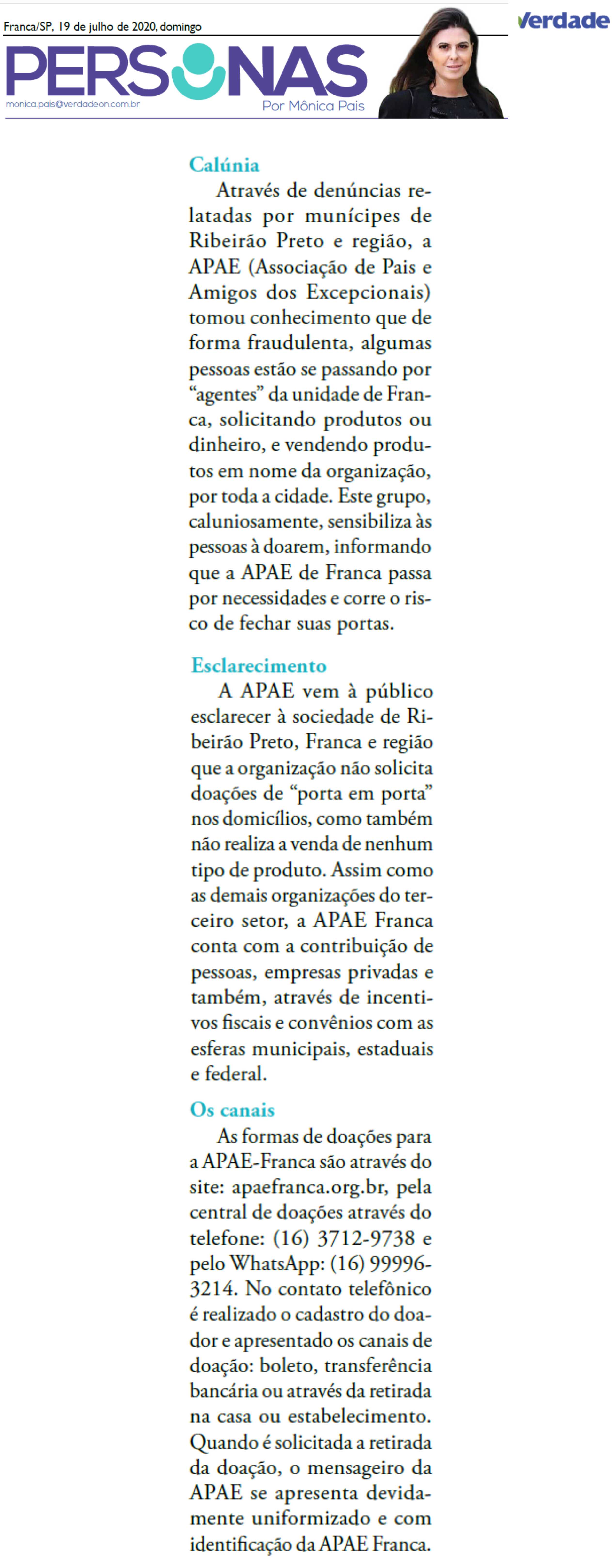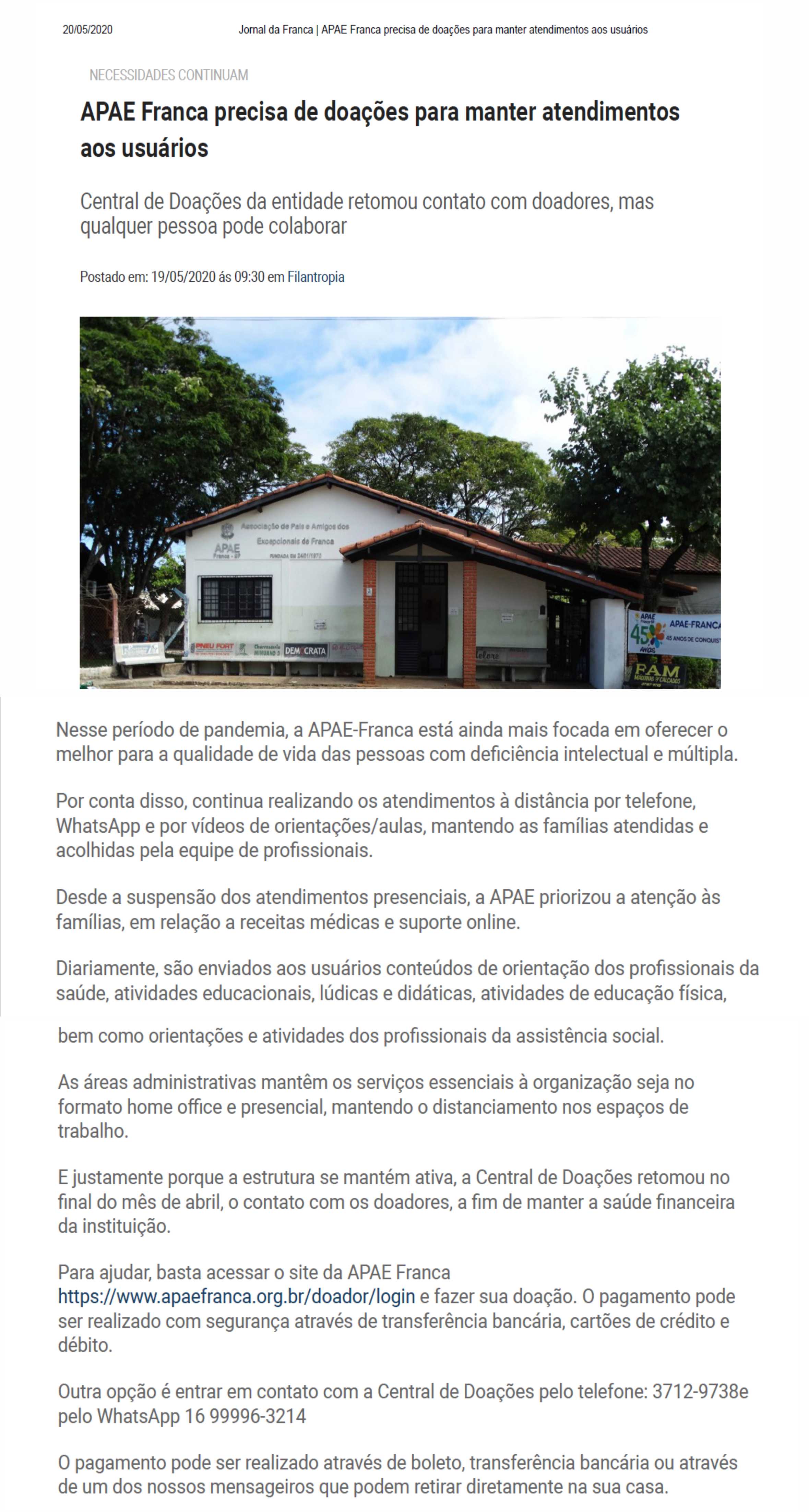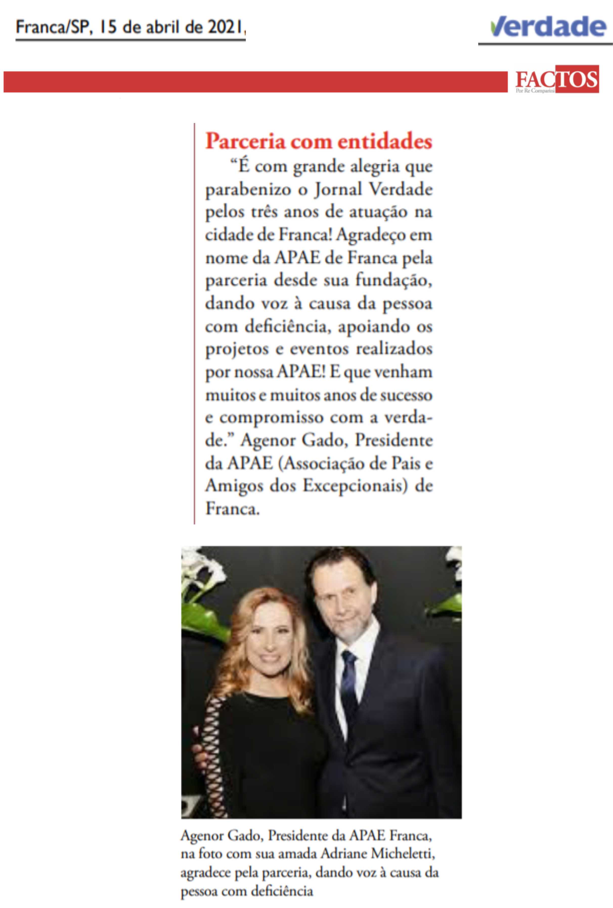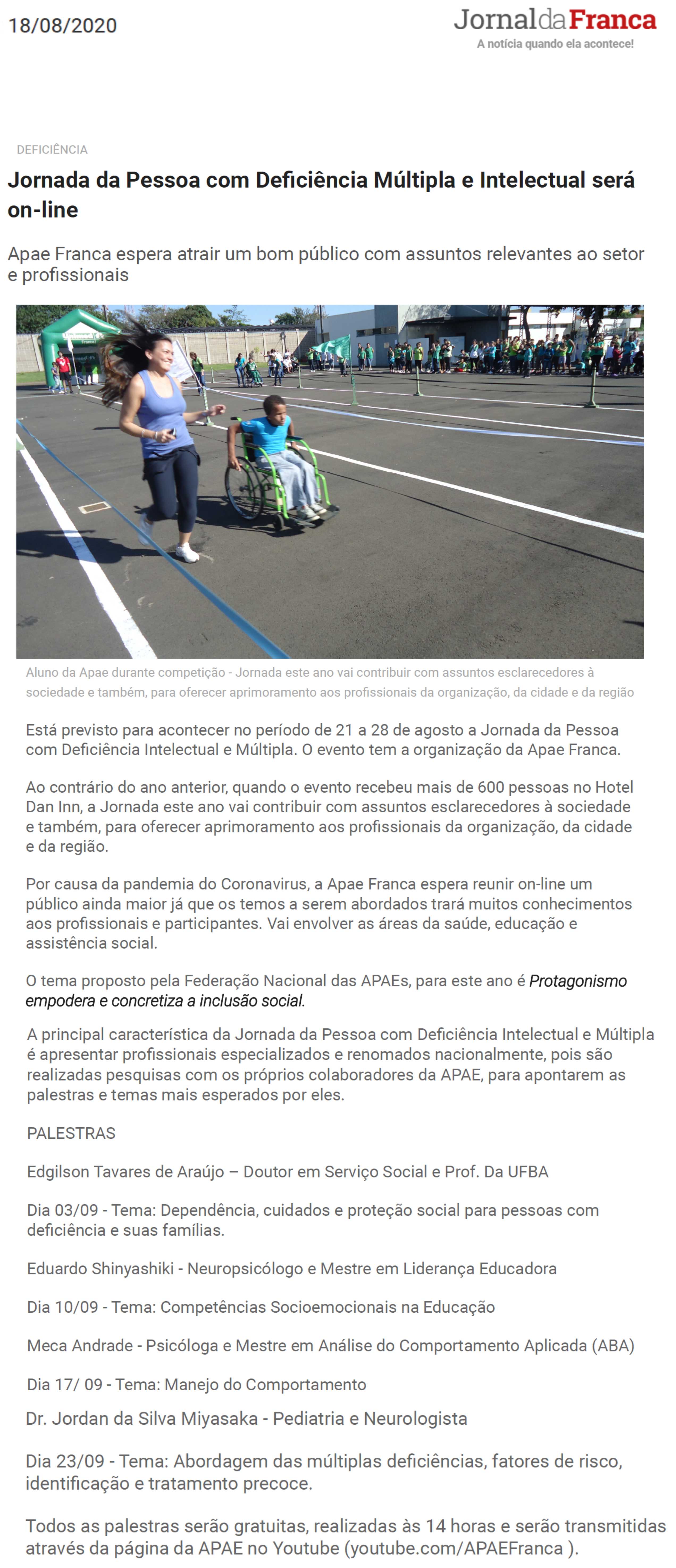 Publicações sobre a APAE-Franca nos veículos de comunicação de Franca e Região.