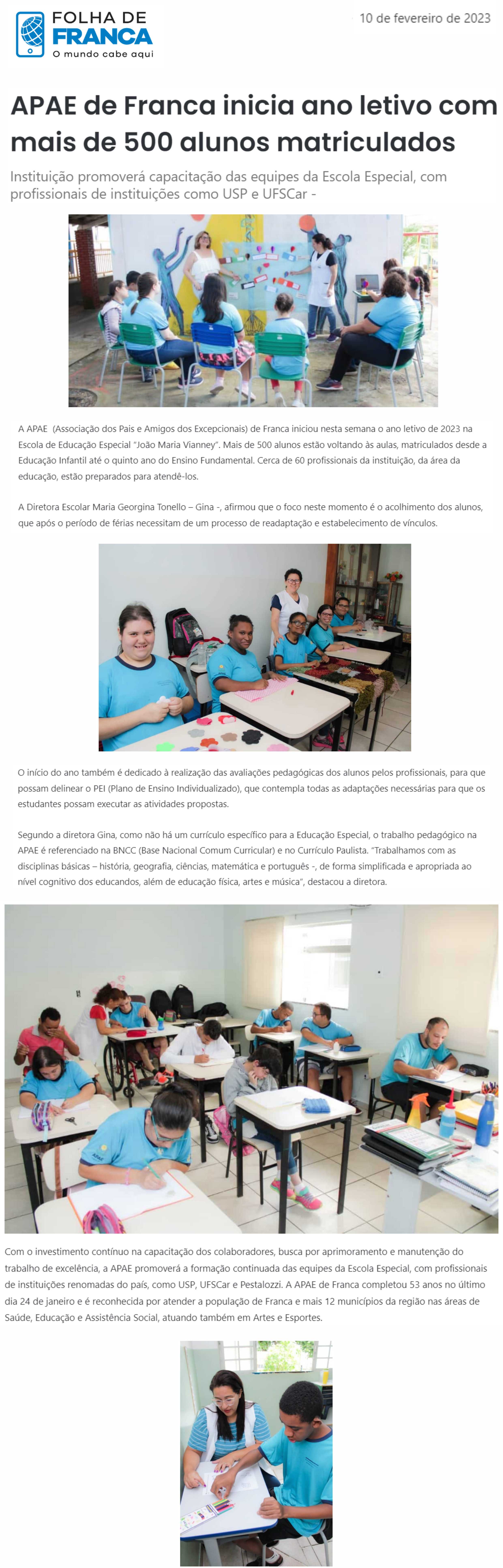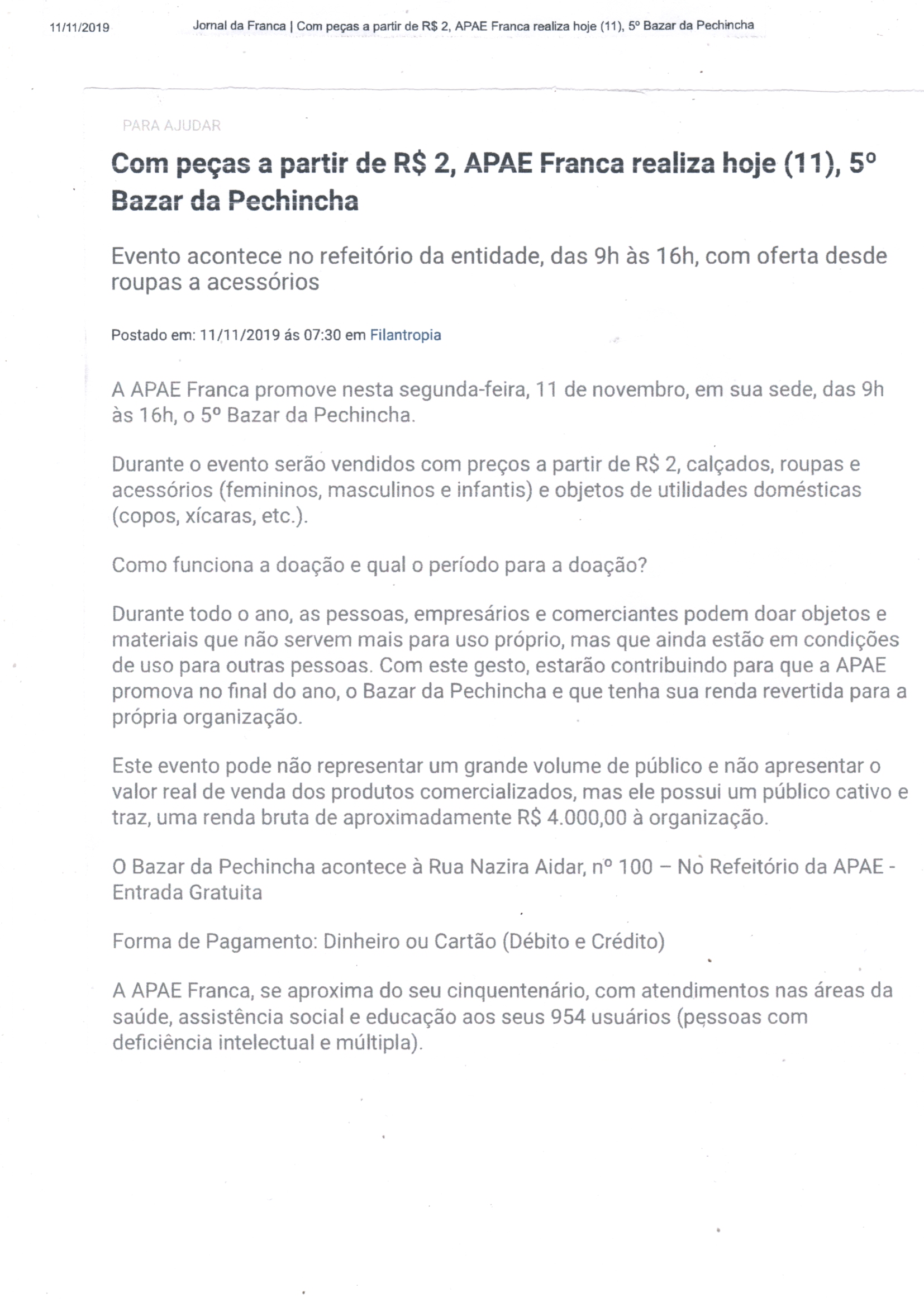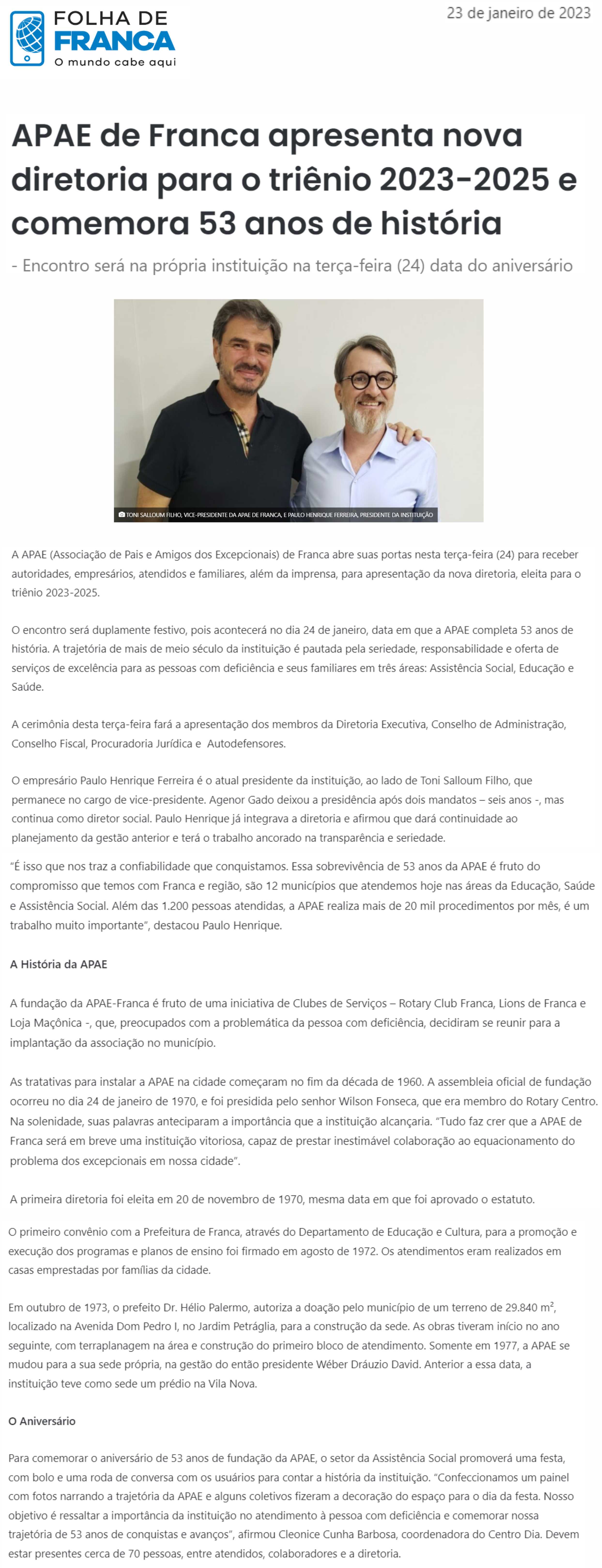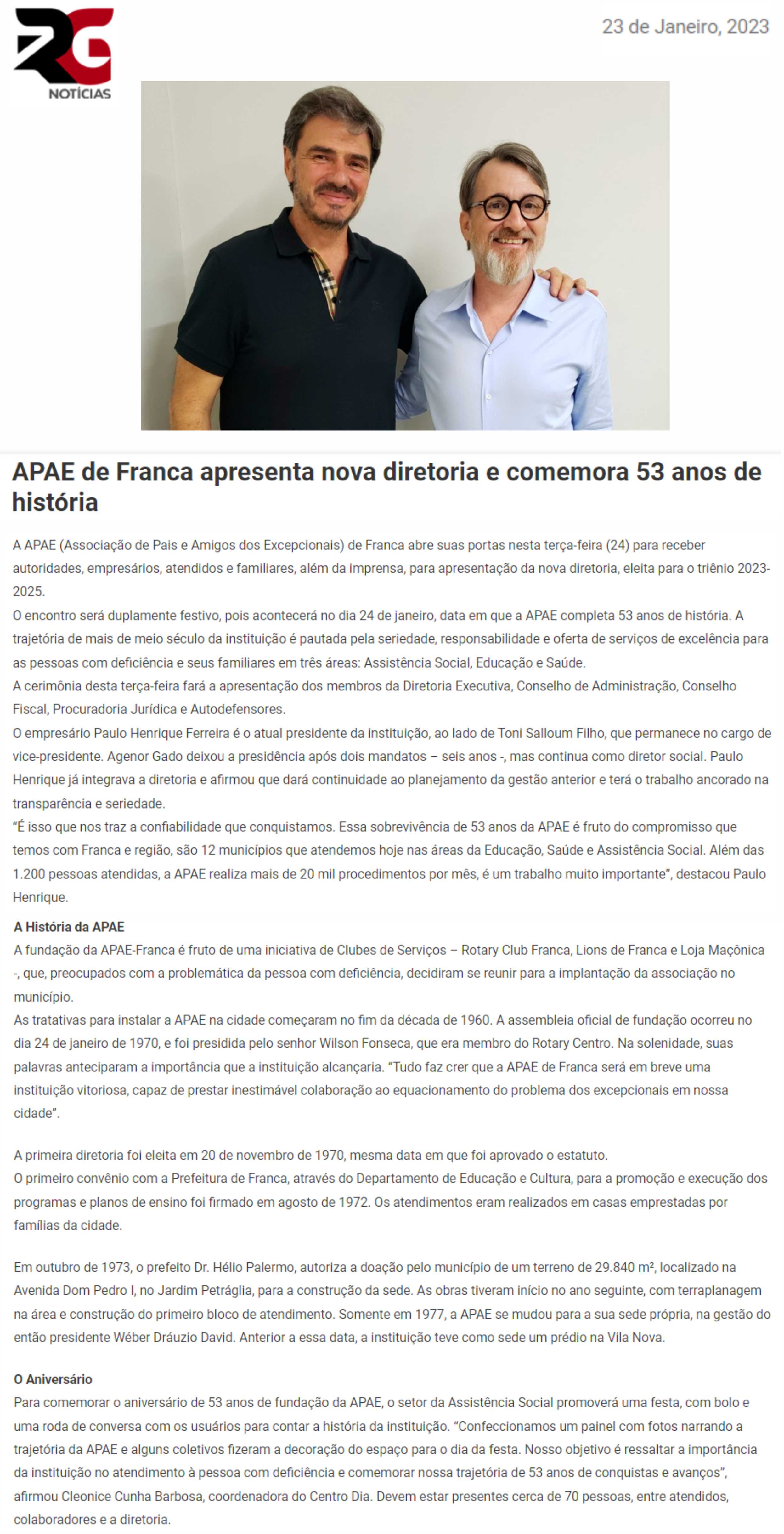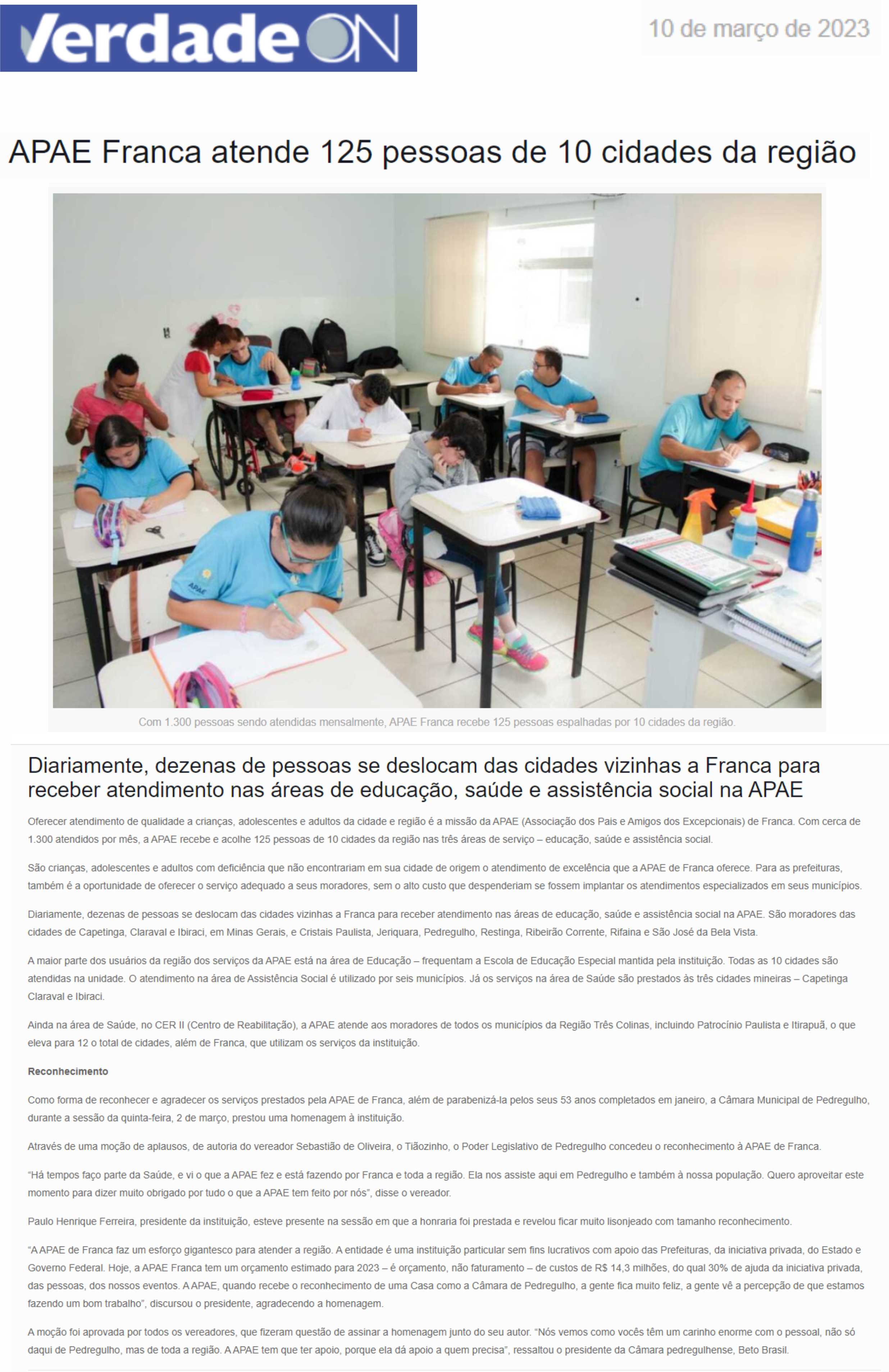 Publicações sobre a APAE-Franca nos veículos de comunicação de Franca e Região.