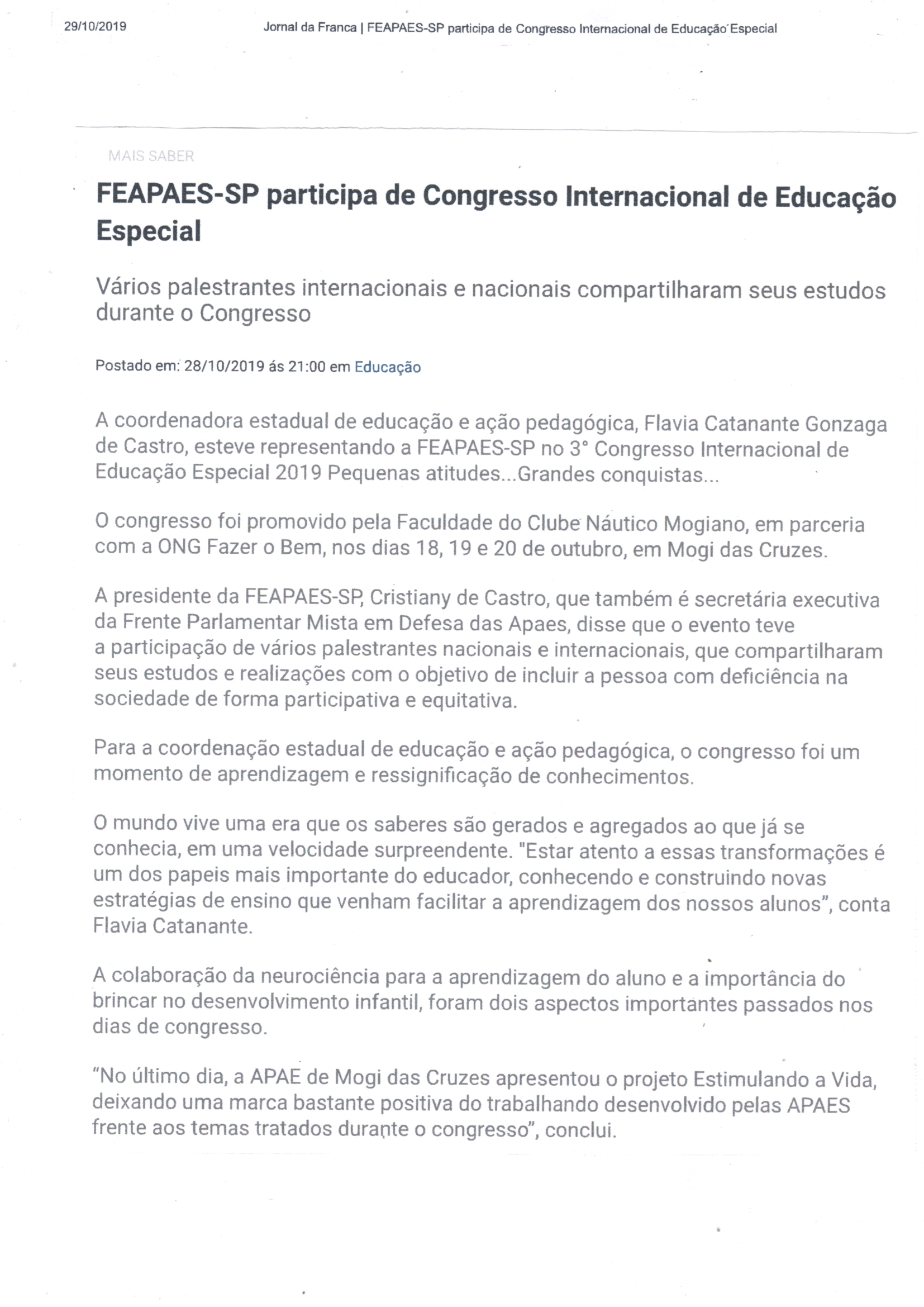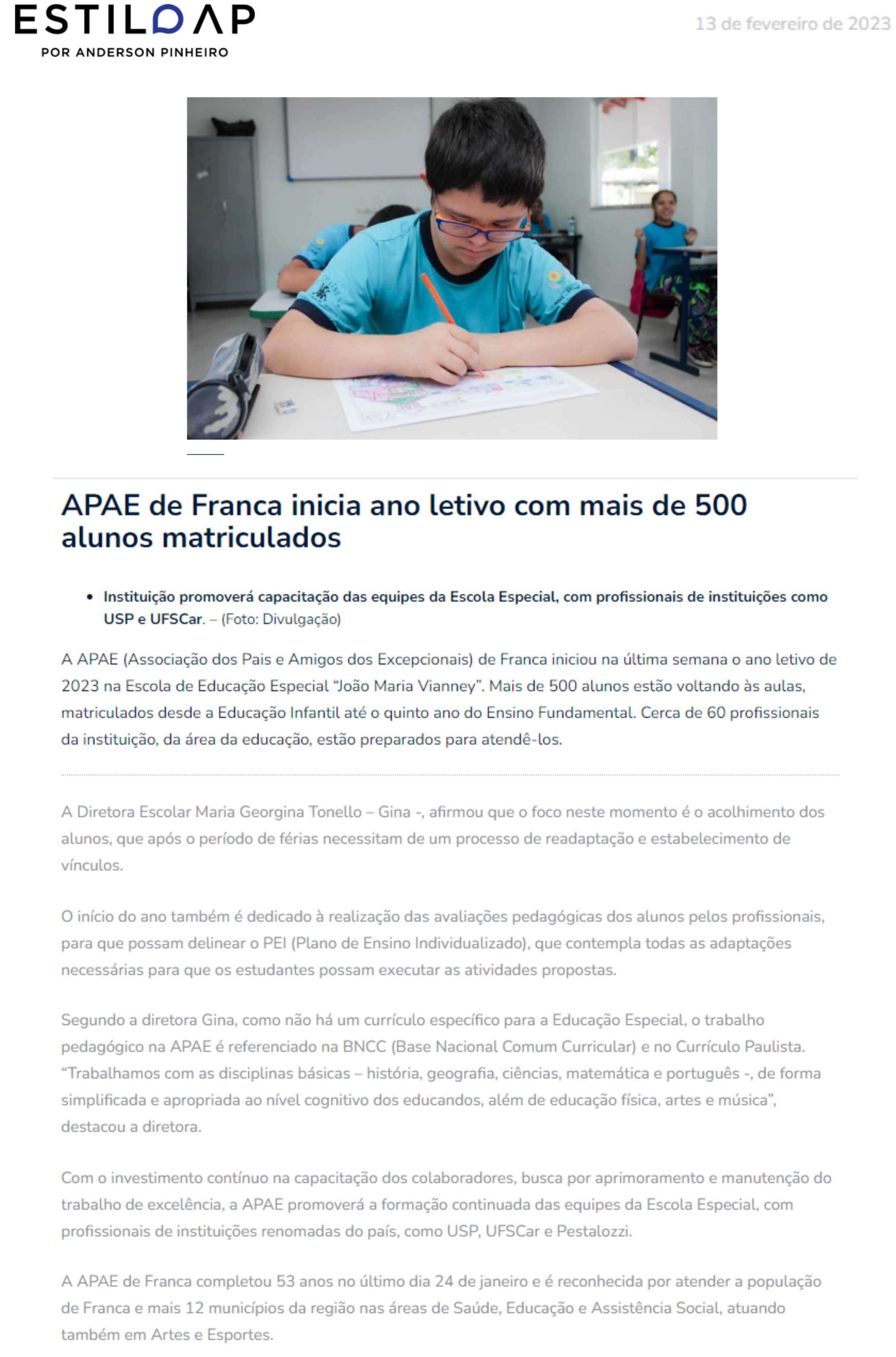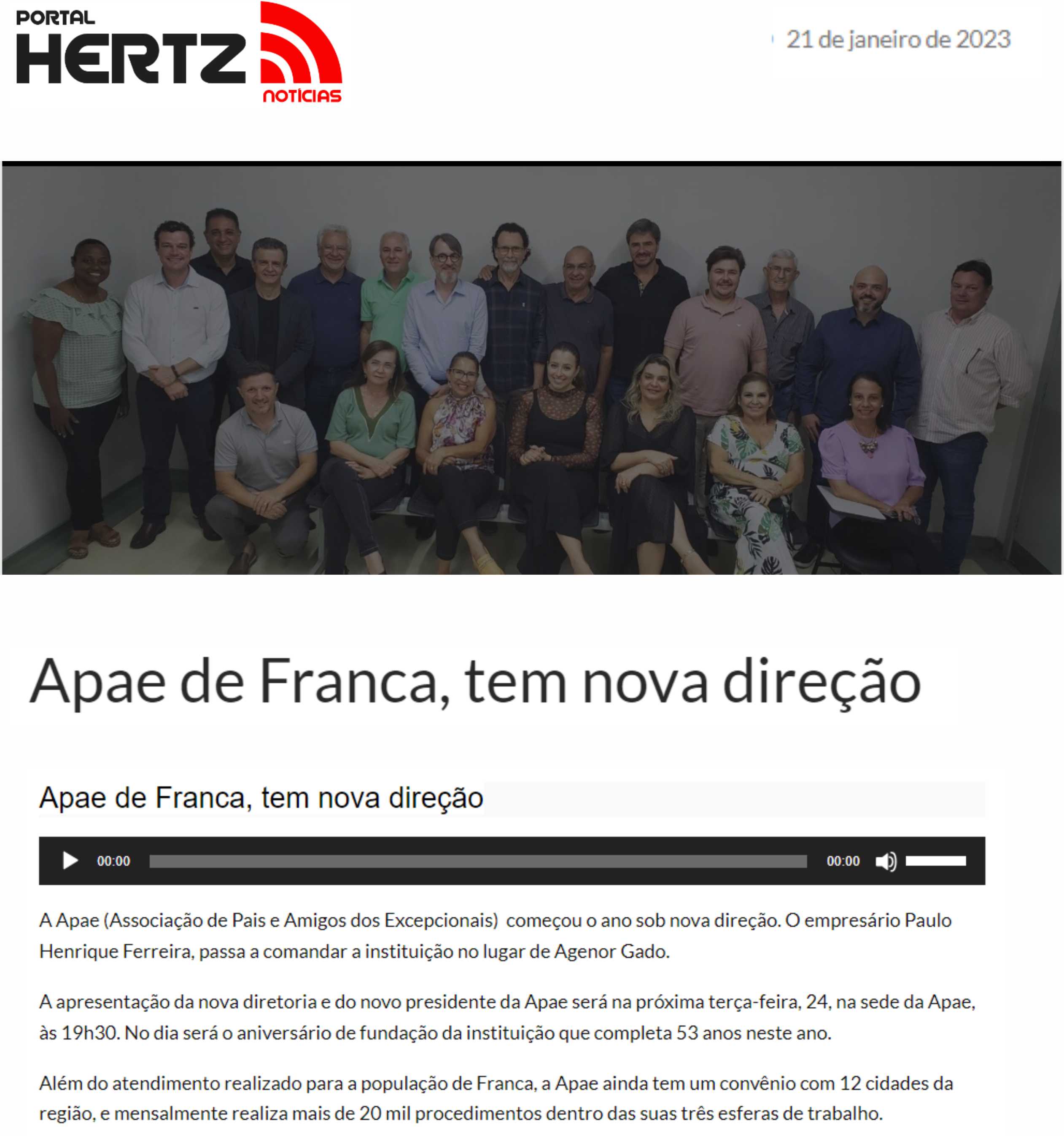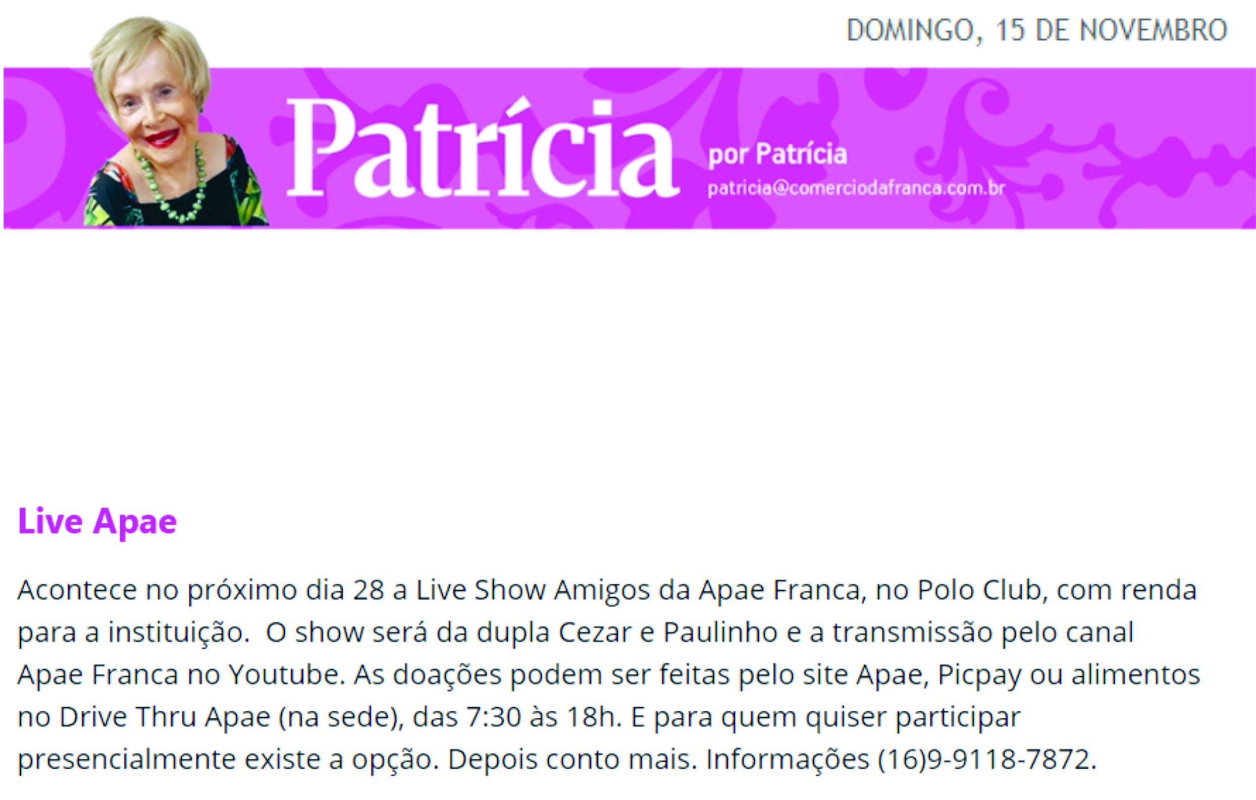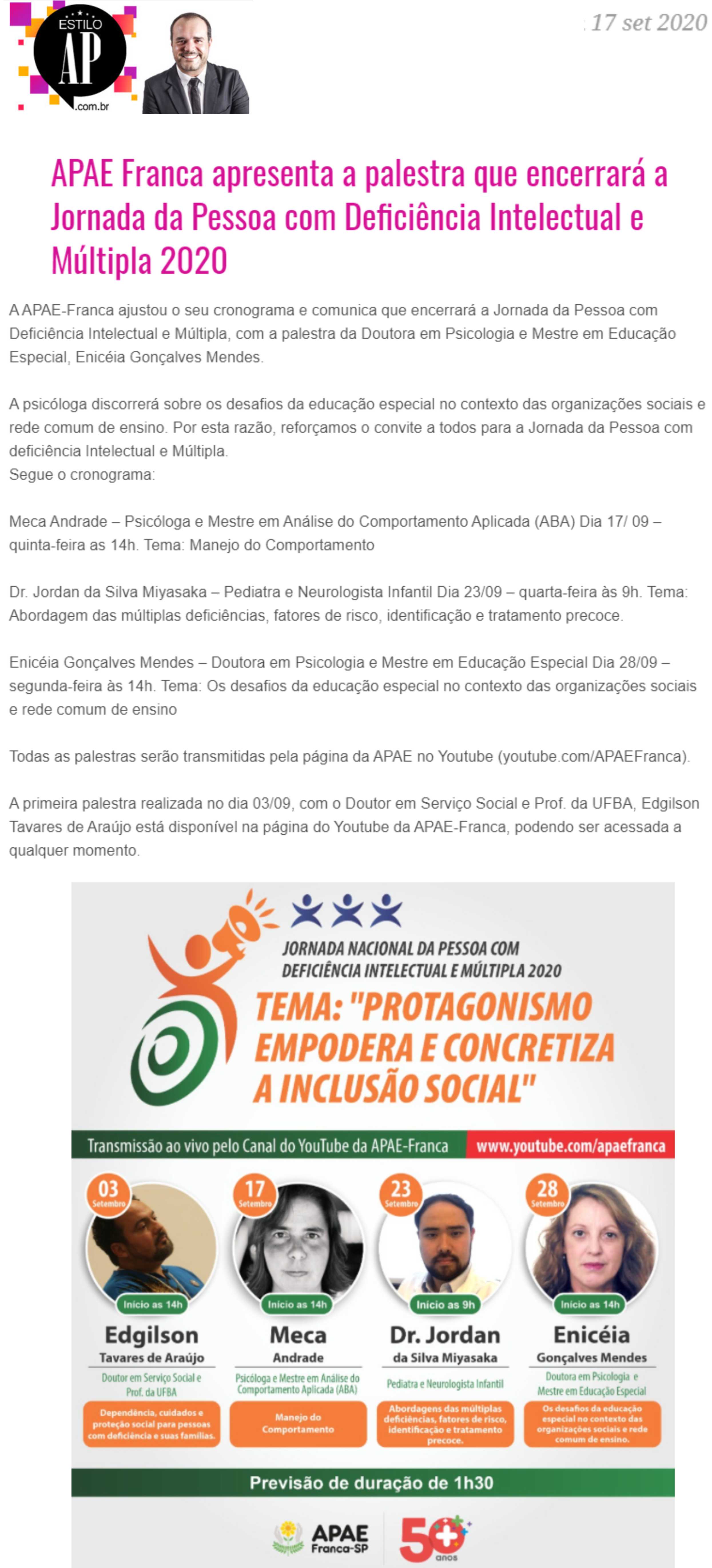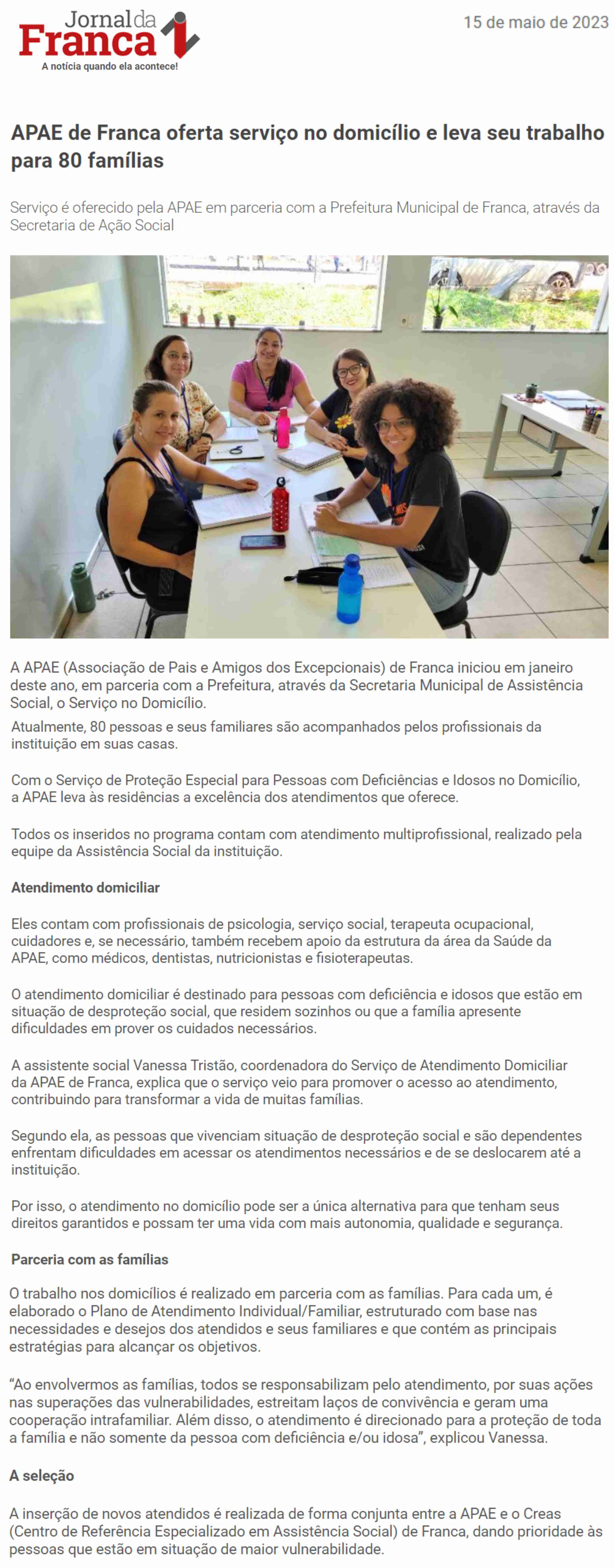 Publicações sobre a APAE-Franca nos veículos de comunicação de Franca e Região.