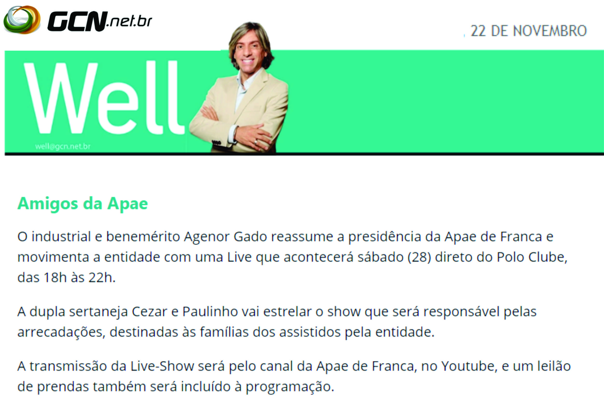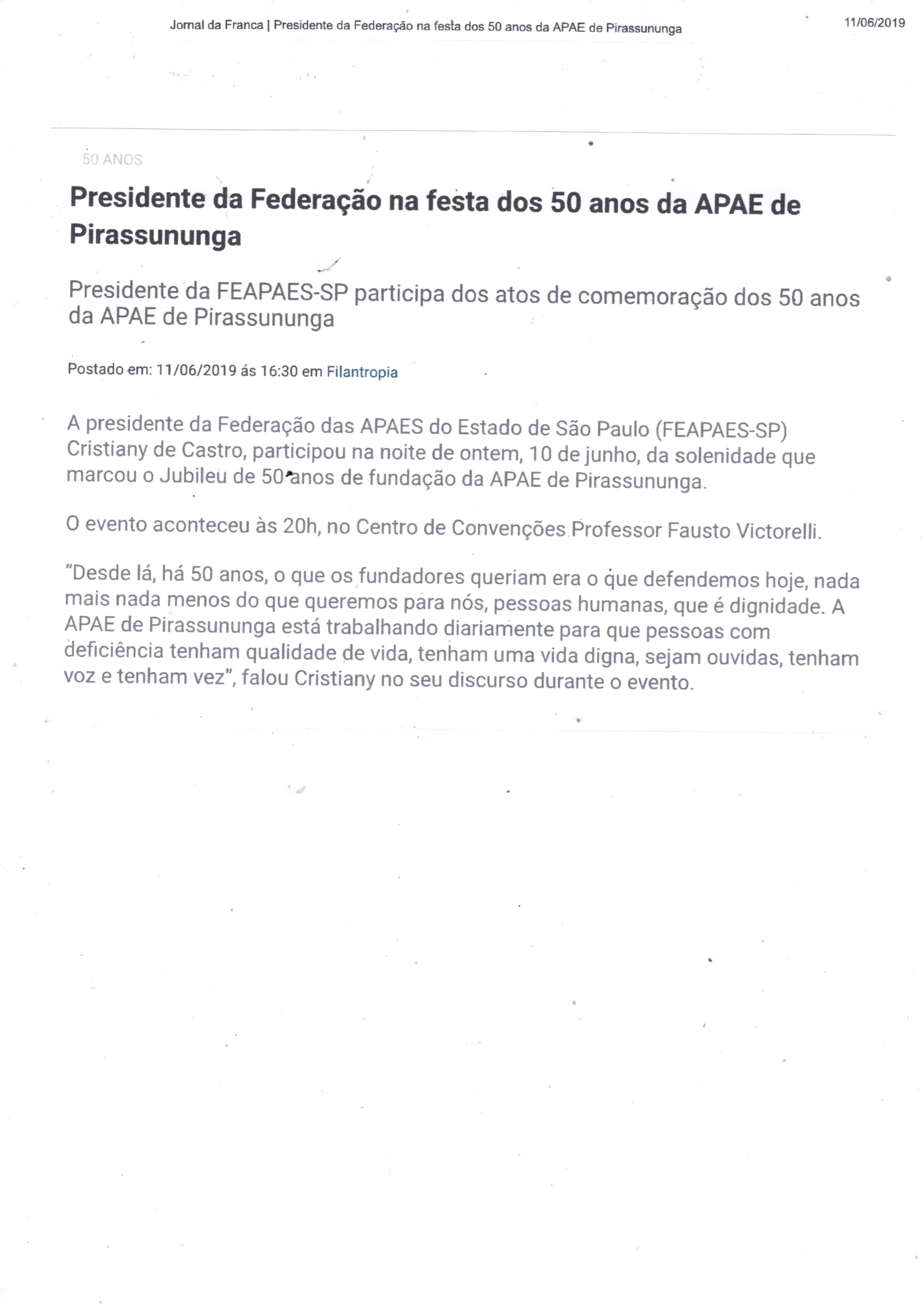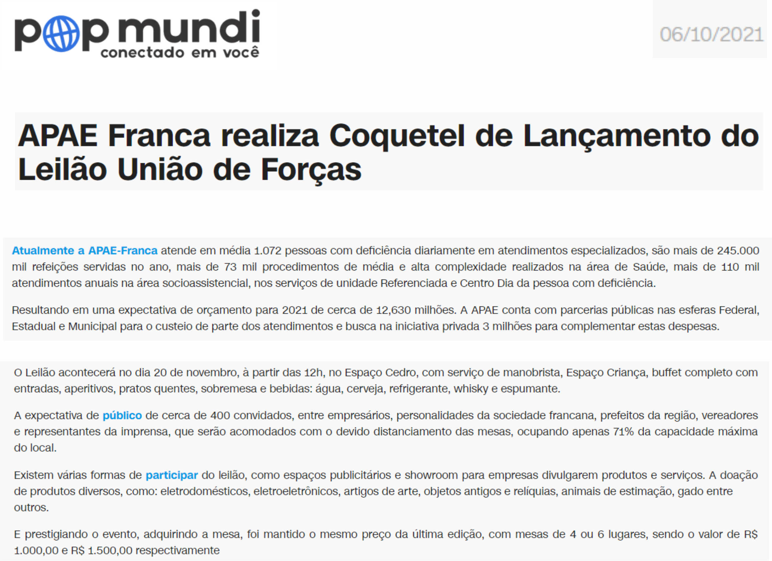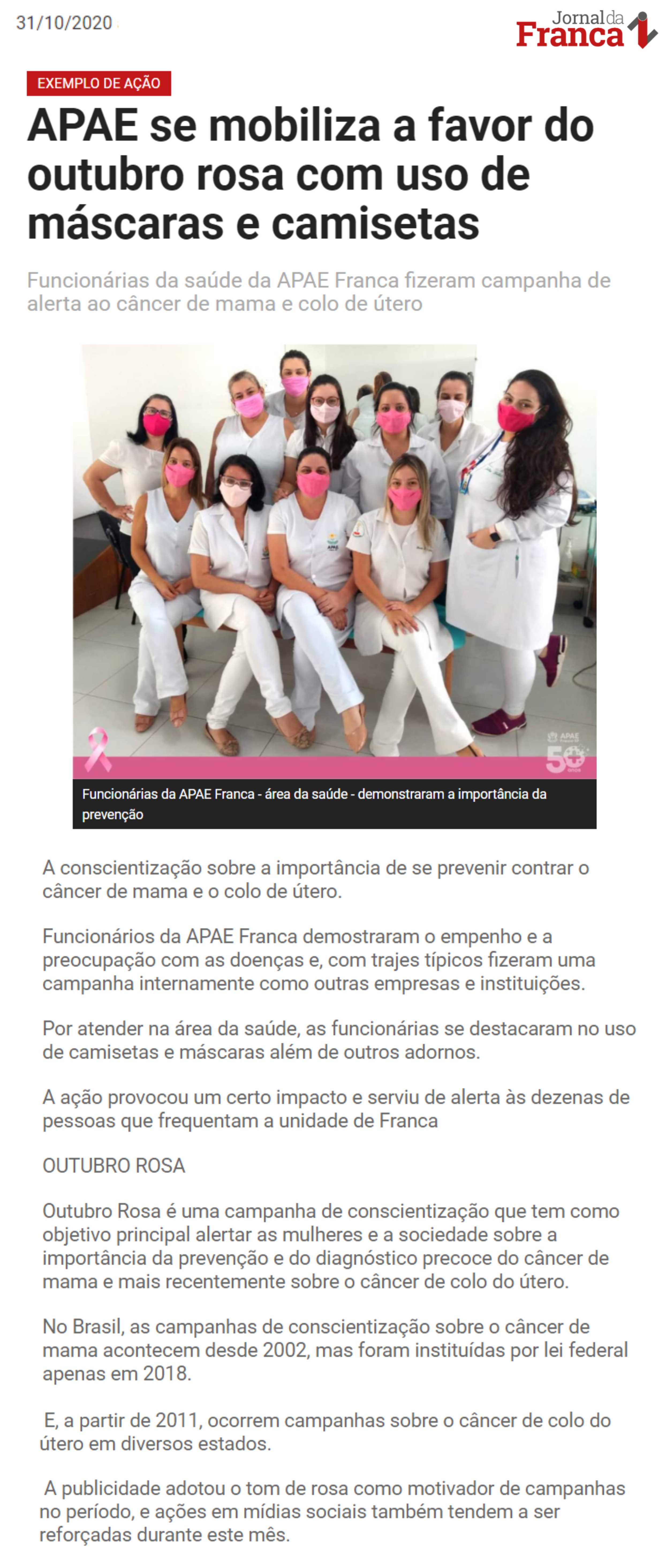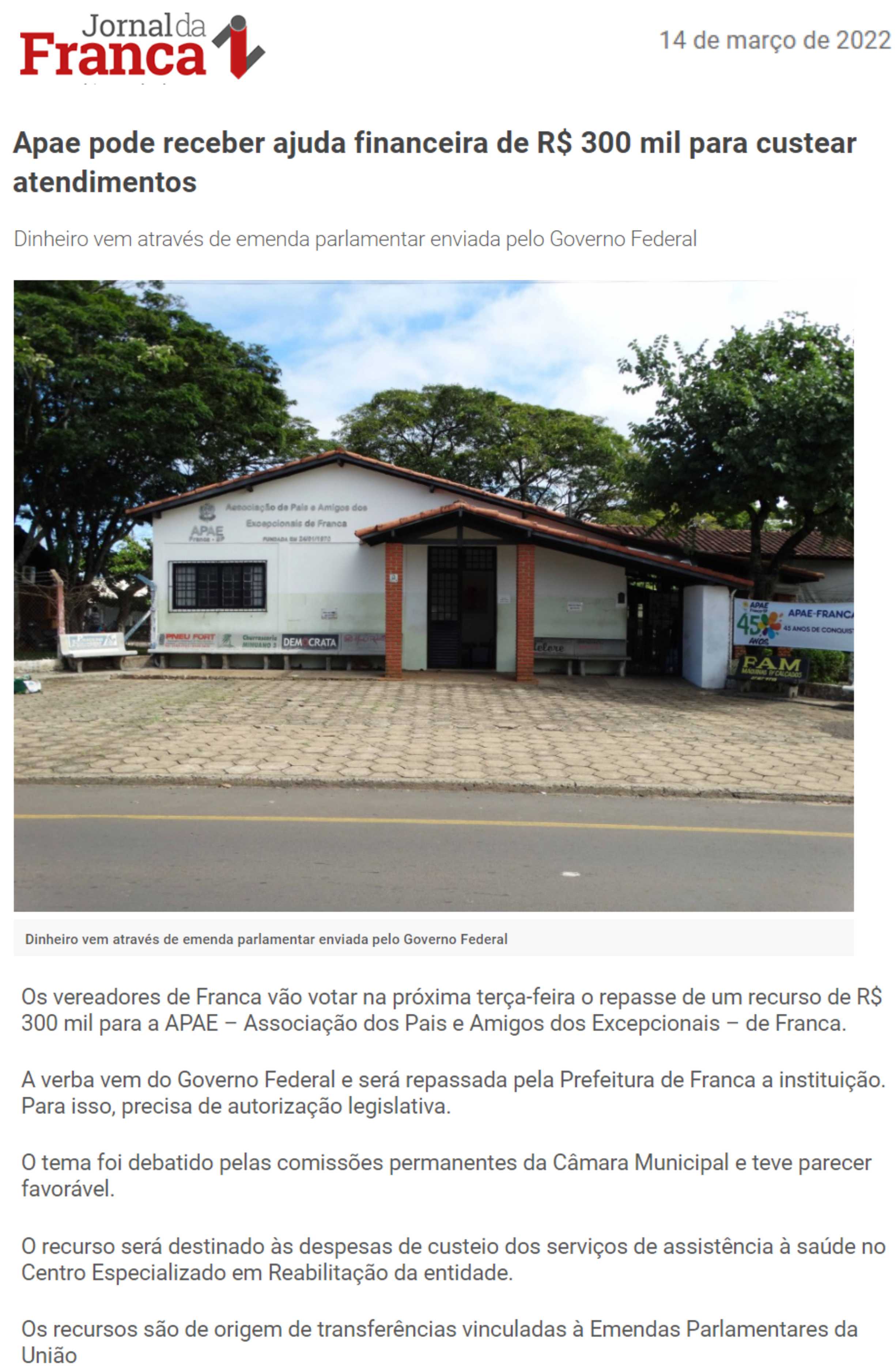 Publicações sobre a APAE-Franca nos veículos de comunicação de Franca e Região.