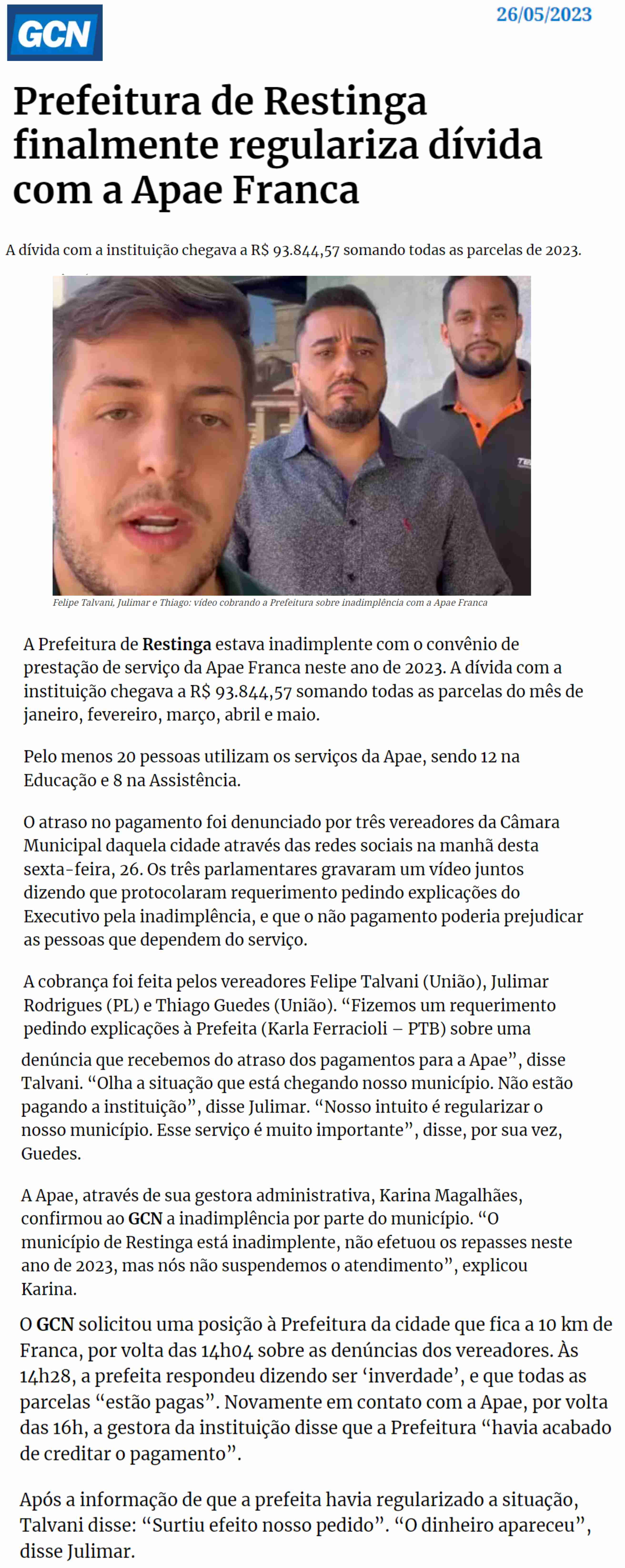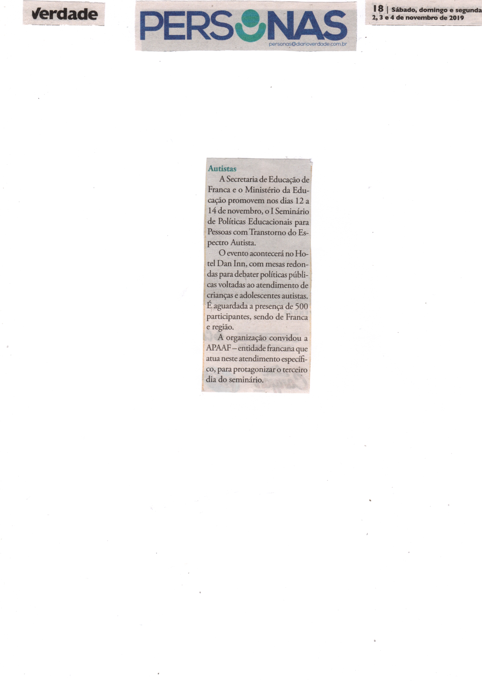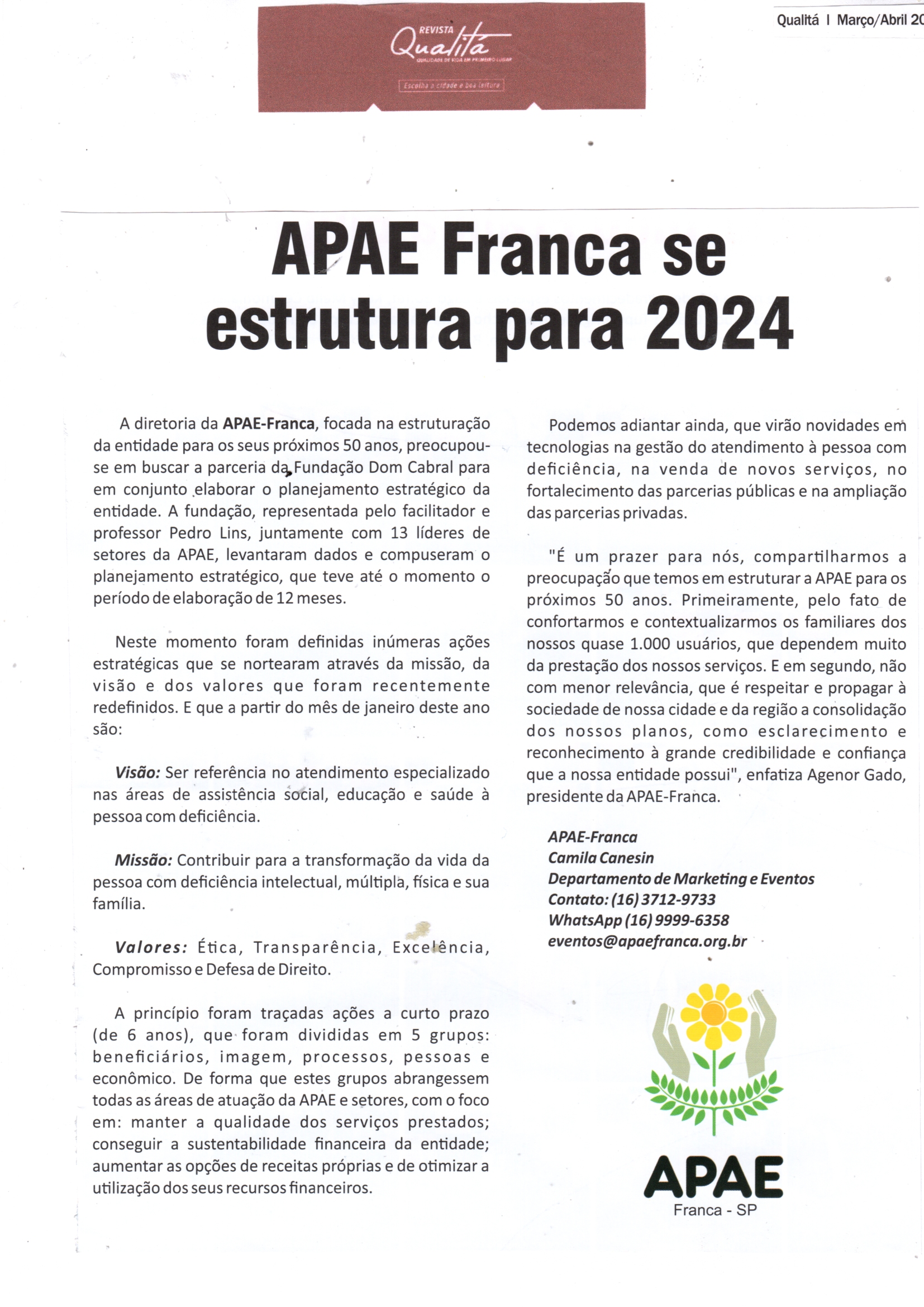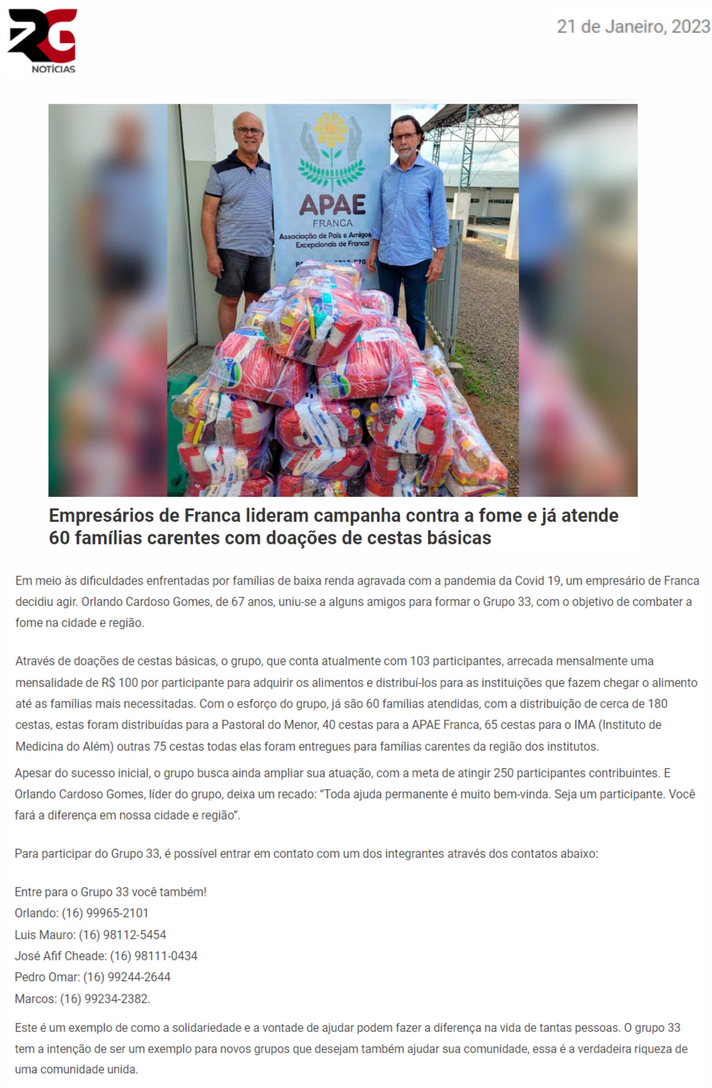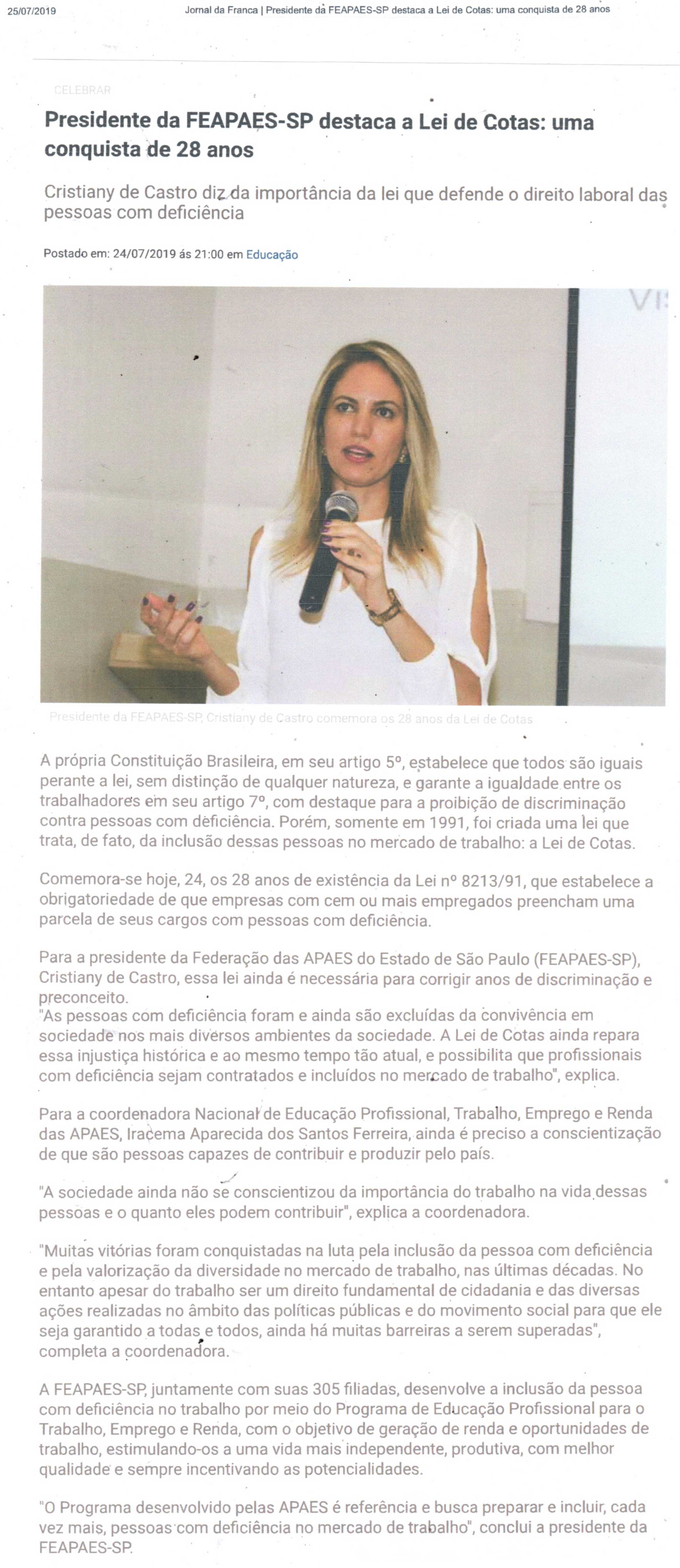 Publicações sobre a APAE-Franca nos veículos de comunicação de Franca e Região.