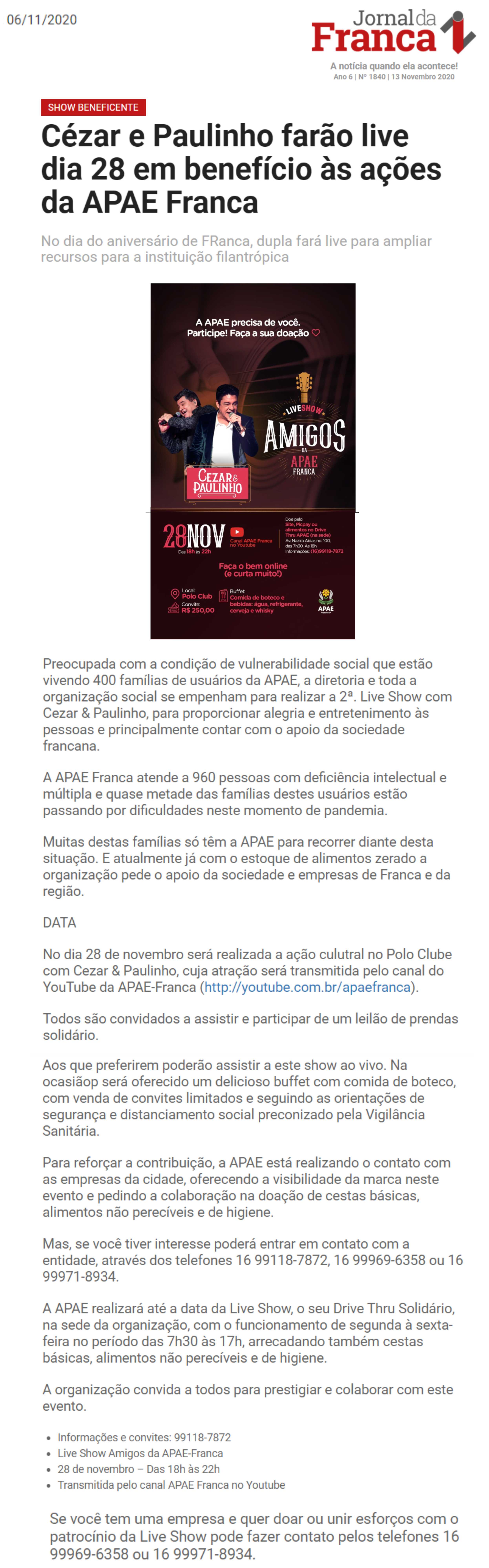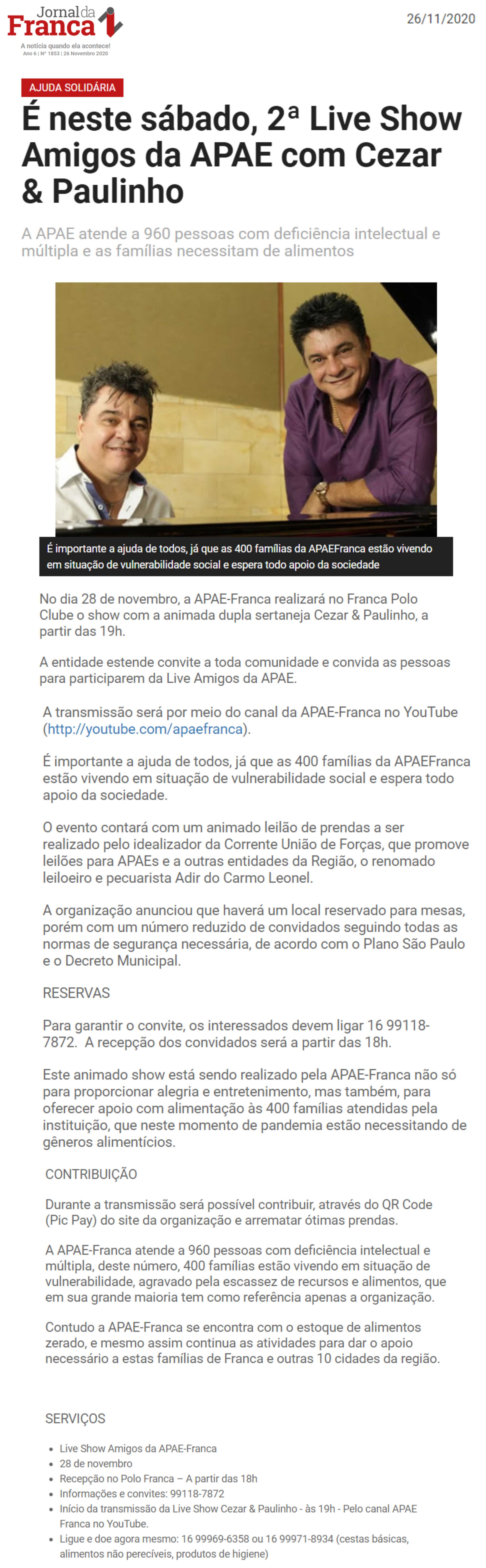 28.05.25 Jornal da Franca Jornal da Franca Veja quanto a APAE de Franca arrecadou no 13º L...