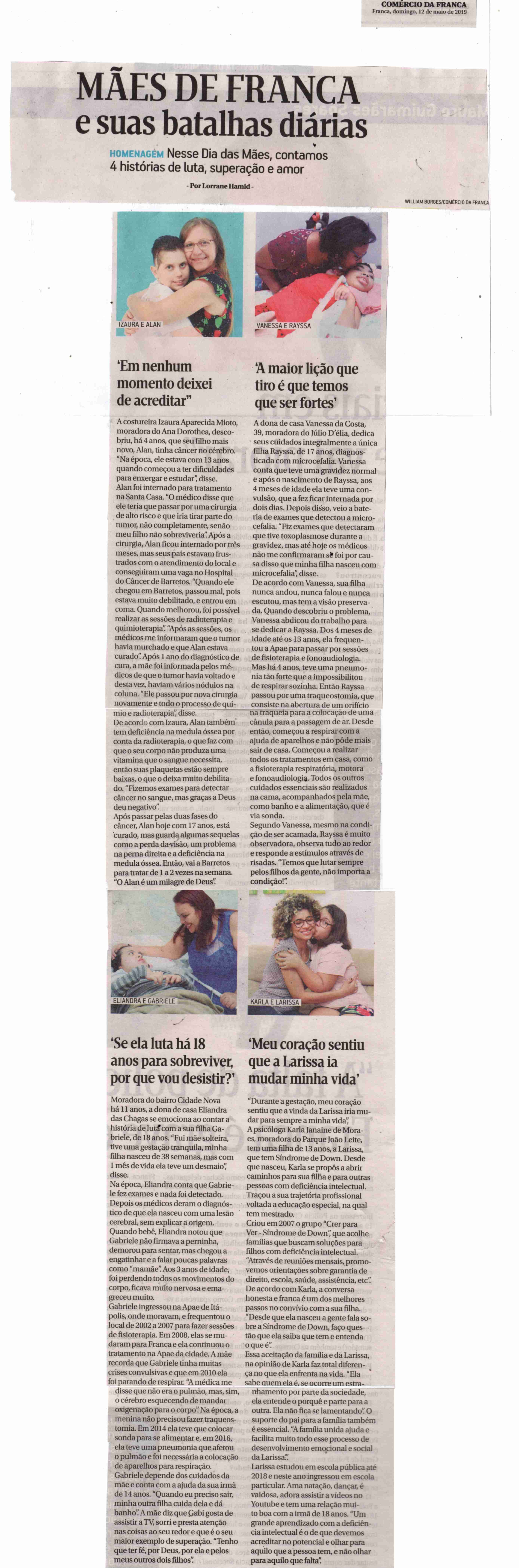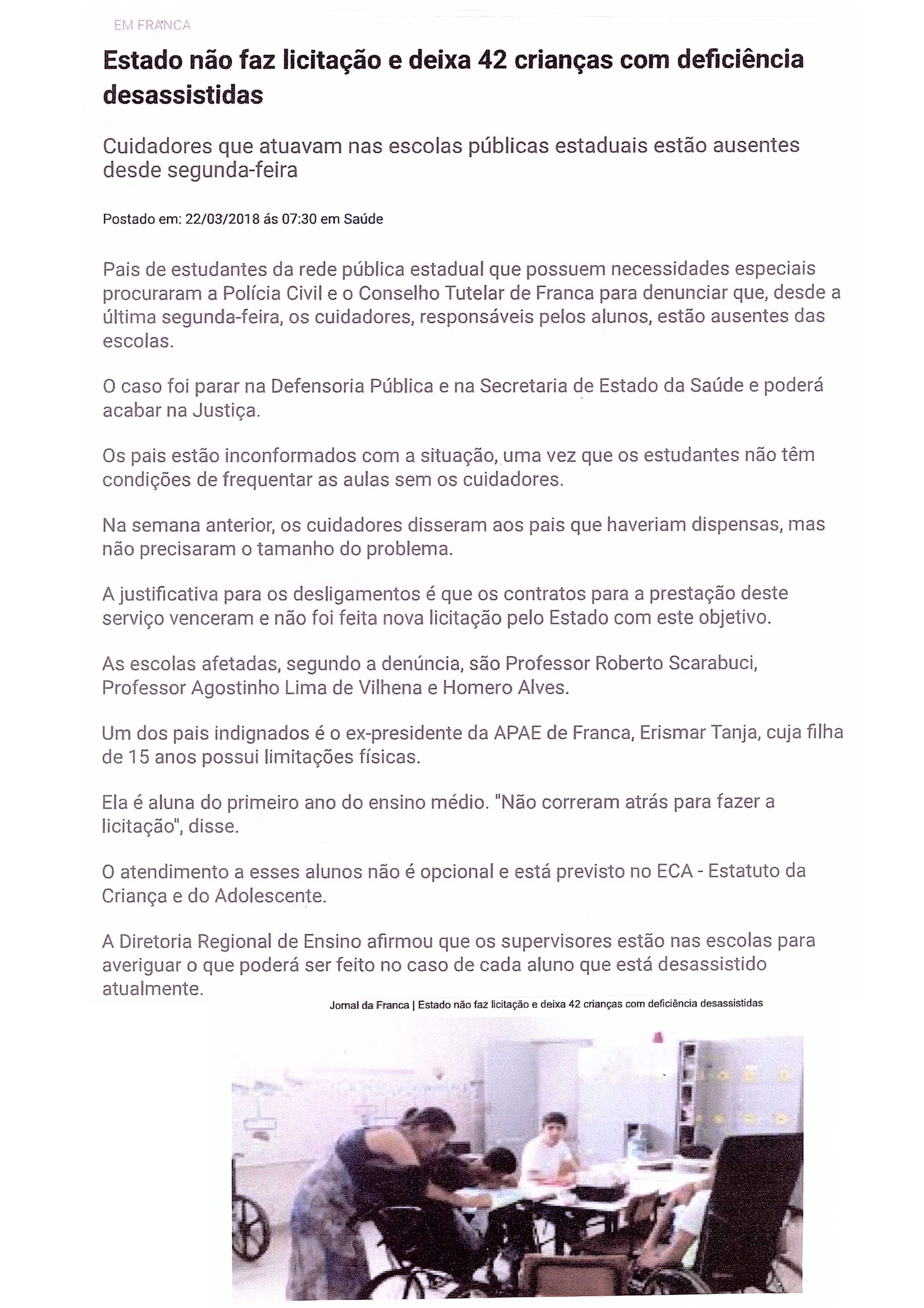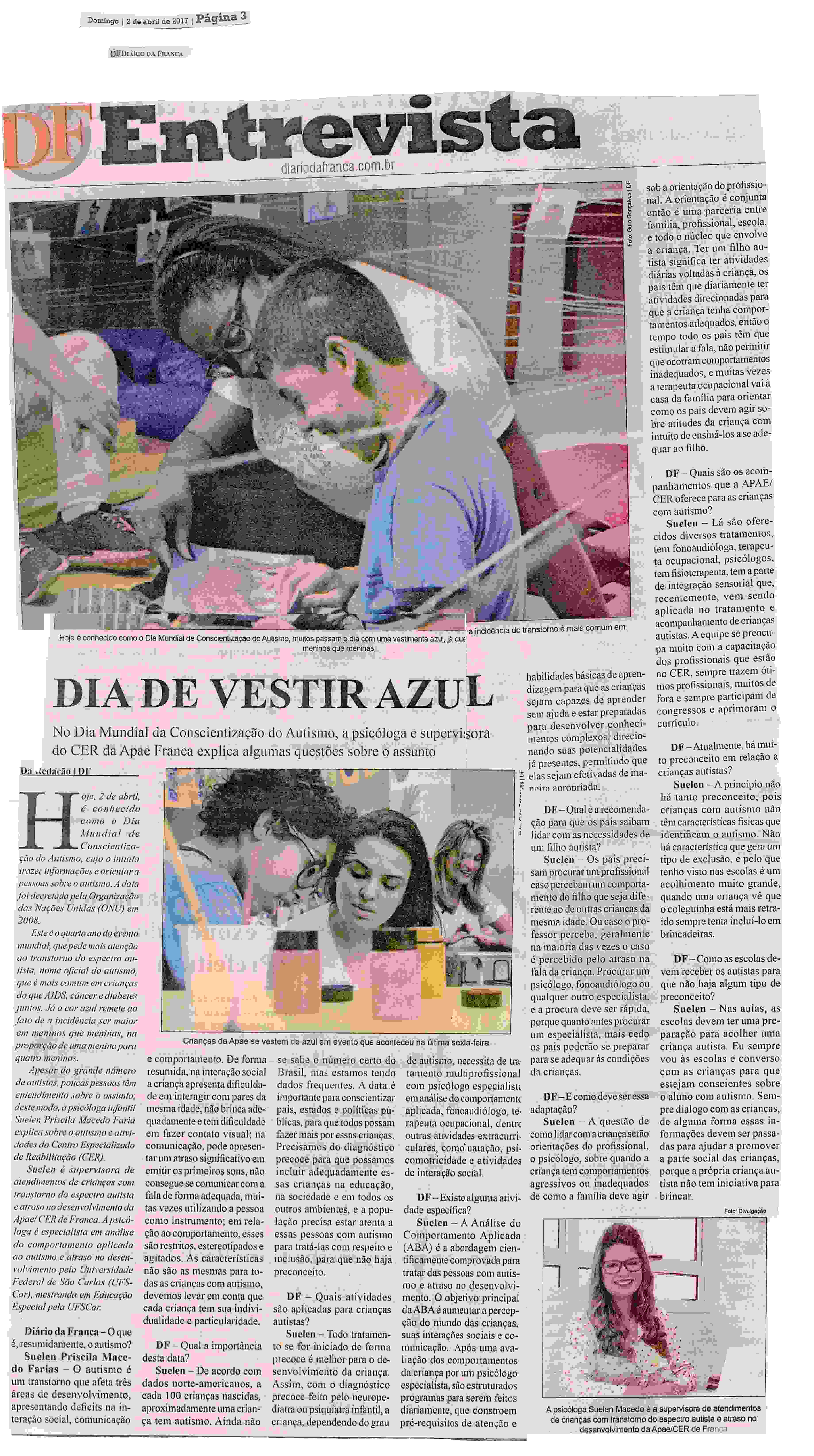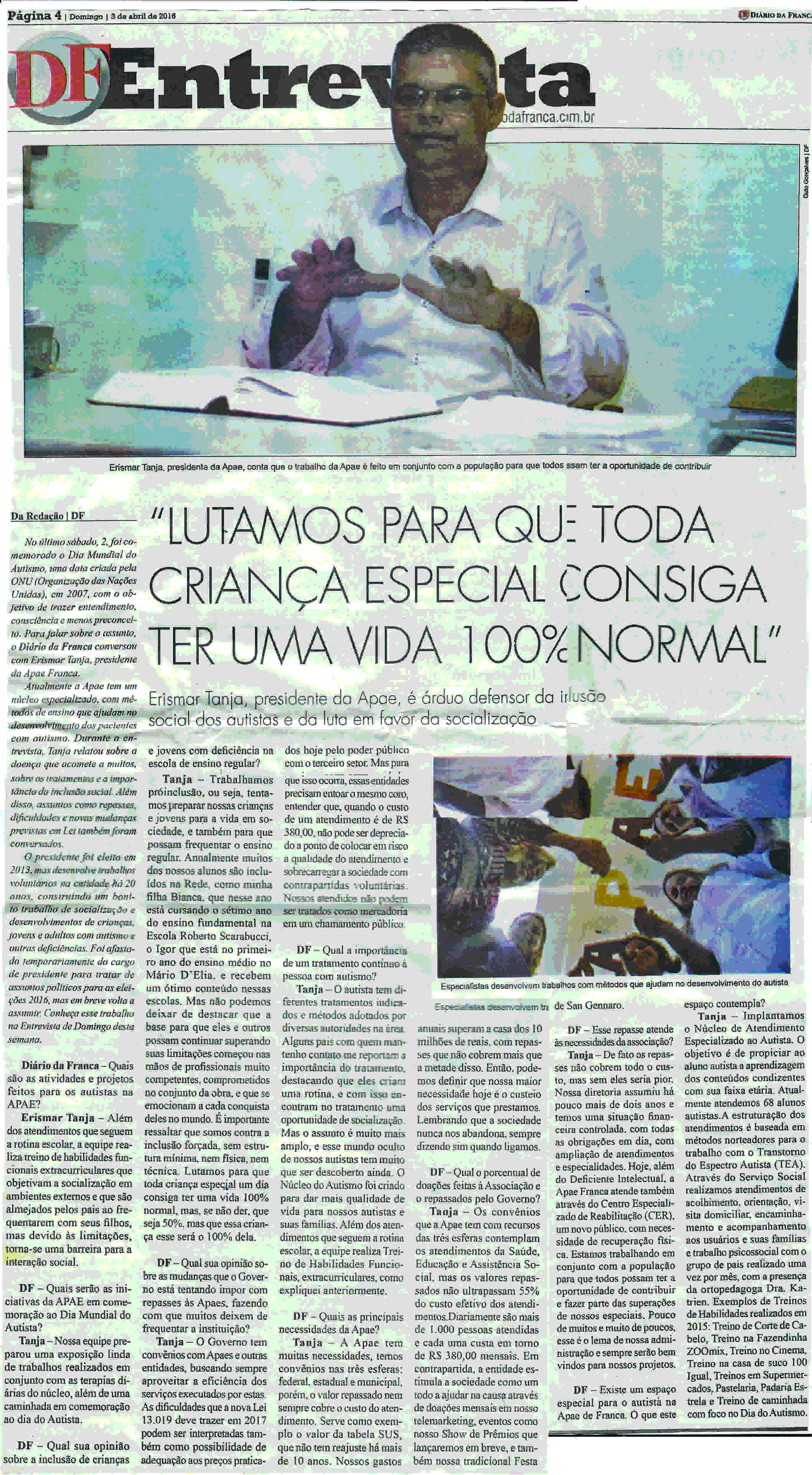 03/04/16 - DIÁRIO DA FRANCA - Lutamos para que toda criança especial consiga ter uma vida...