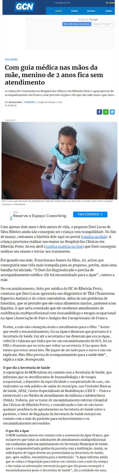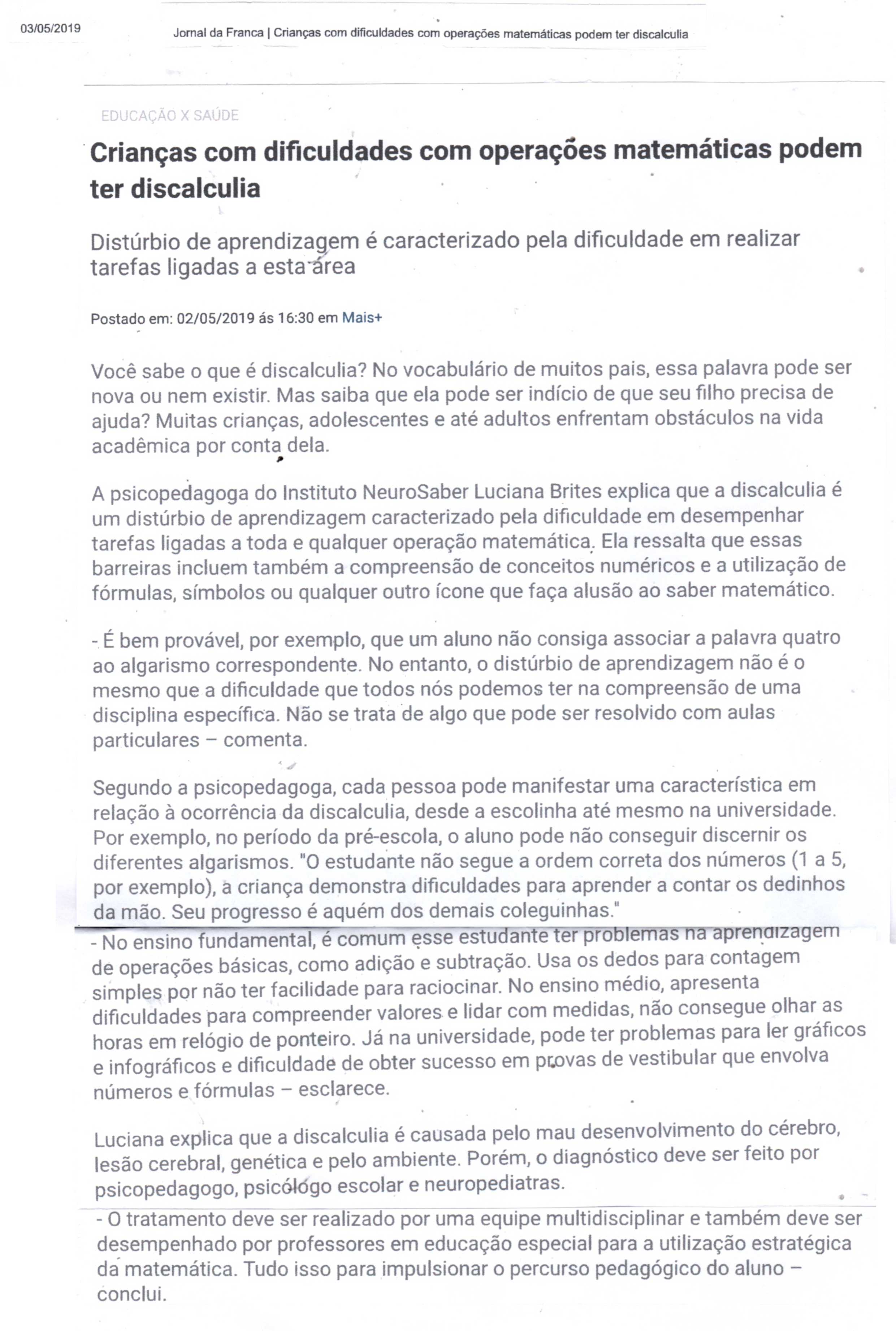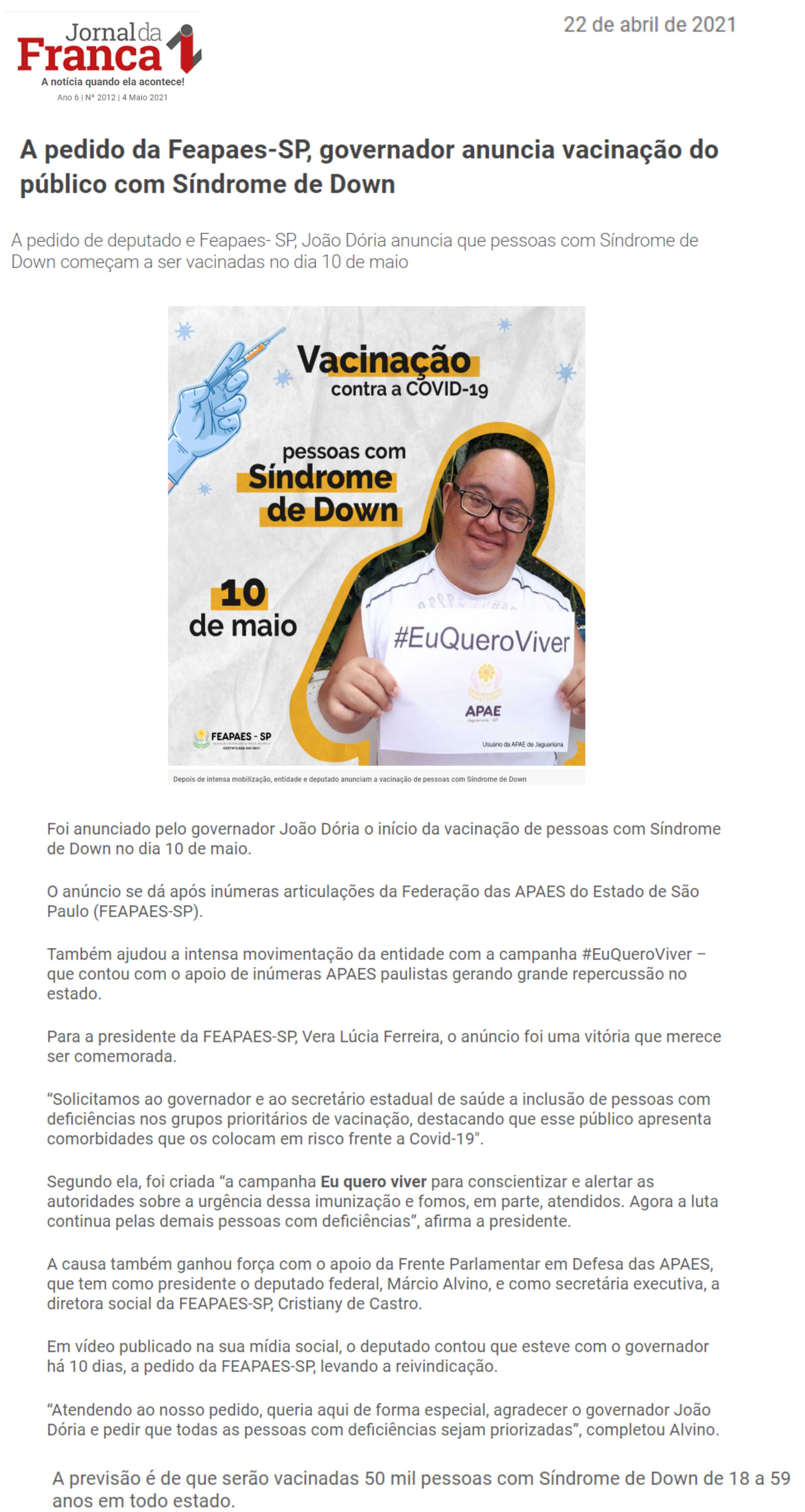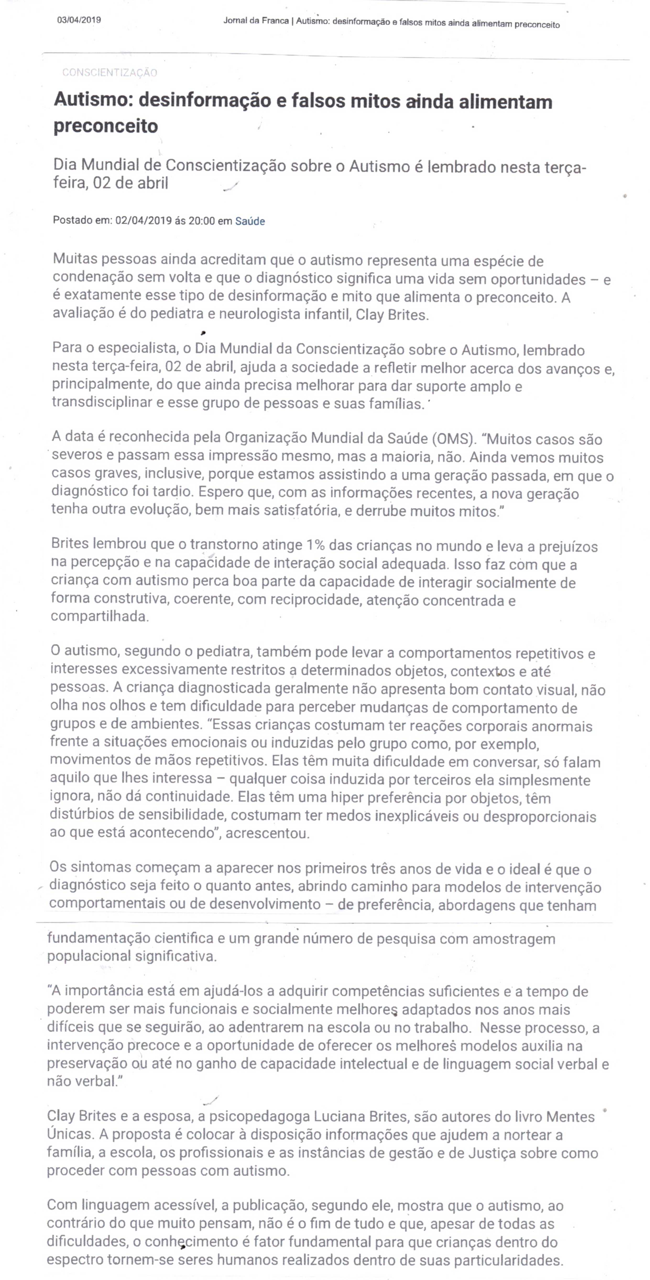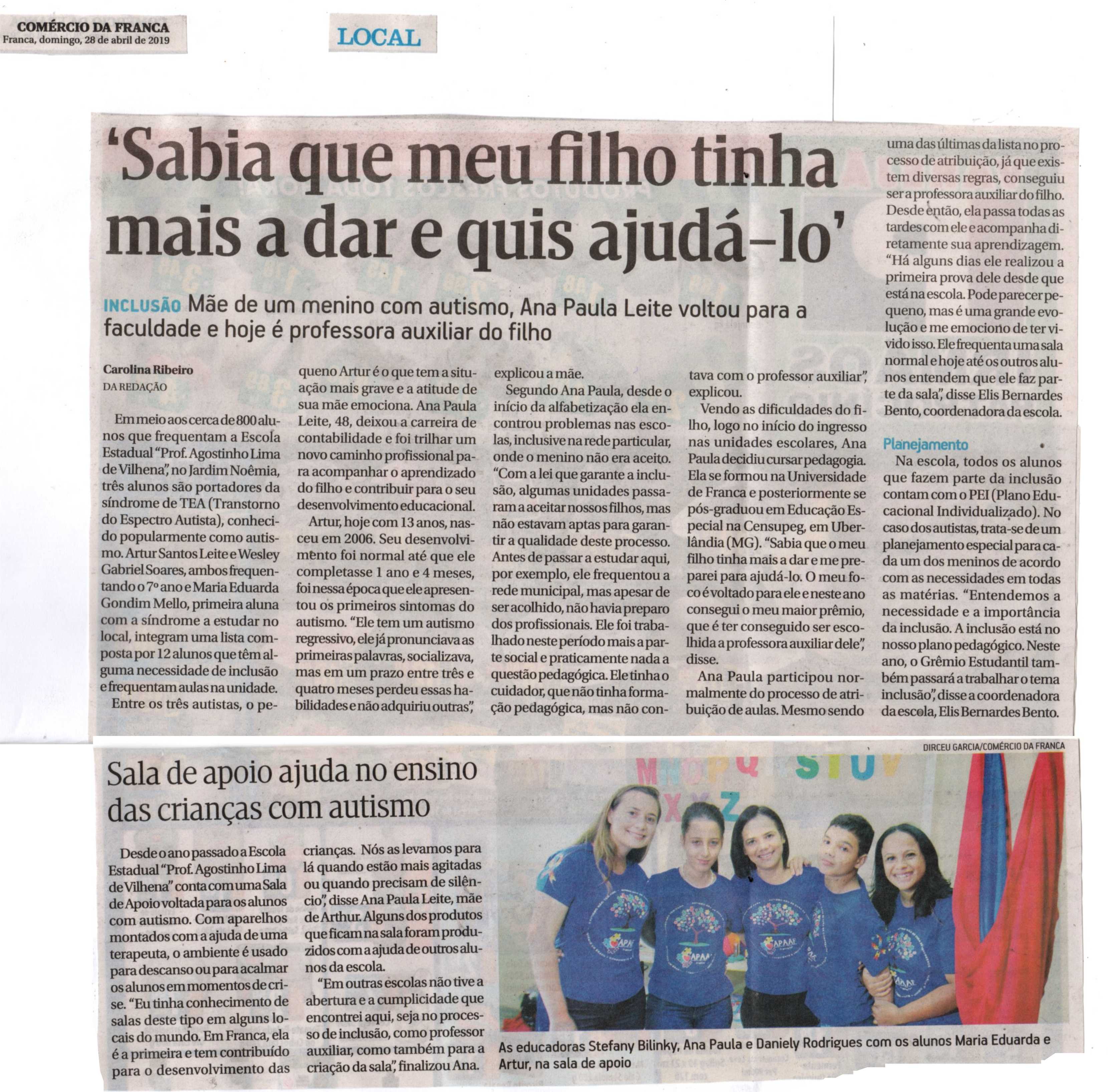03/04/16 - DIÁRIO DA FRANCA - Lutamos para que toda criança especial consiga ter uma vida...