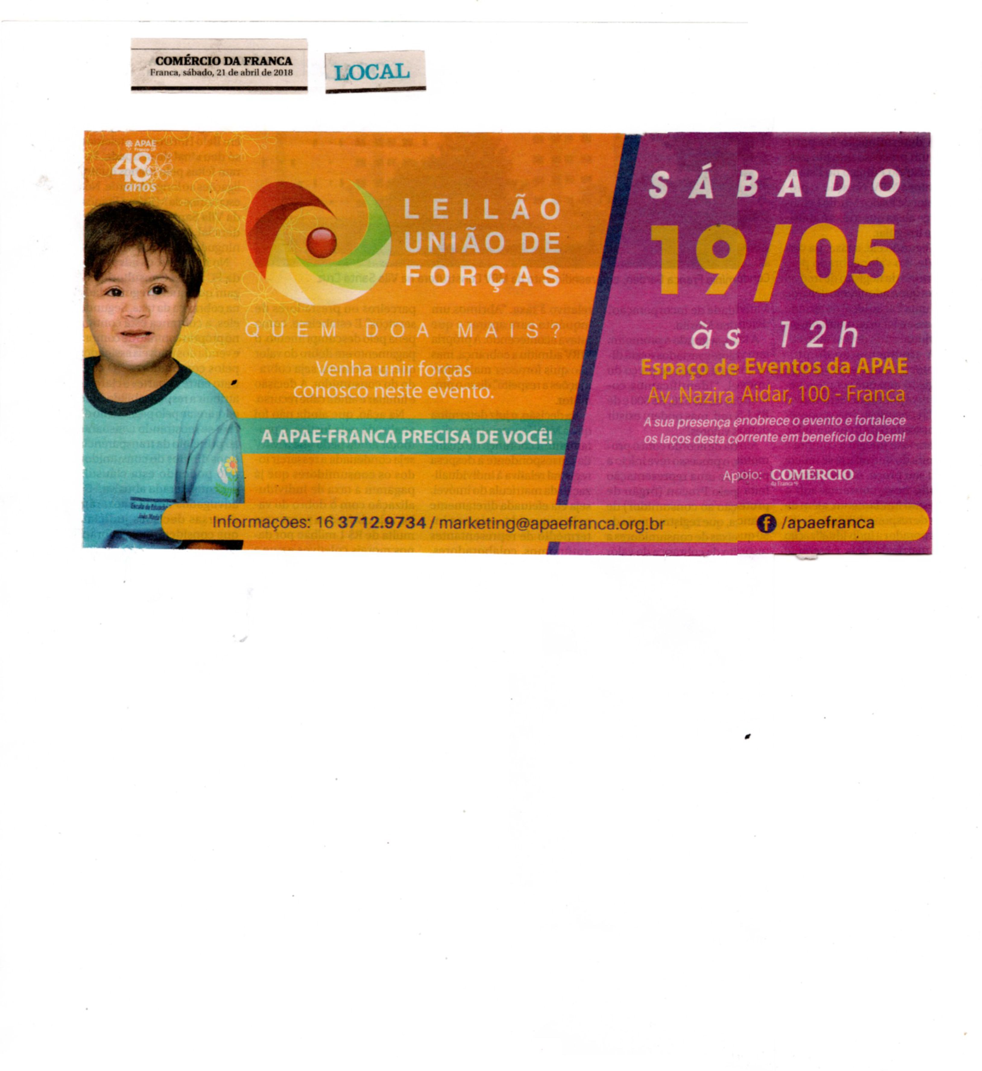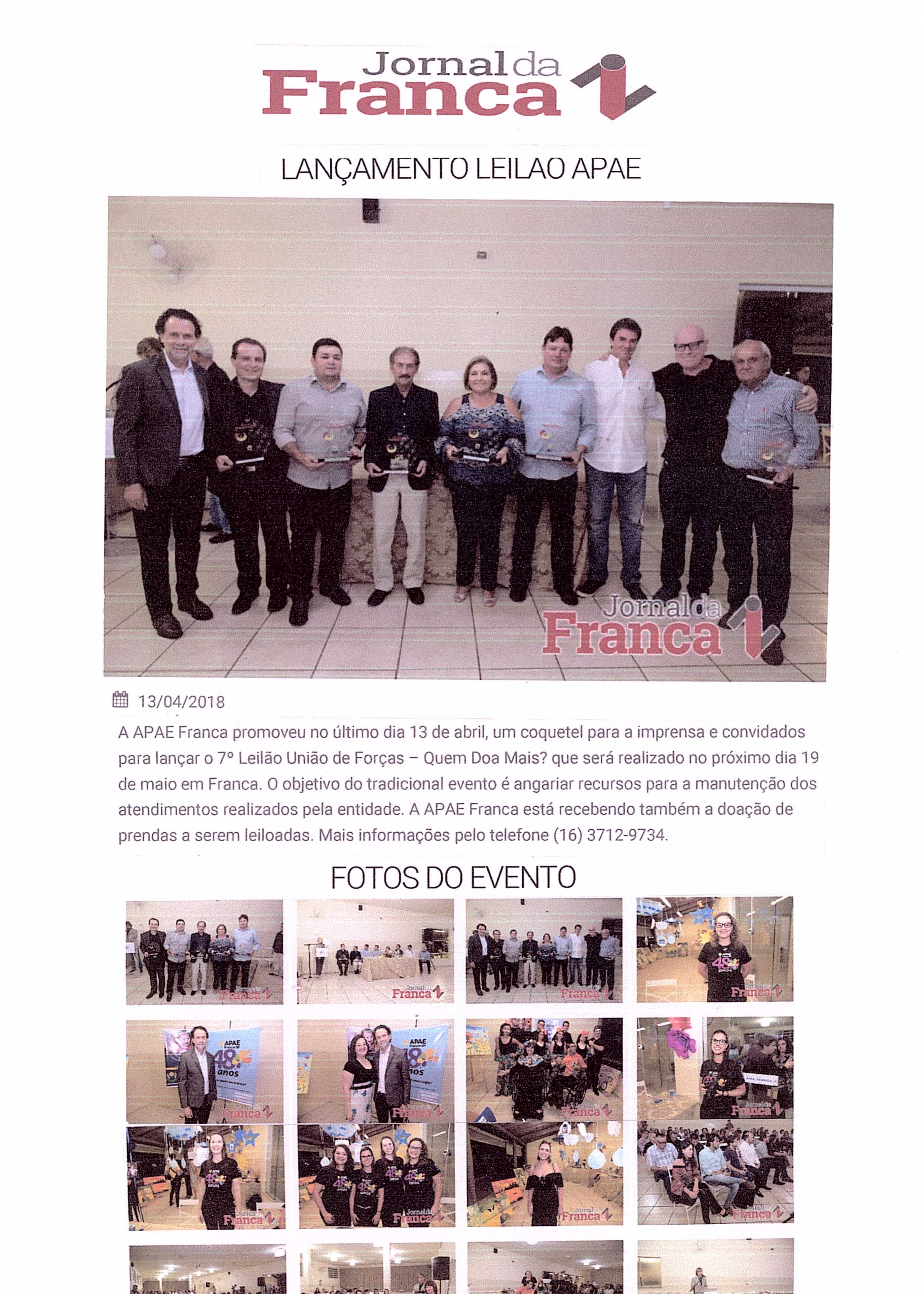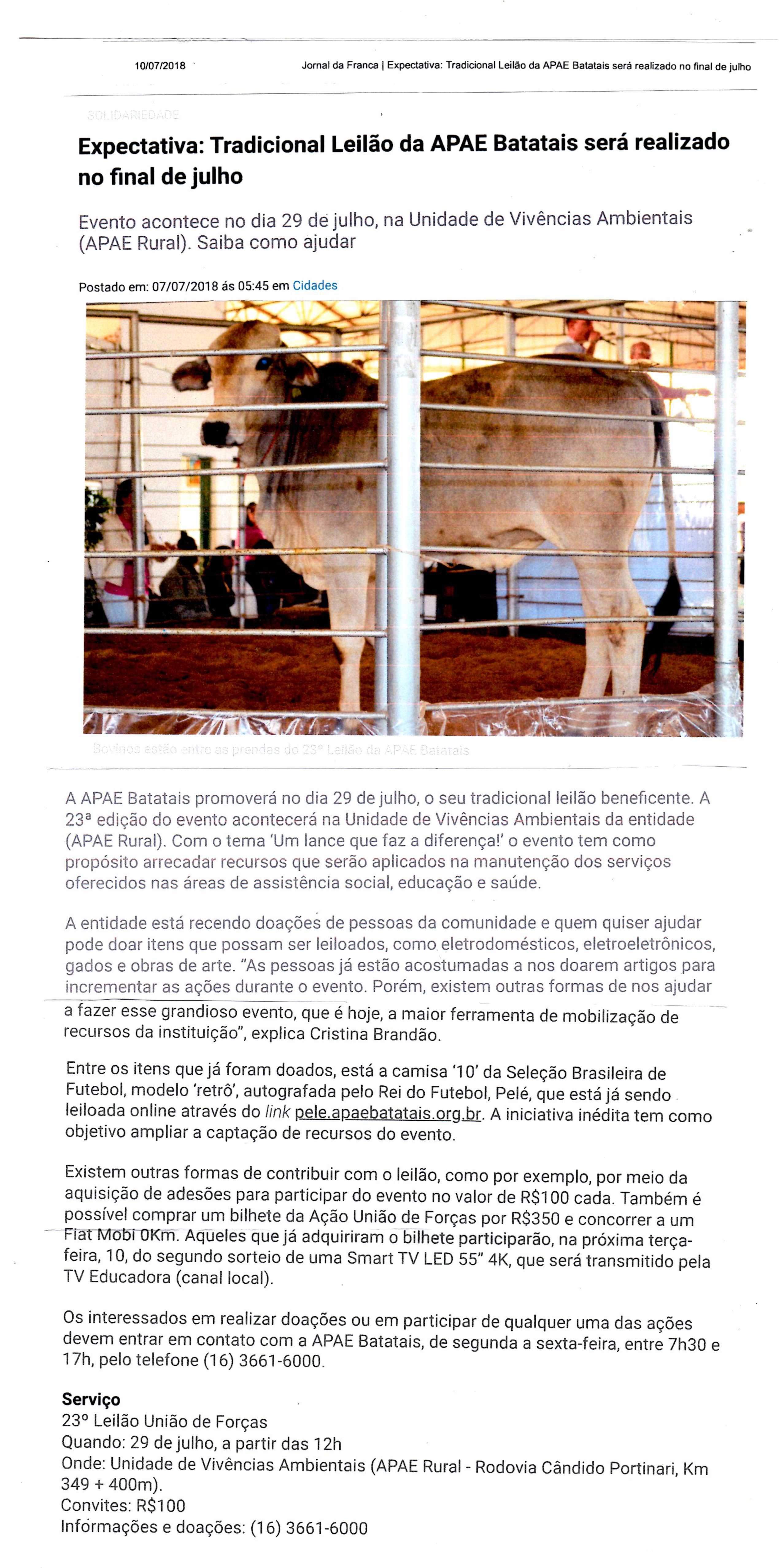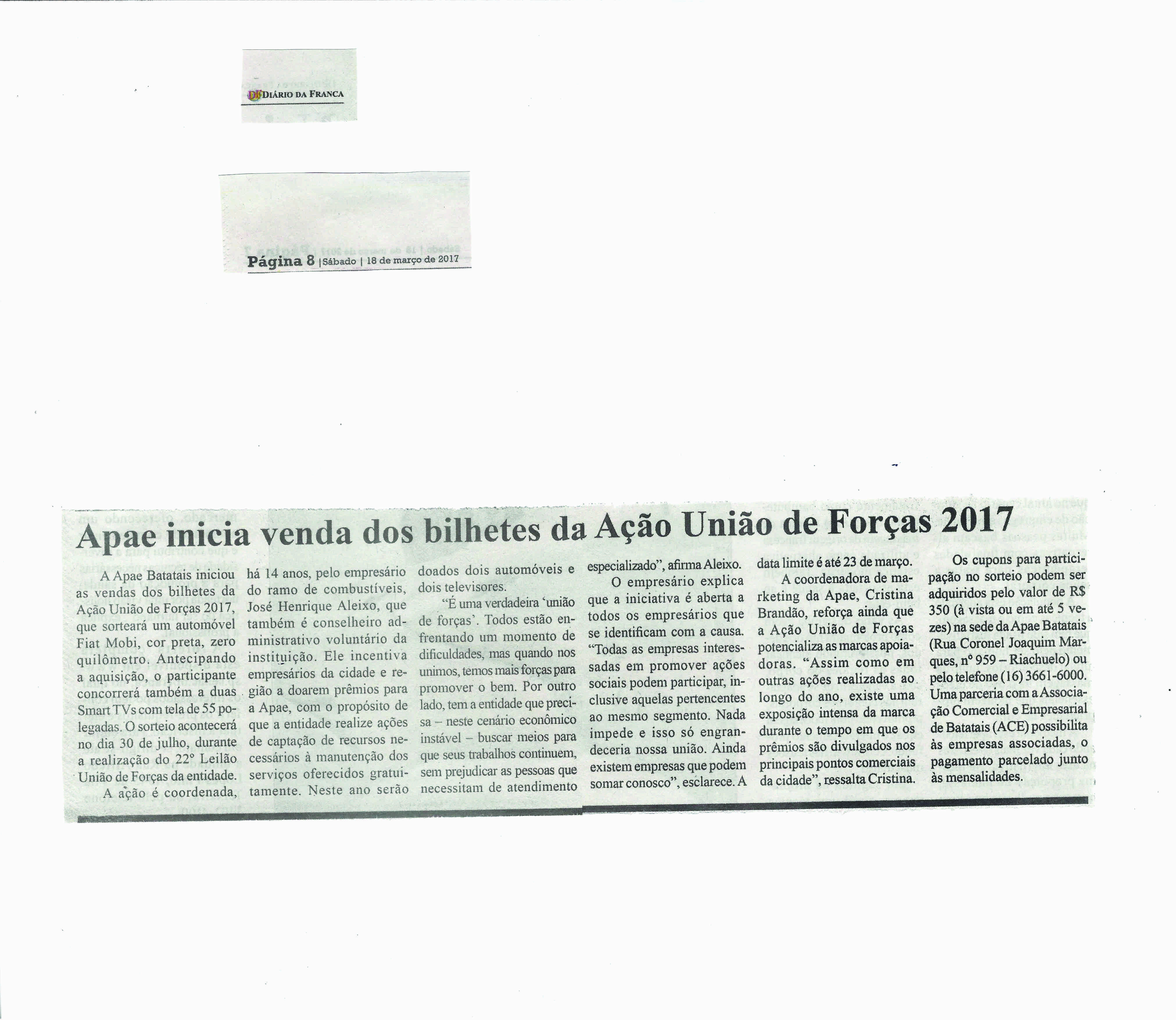 08/06/16 - DIÁRIO DA FRANCA - Apae lança campanha para 21º Leilão União de Forças - 0806-d...