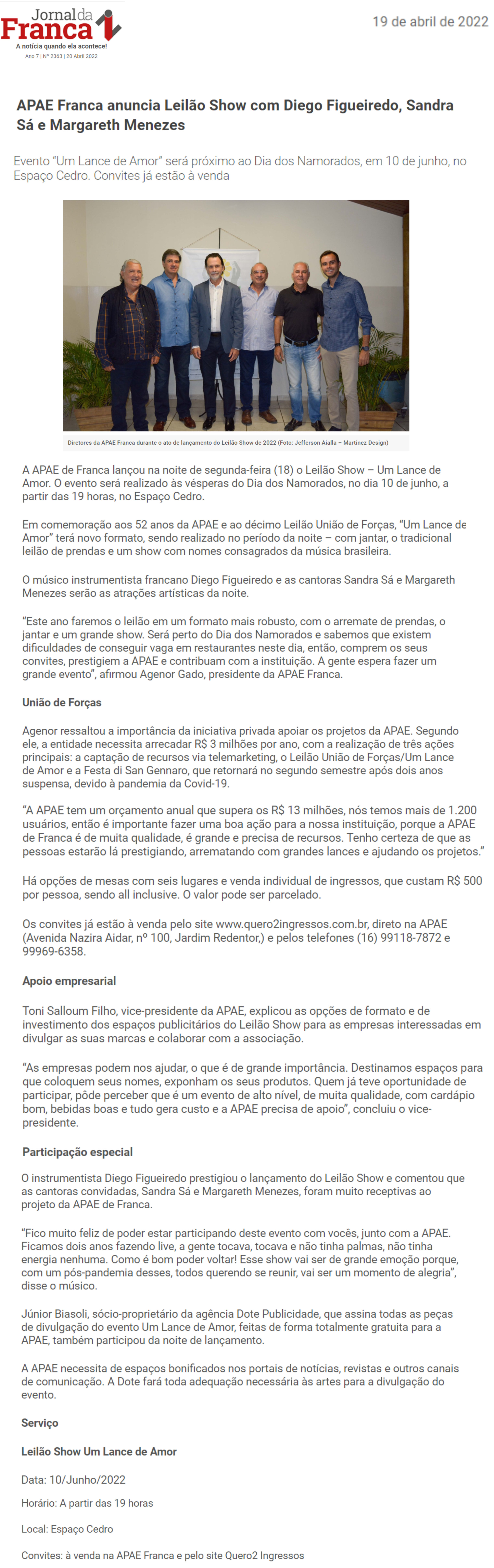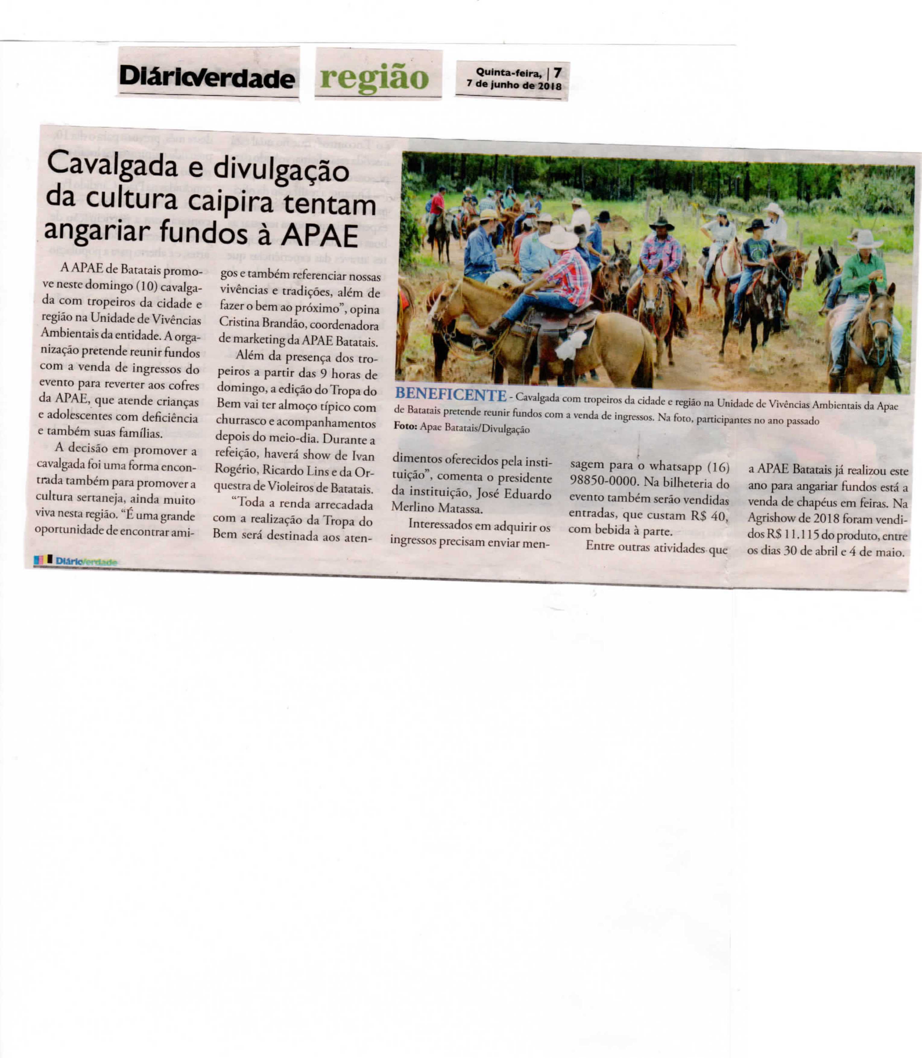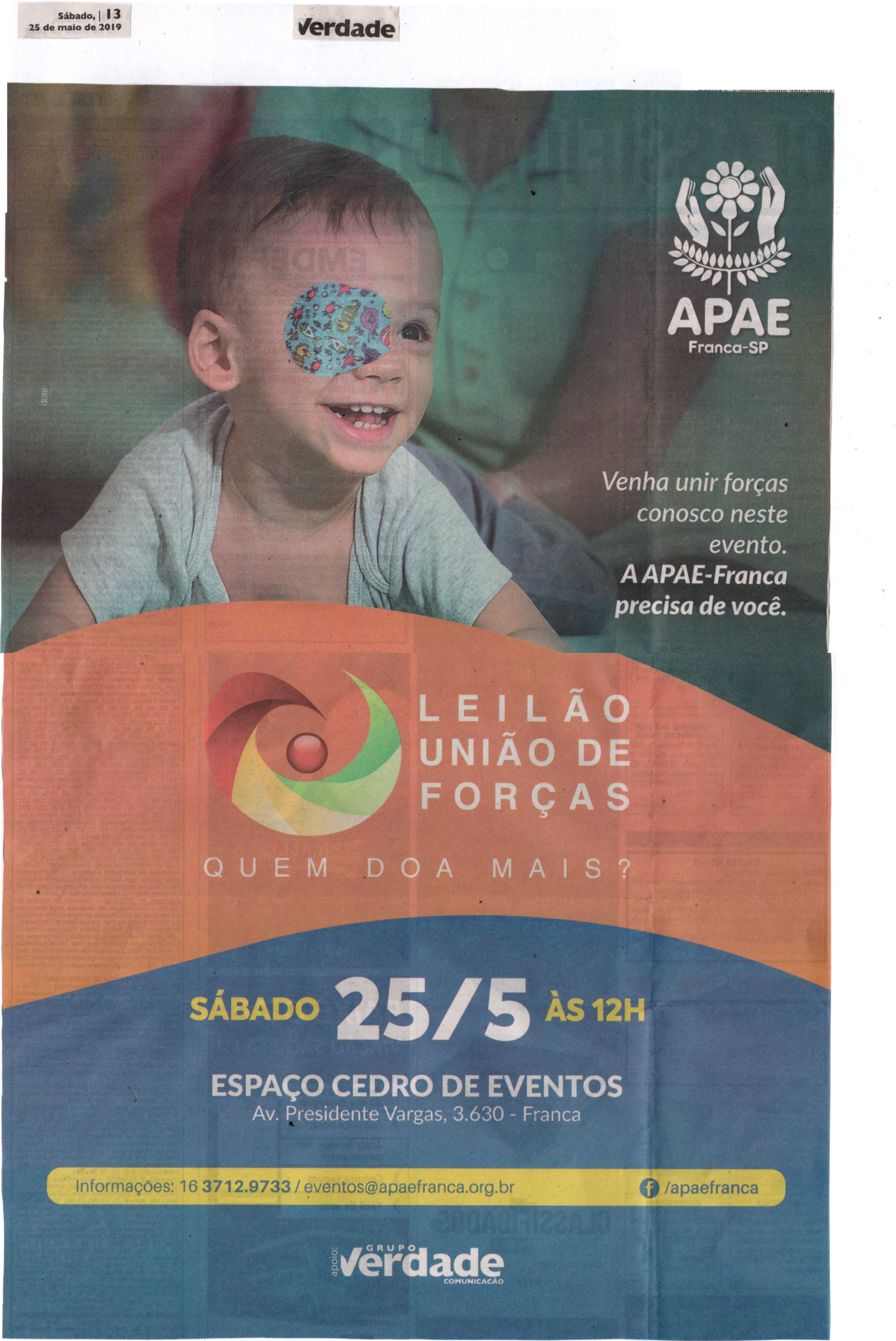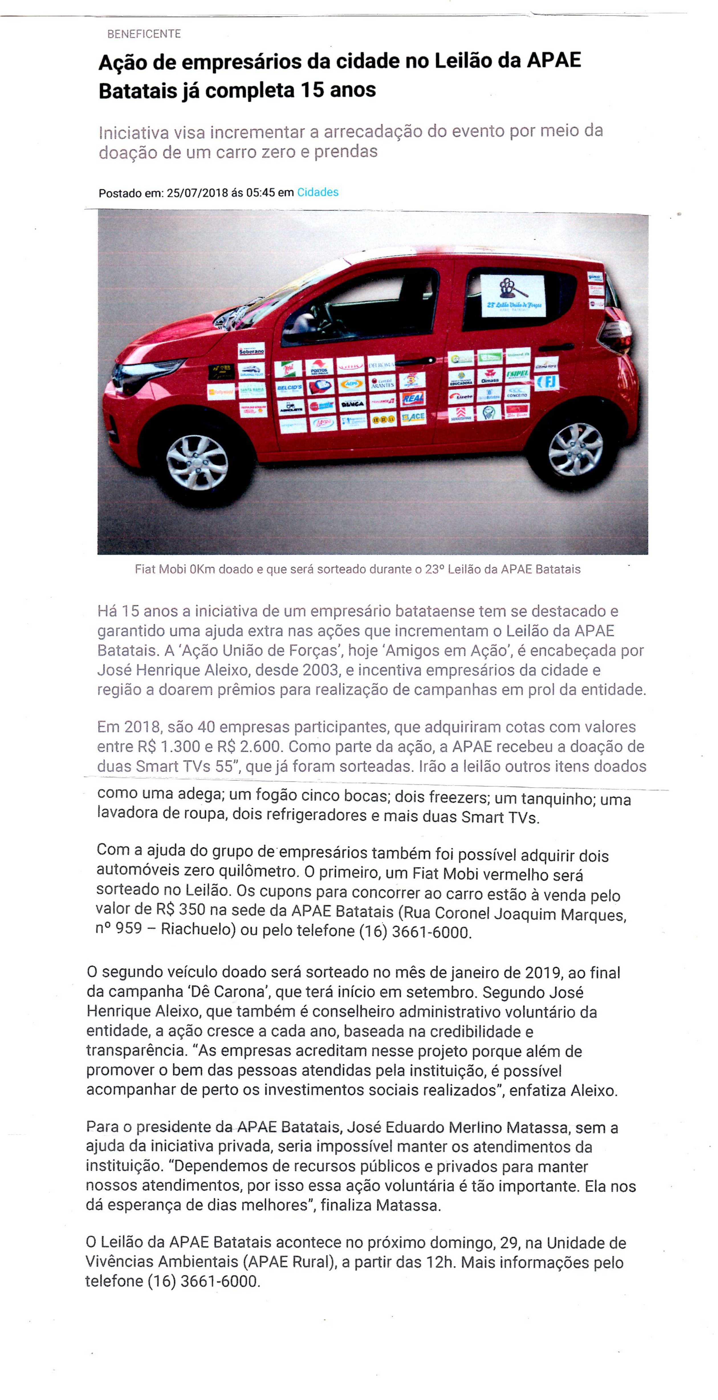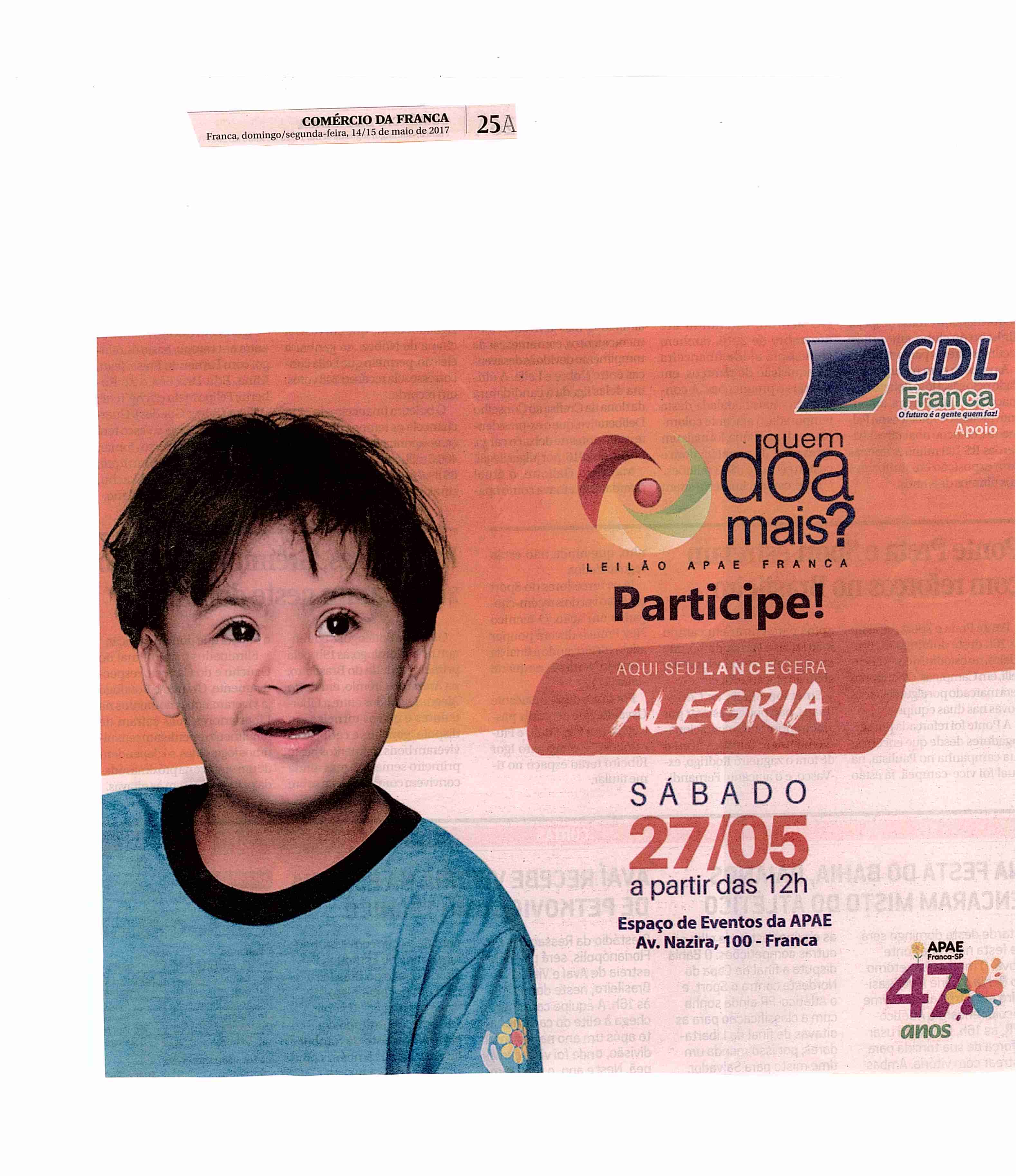 08/06/16 - DIÁRIO DA FRANCA - Apae lança campanha para 21º Leilão União de Forças - 0806-d...