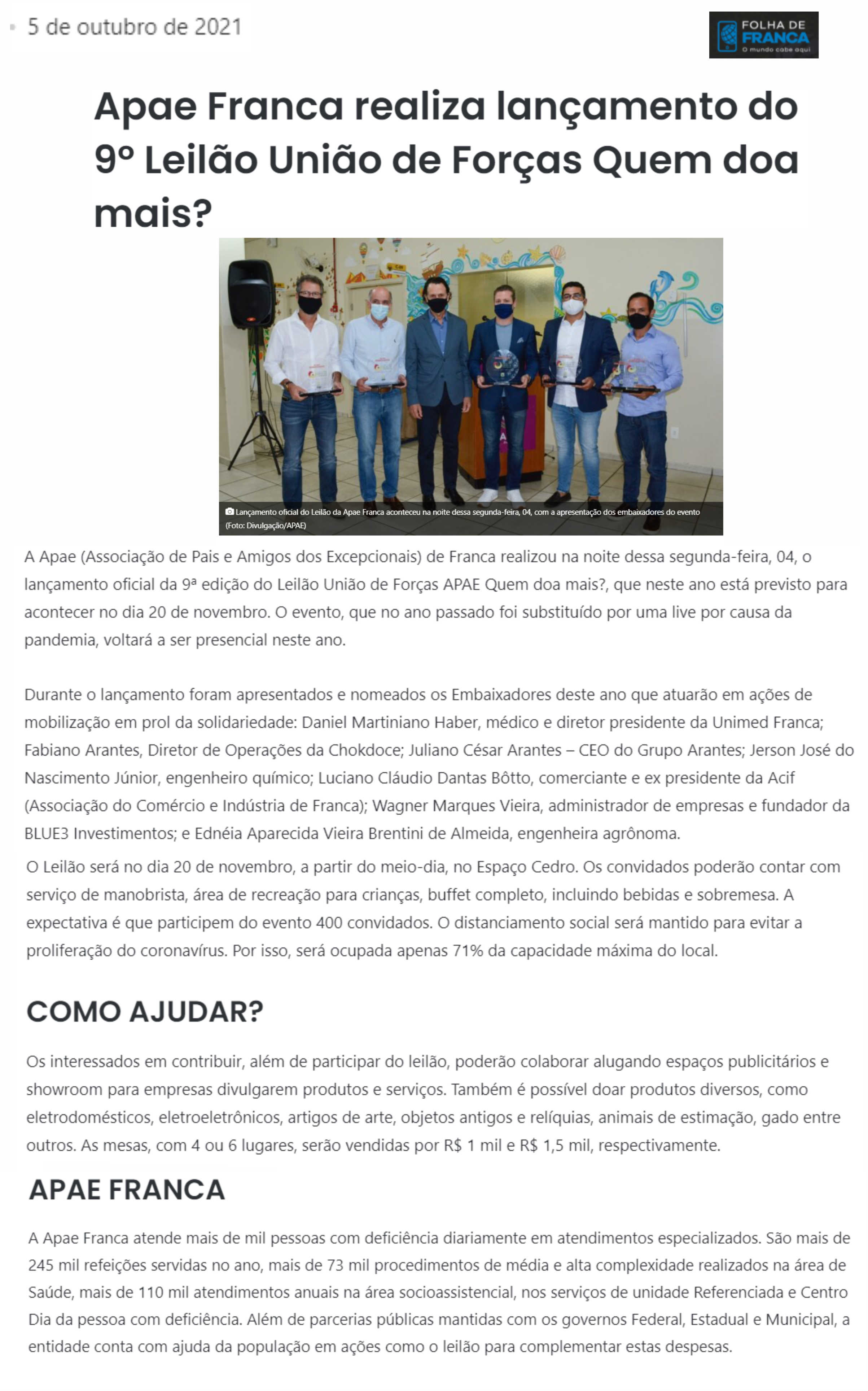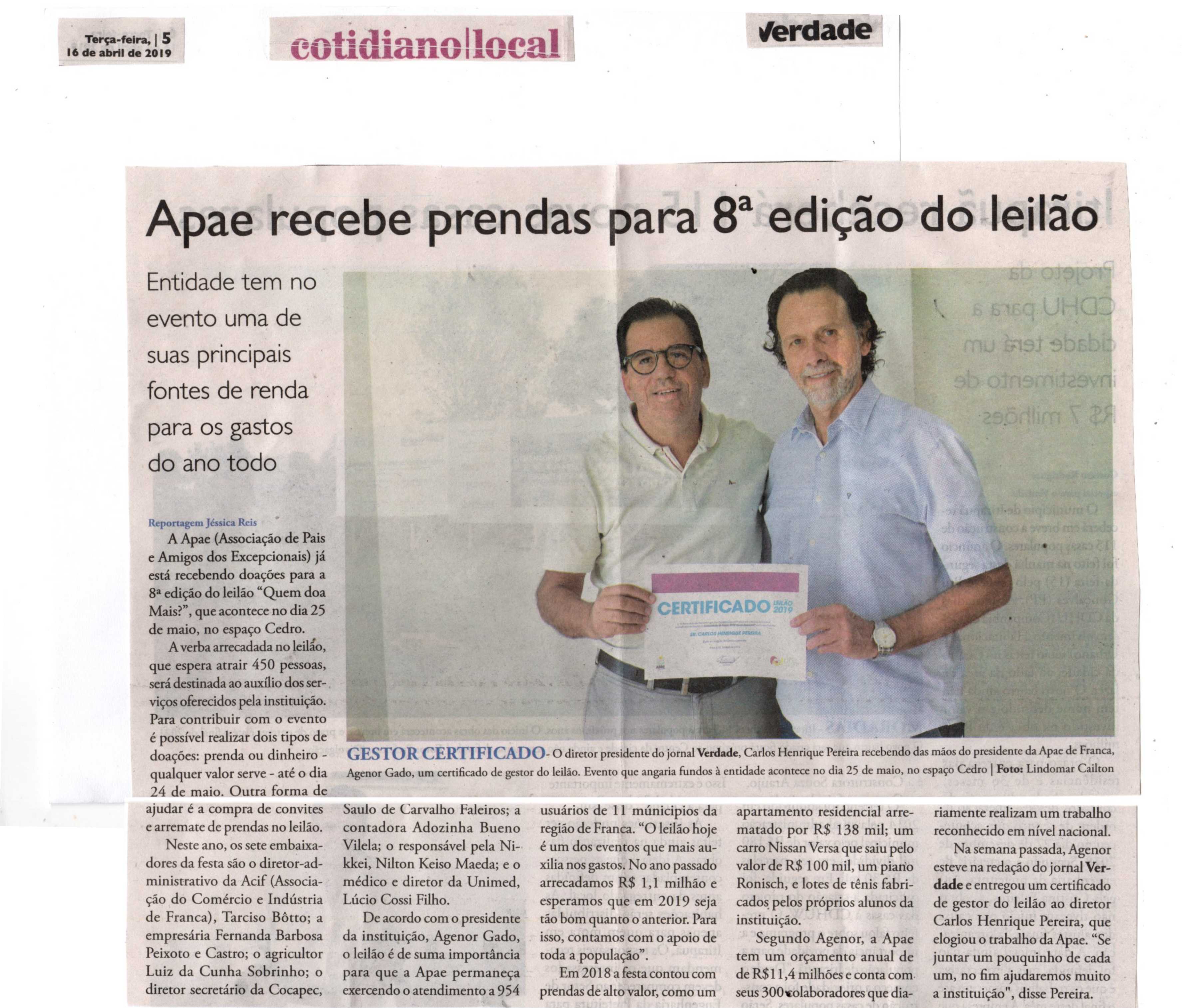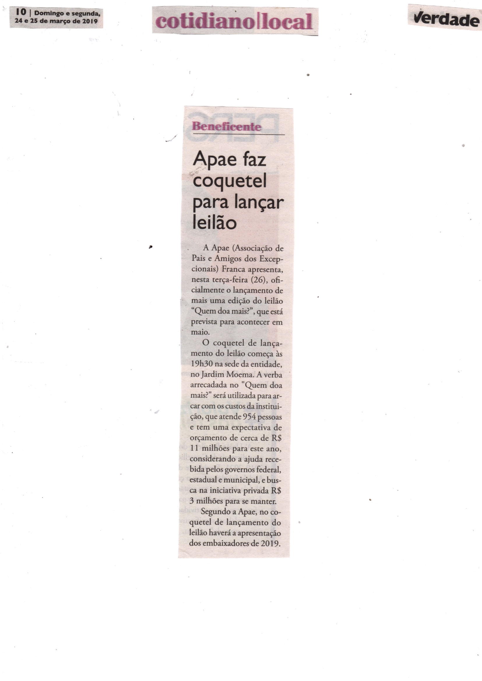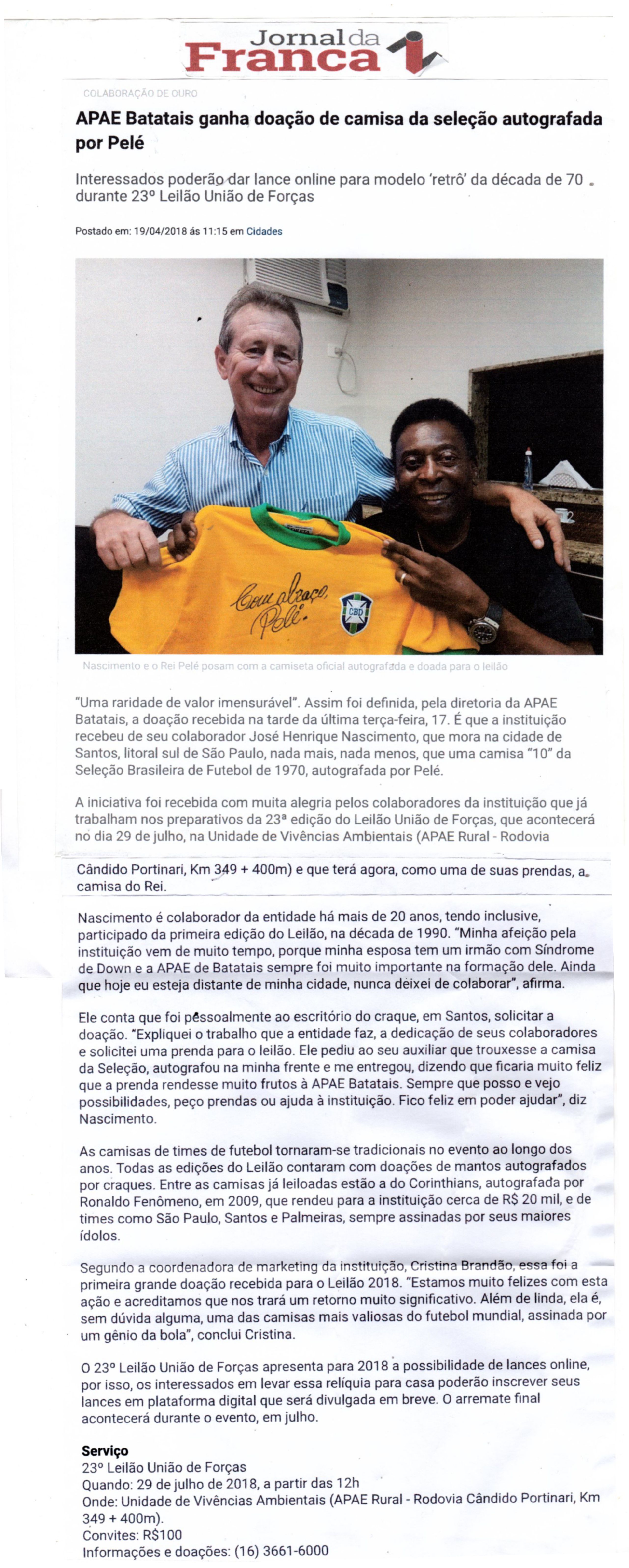 08/06/16 - DIÁRIO DA FRANCA - Apae lança campanha para 21º Leilão União de Forças - 0806-d...