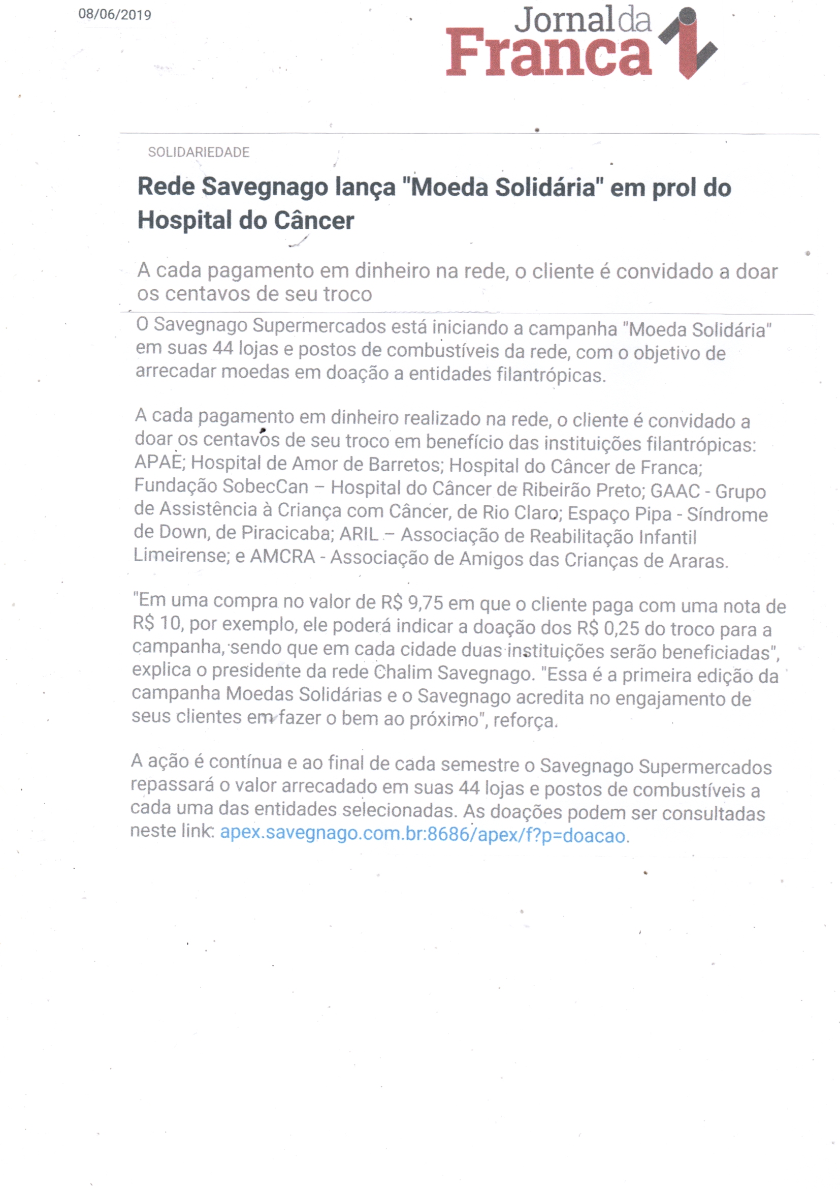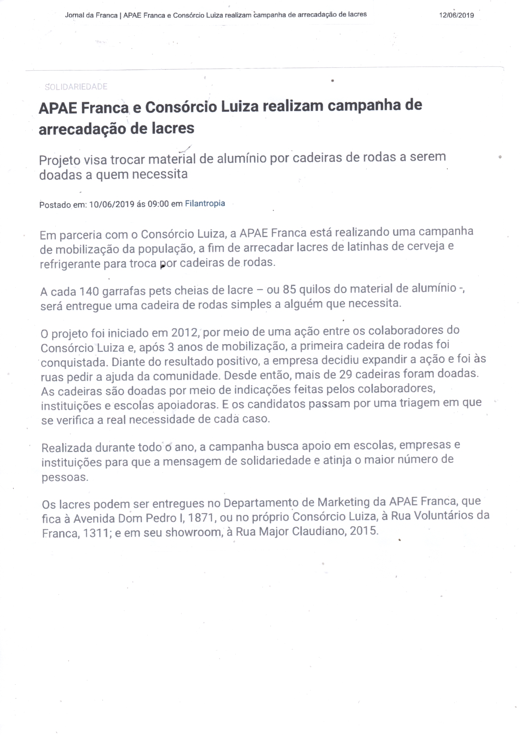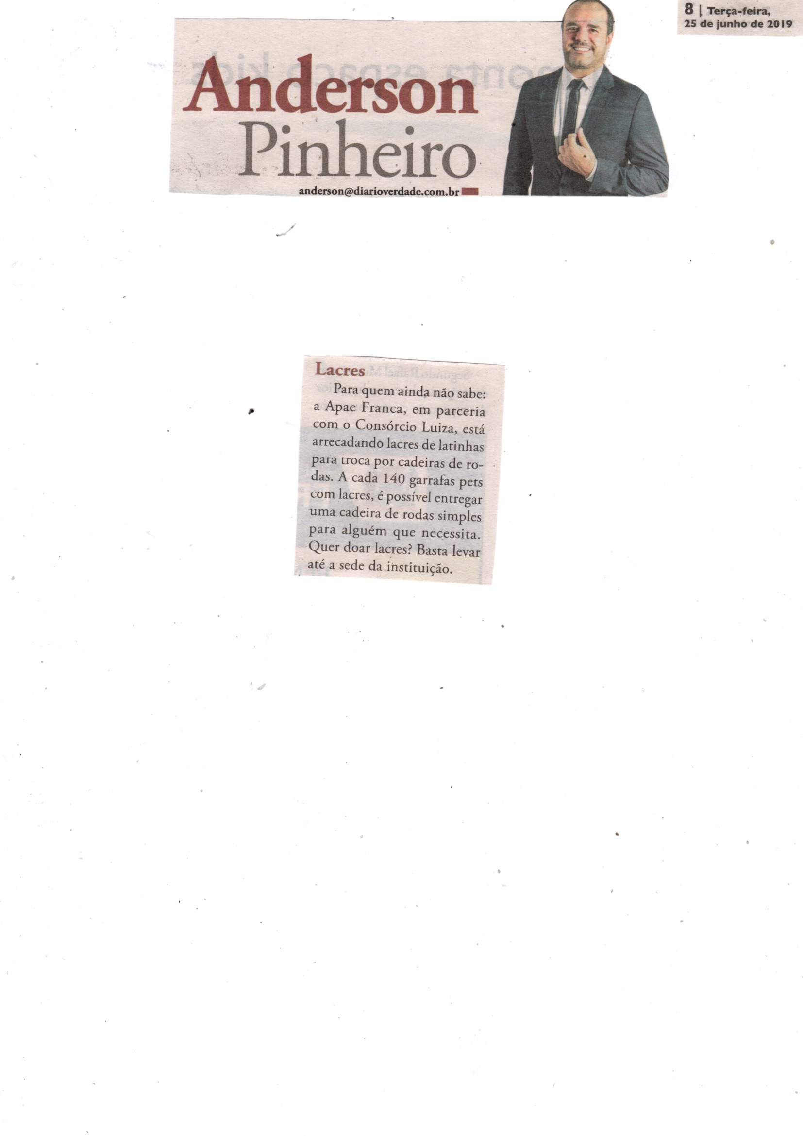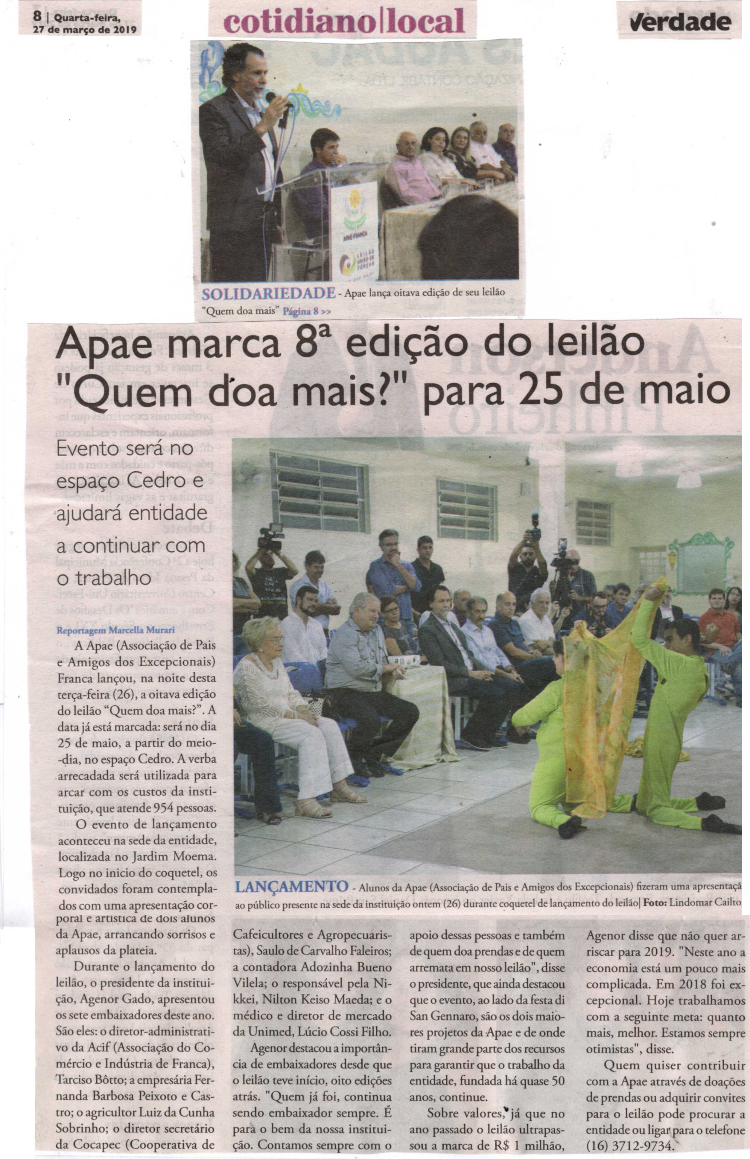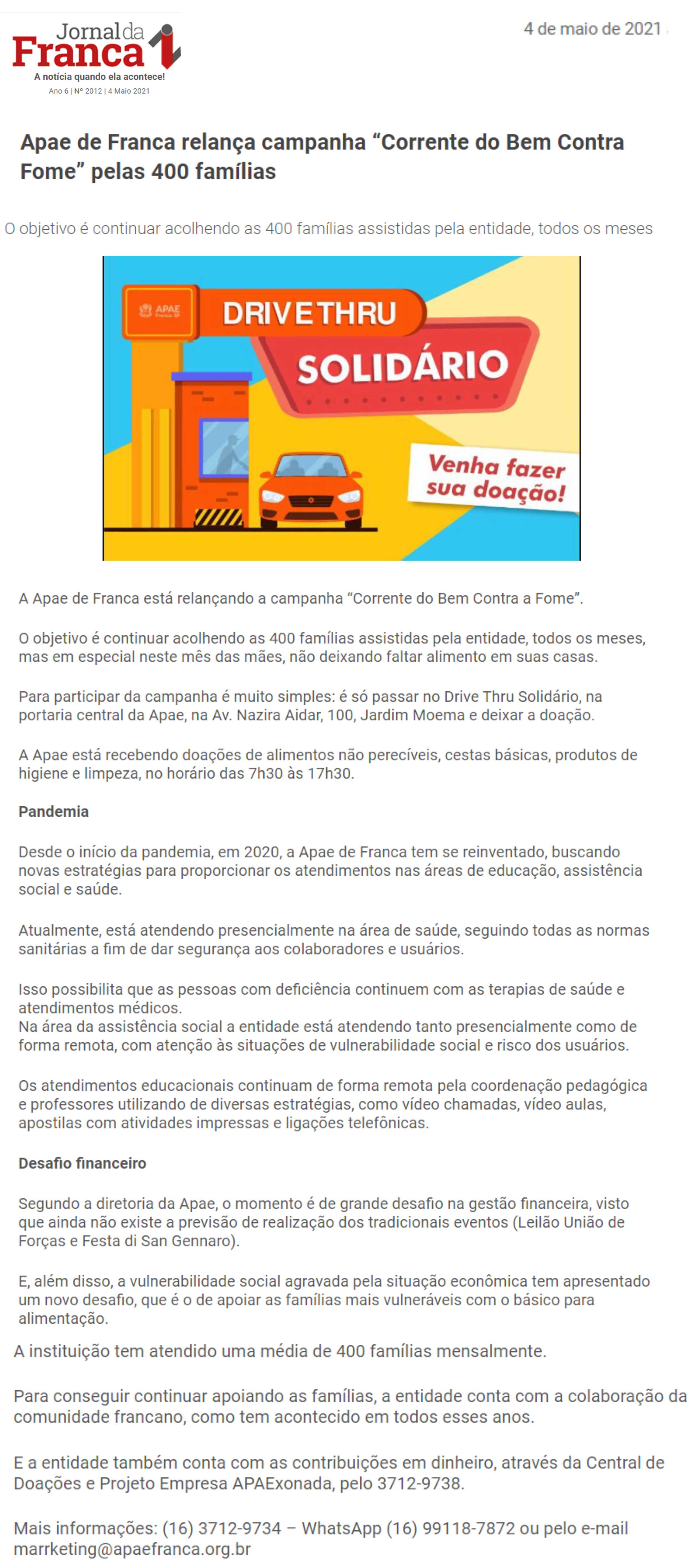 08/06/16 - DIÁRIO DA FRANCA - Apae lança campanha para 21º Leilão União de Forças - 0806-d...