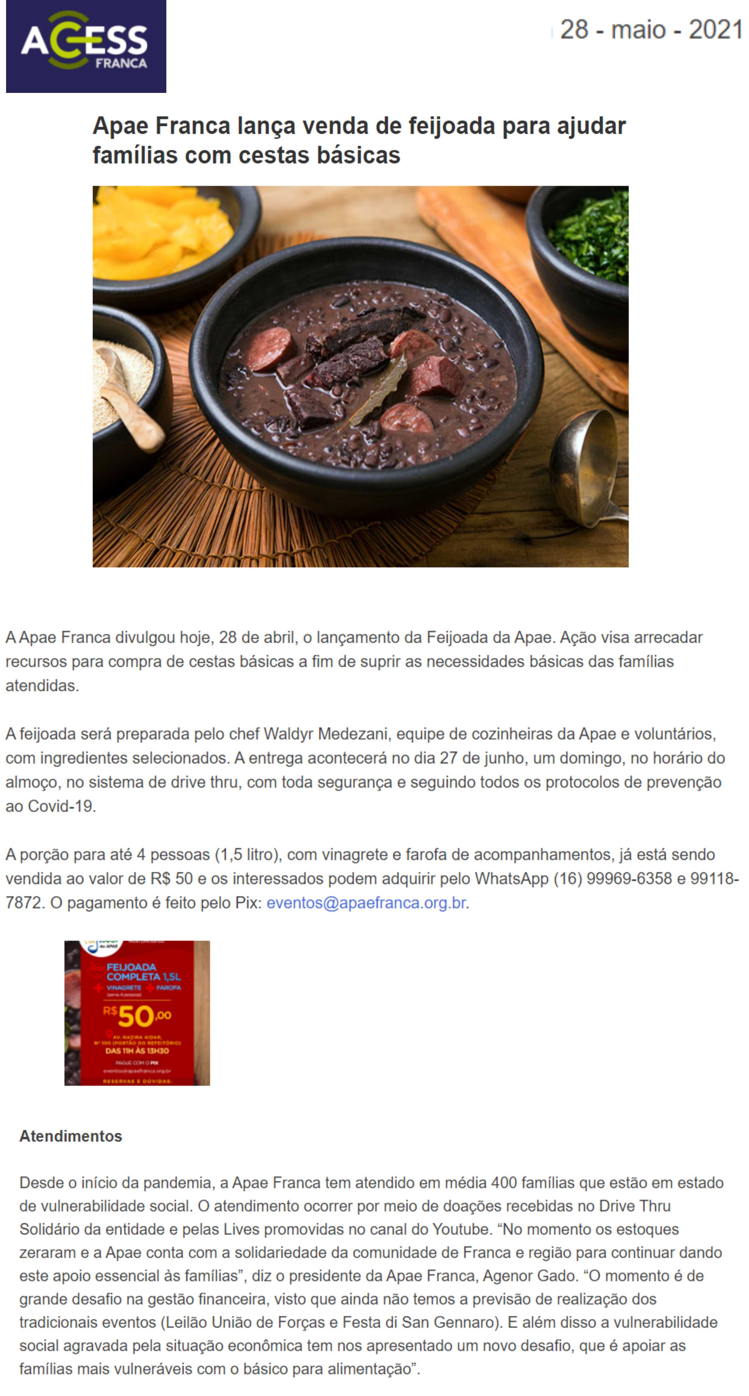 15/07/16 - COMÉRCIO DA FRANCA - Apae de Batatais promove o primeiro Festival da Feijoada -...