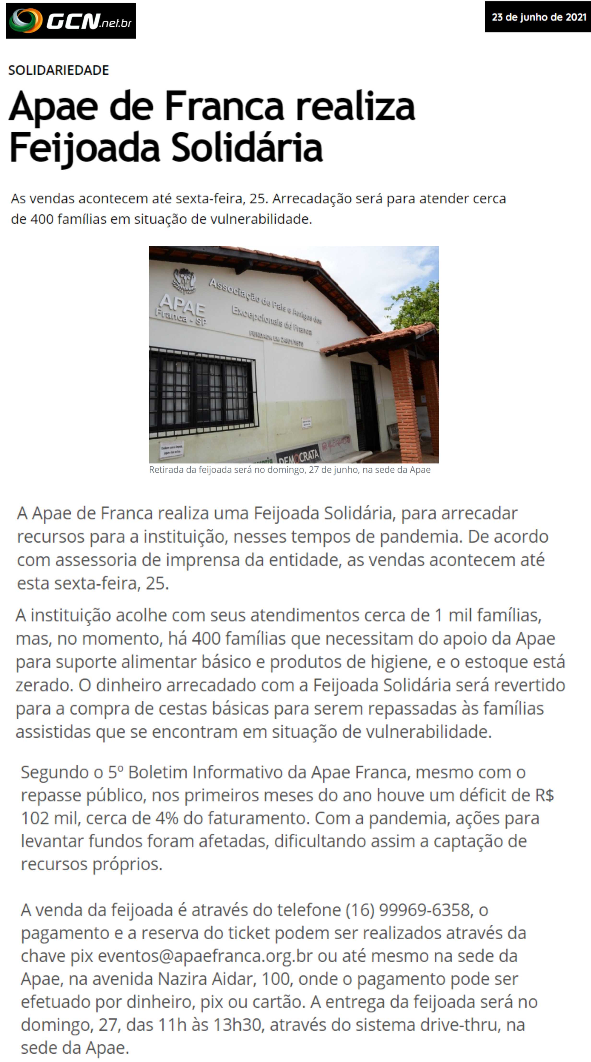 02/07/16 - JORNAL DA FRANCA - Apae Batatais promove 1º Festival de Feijoada no dia 17 de j...