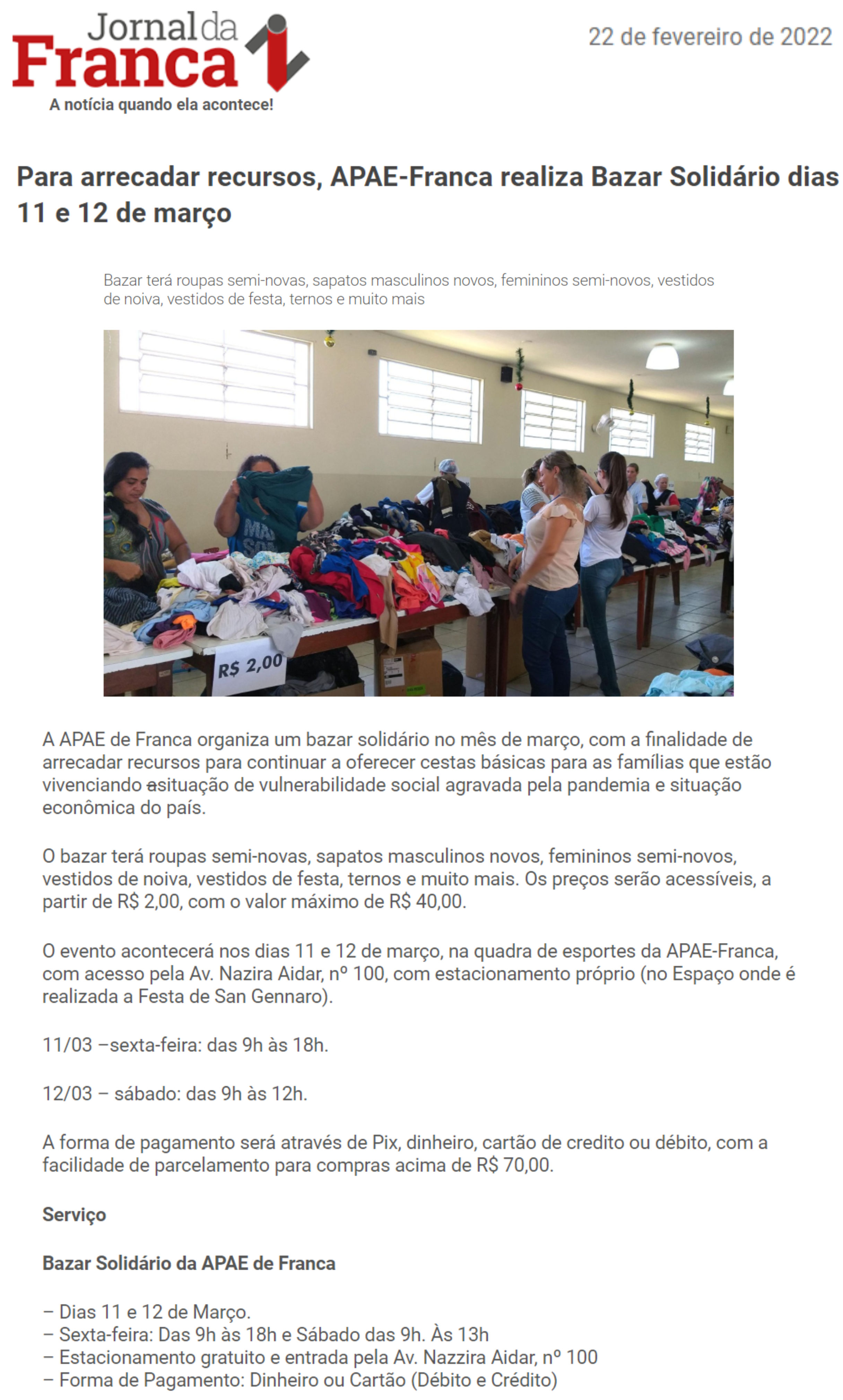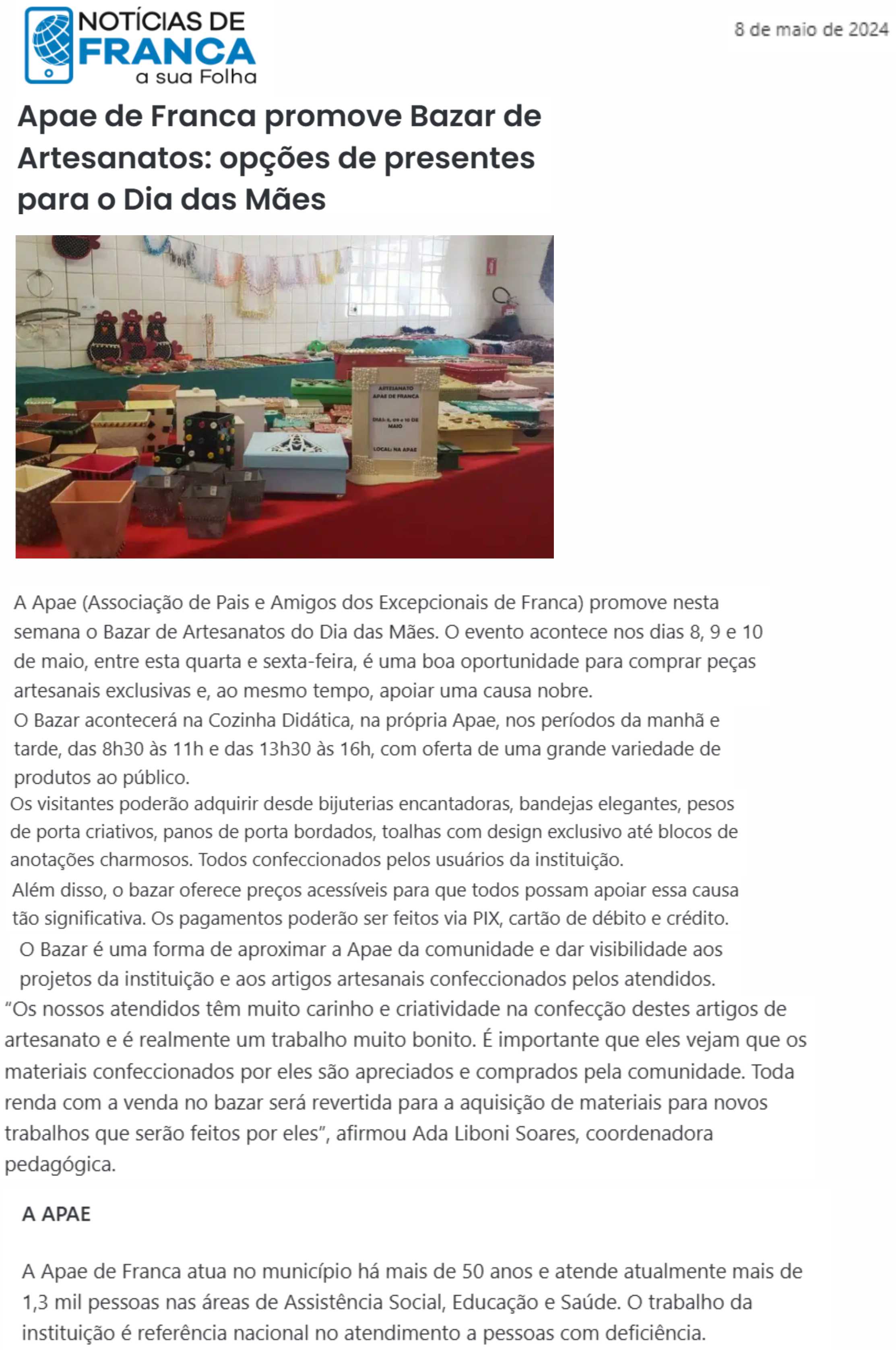 03/08/16 - DIÁRIO DA FRANCA - Apae organiza Bazar dos Quitutes - 0308-diario-da-franca-apa...
