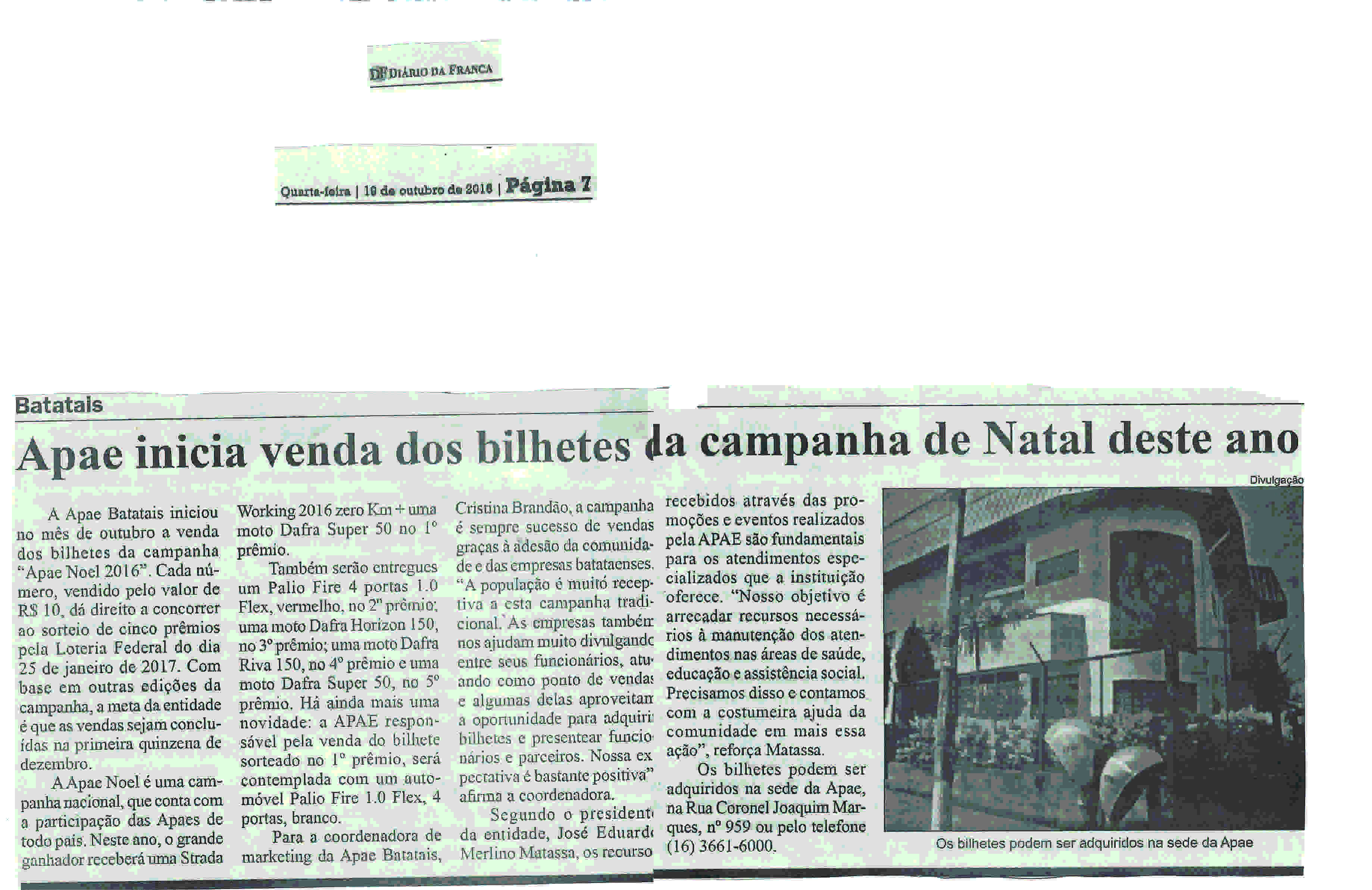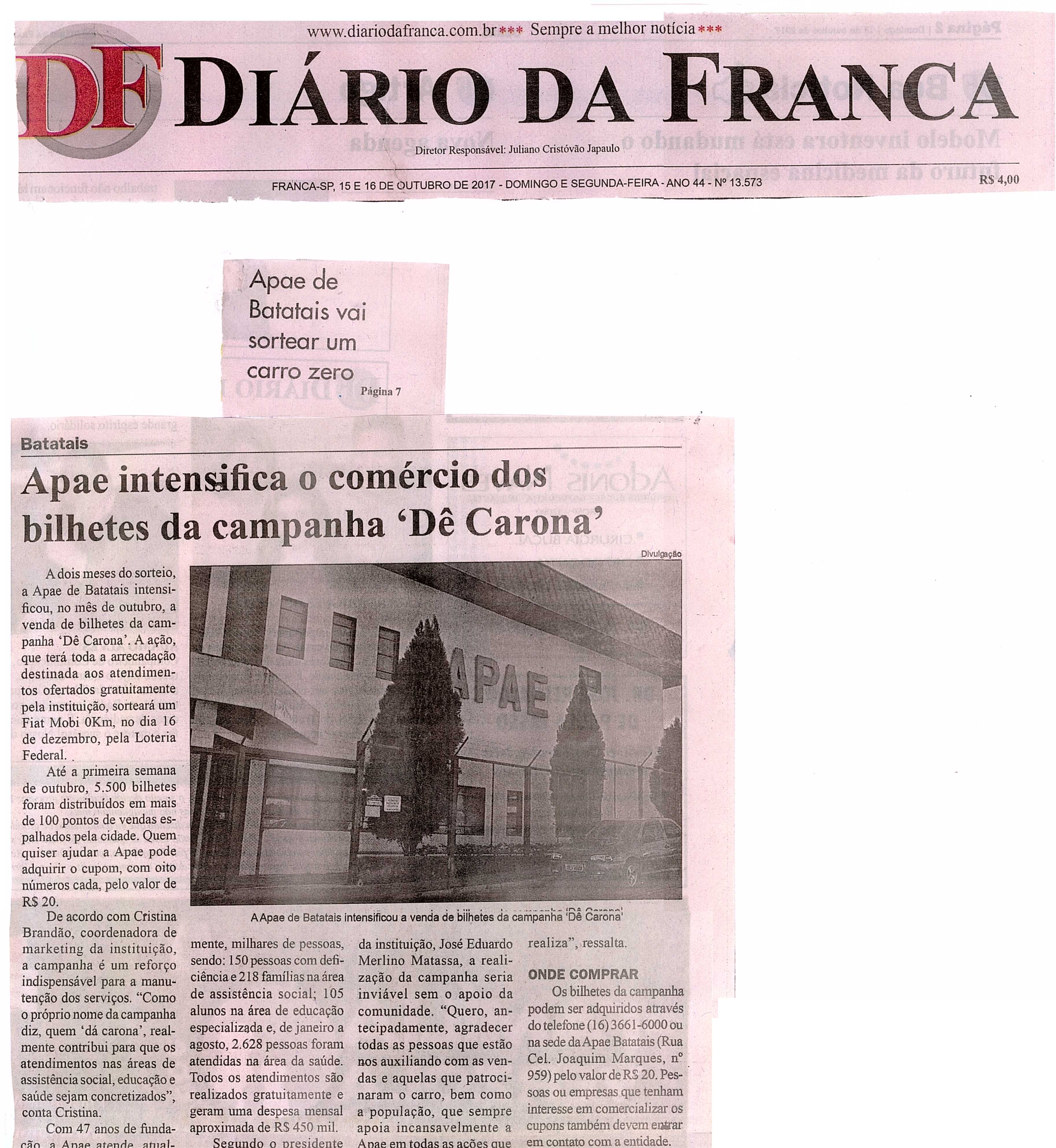 19/02/16 - DIÁRIO DA FRANCA - Apae se antecipa e vende bilhetes da sorte 0 km - 1902-apae-...