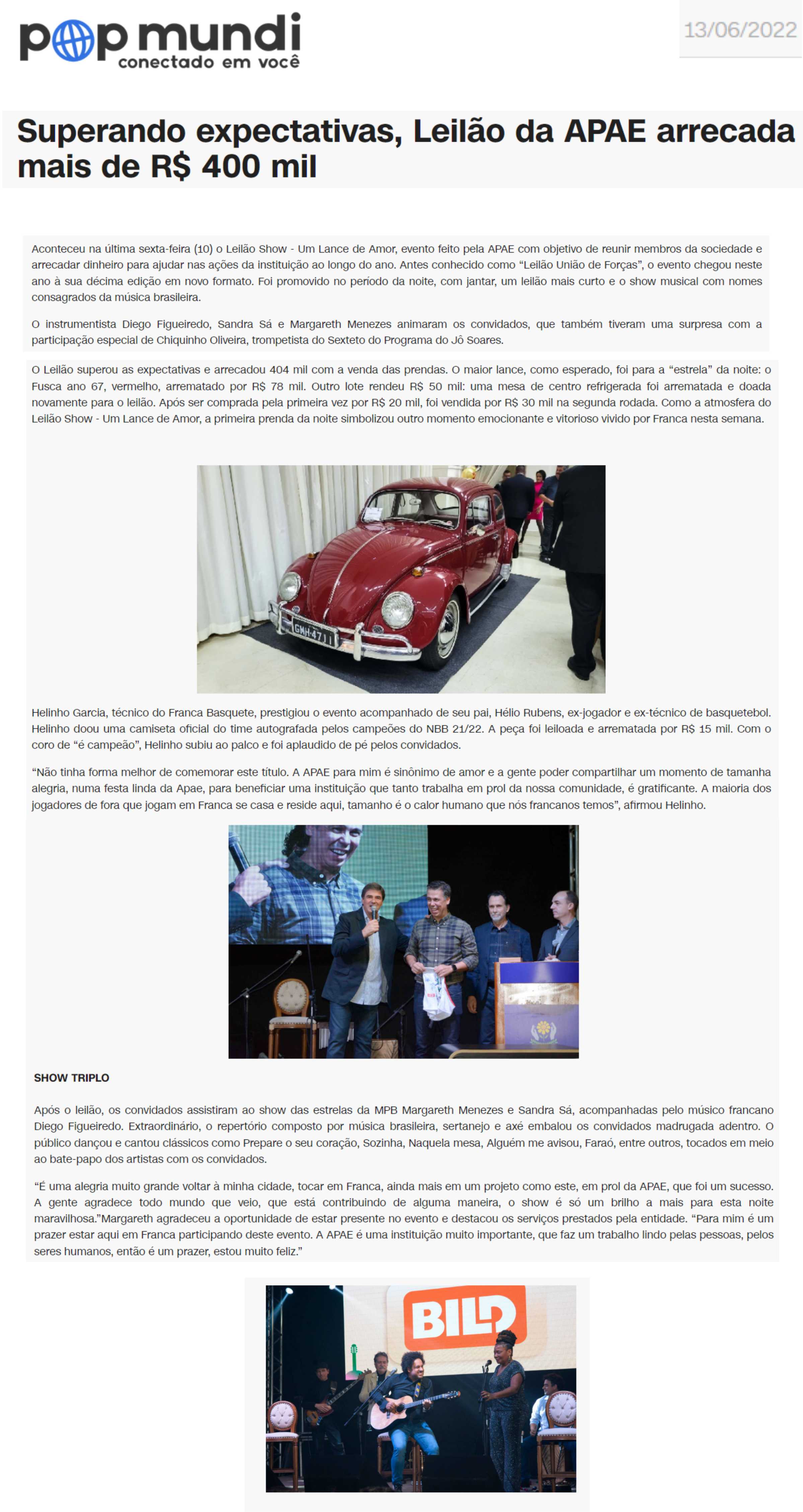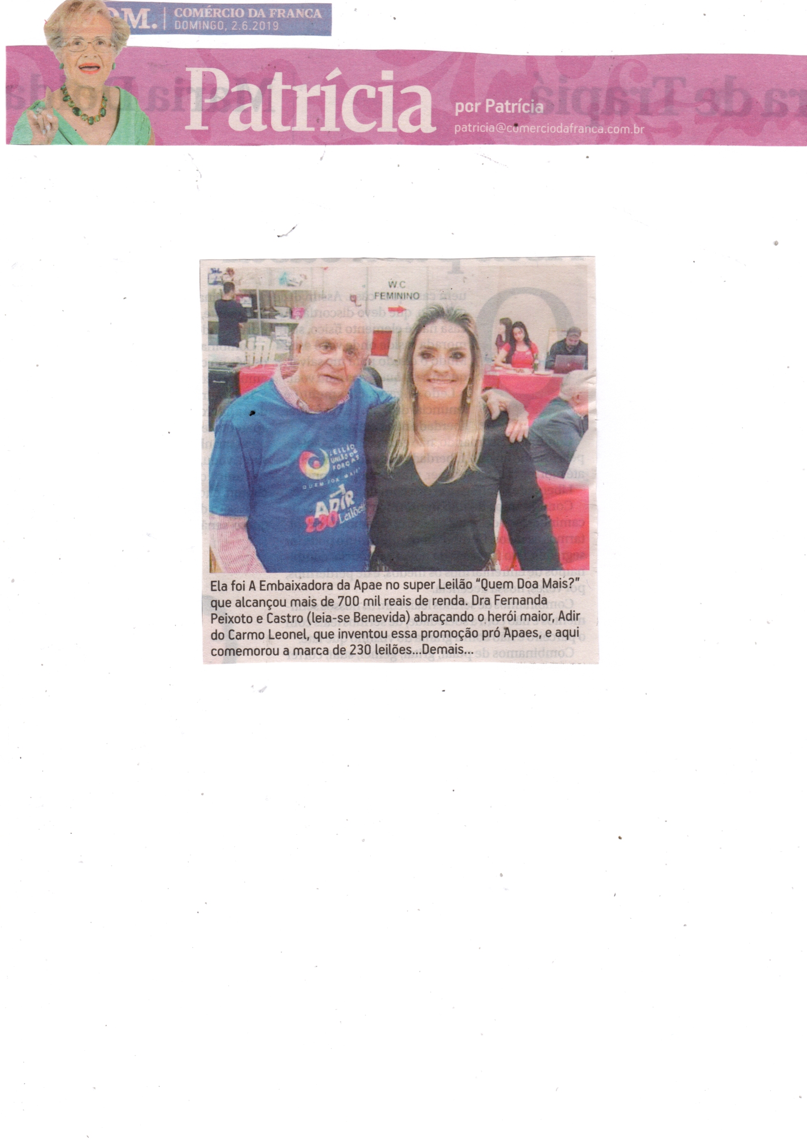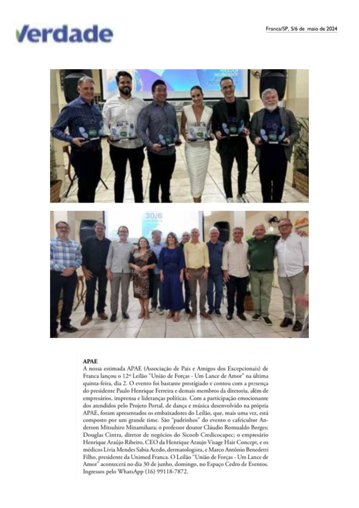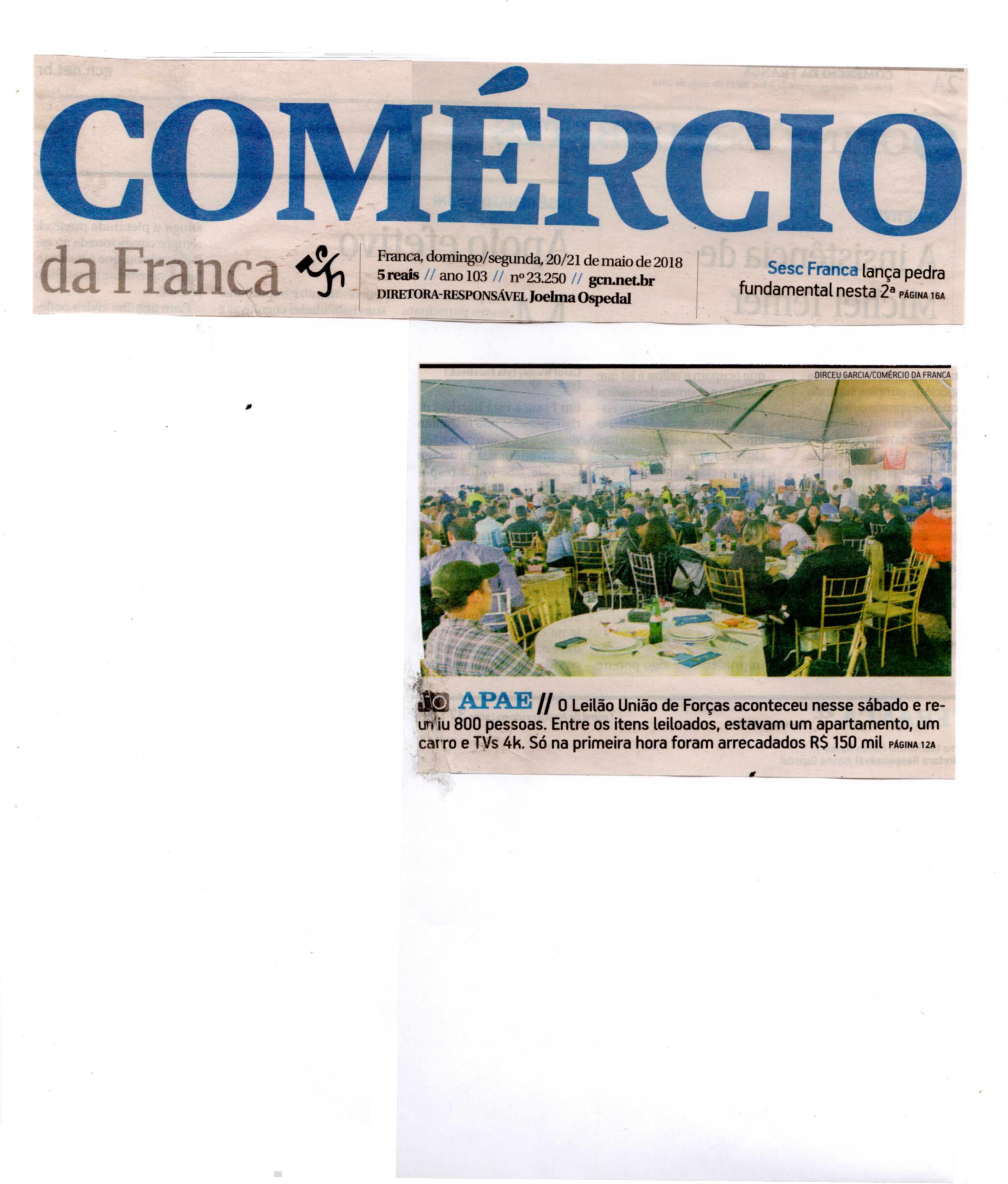 06/08/16 - DIÁRIO DA FRANCA - Apae arrecada R$ 300 mil com Leilão União de Forças - 0608-d...
