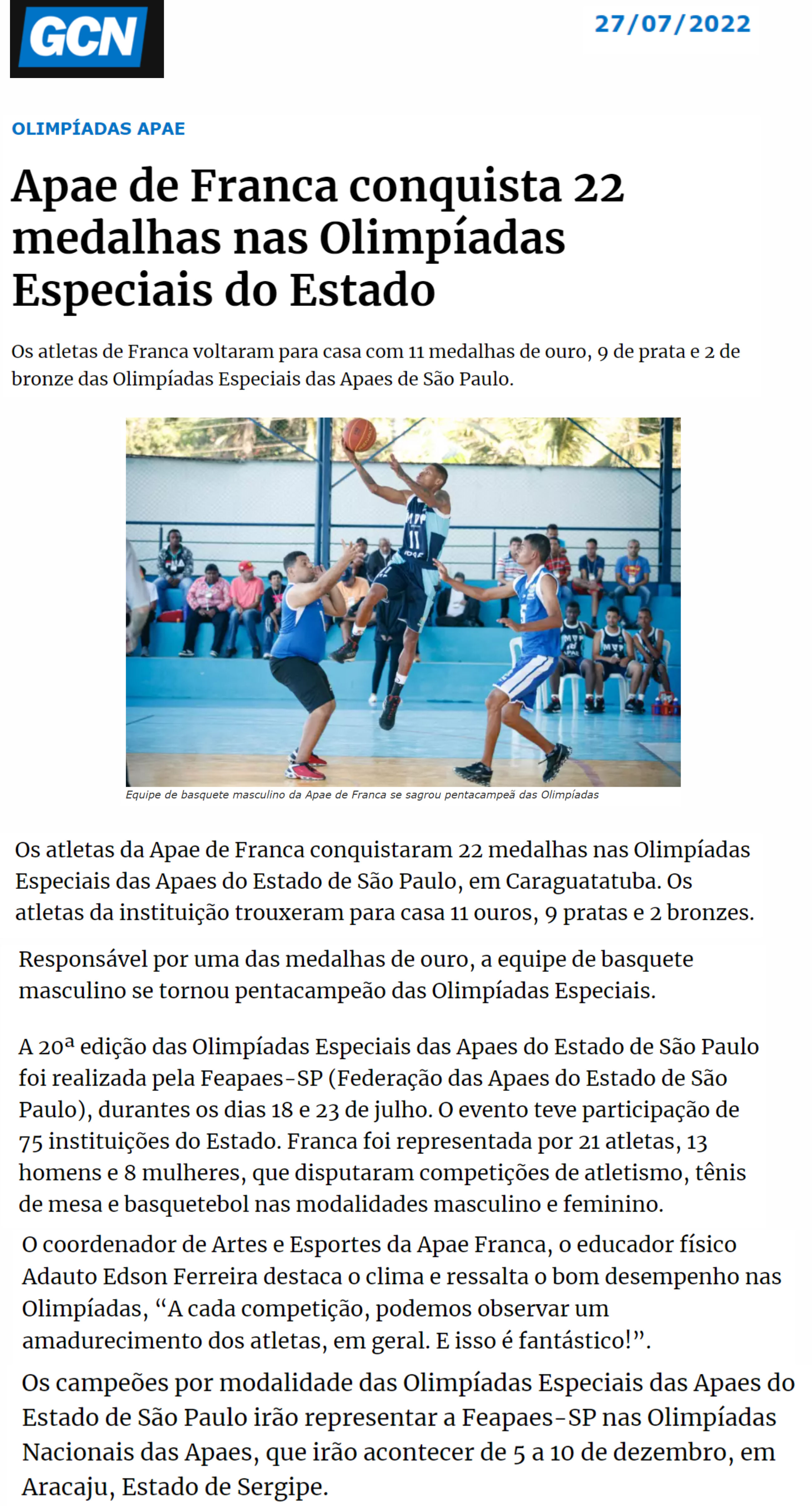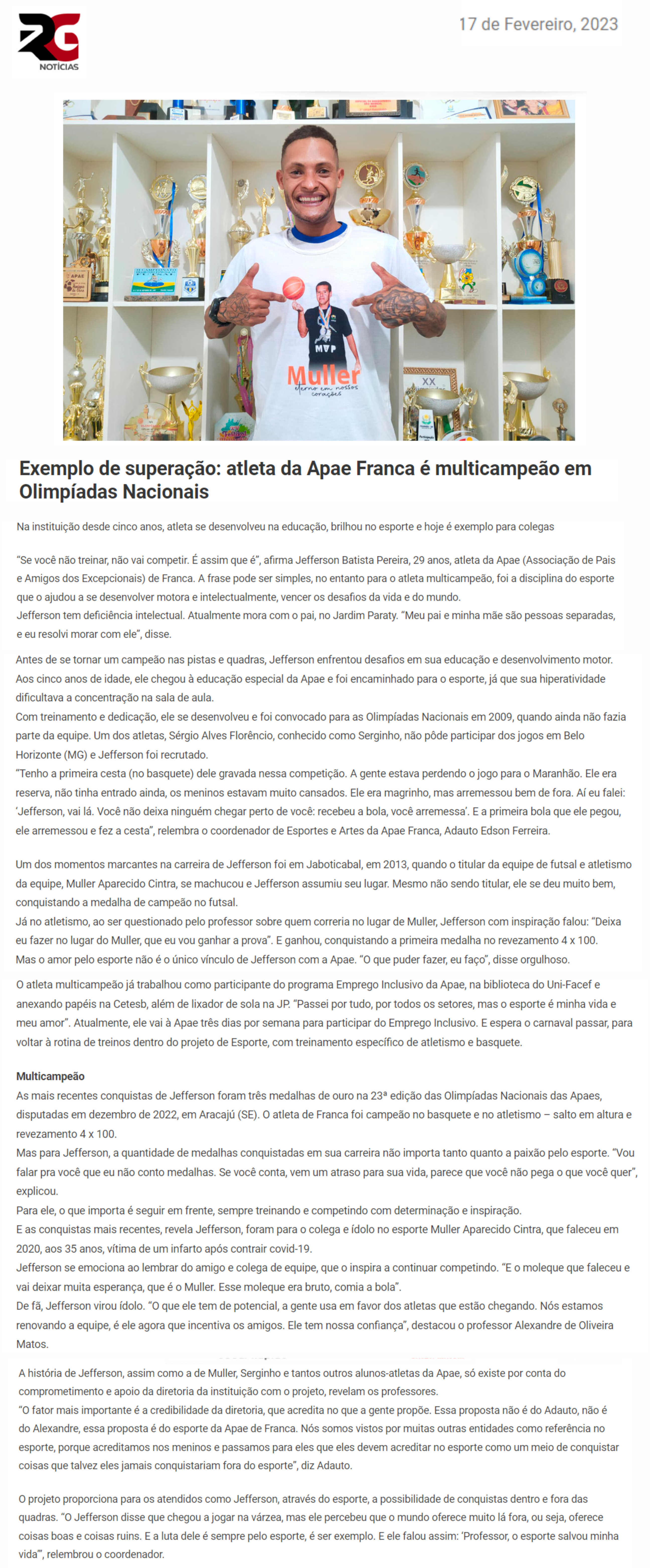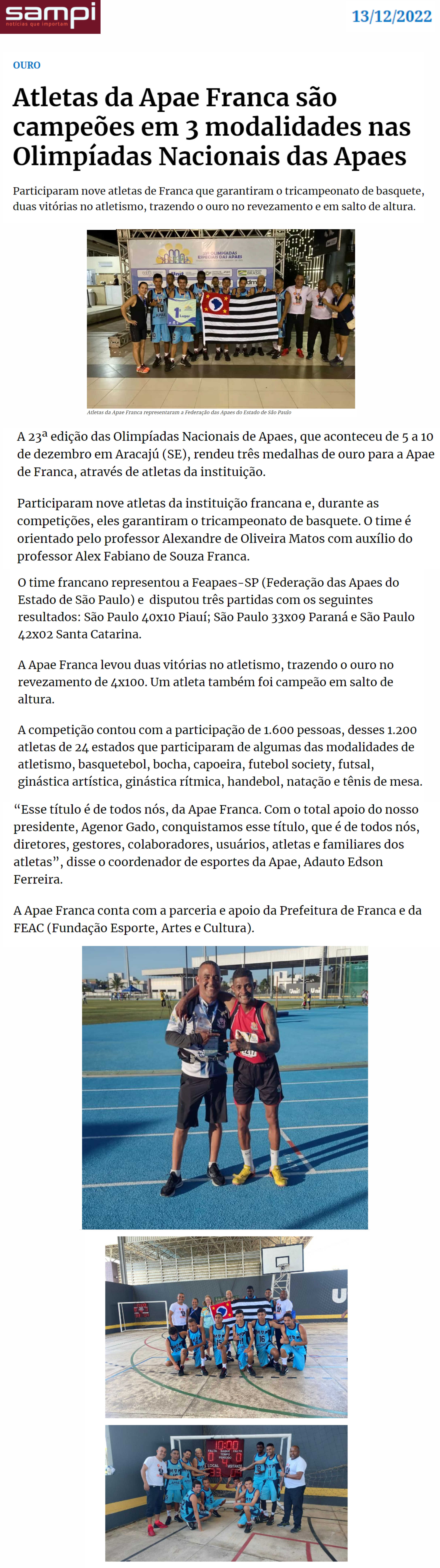 24.06.25 Vi No Site APAE Franca recebe uniformes e equipamentos esportivos para participaç...