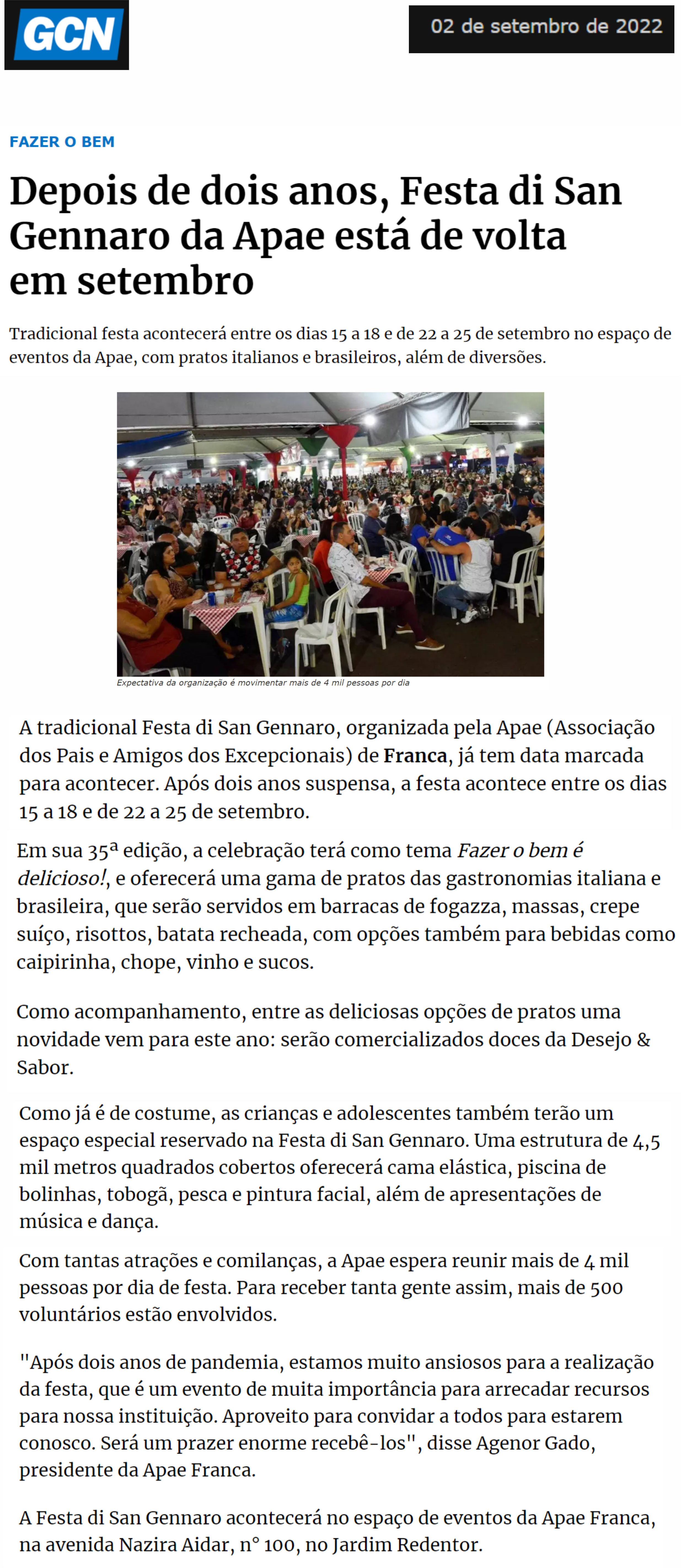 18.09.2025 GCN Sampi Franca Sabor e solidariedade San Gennaro da APAE começa nesta 5ª - 2...