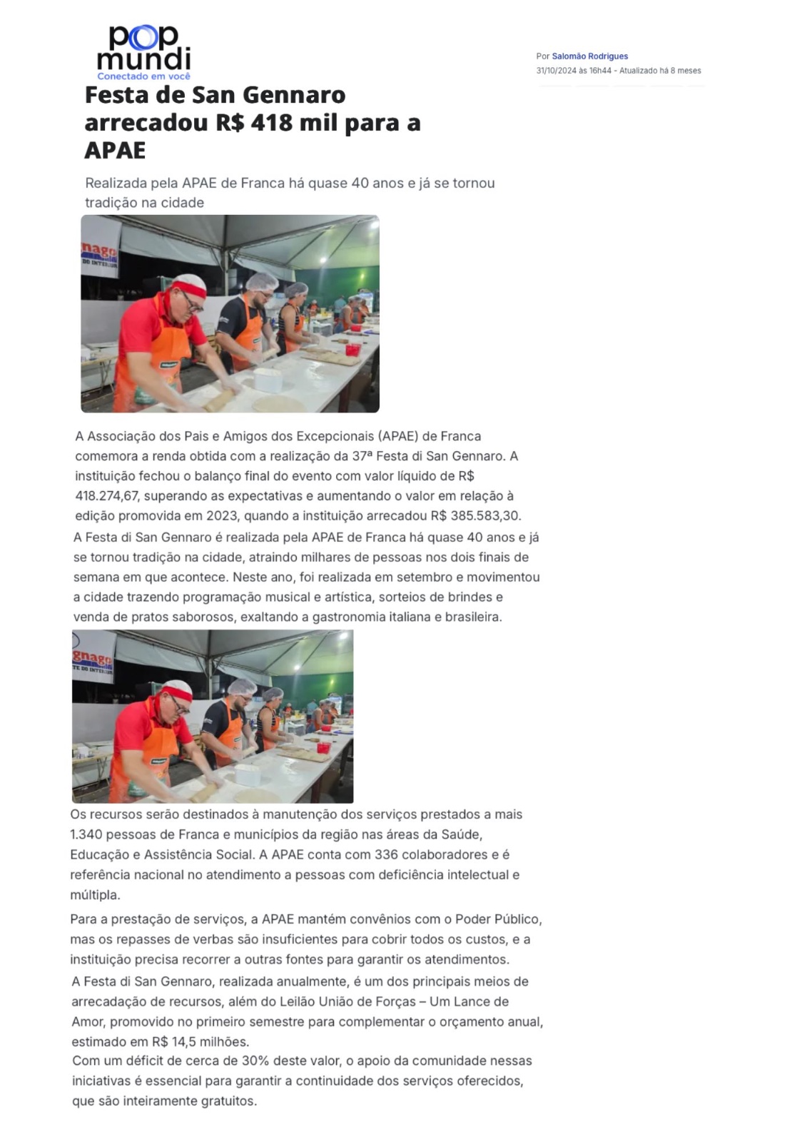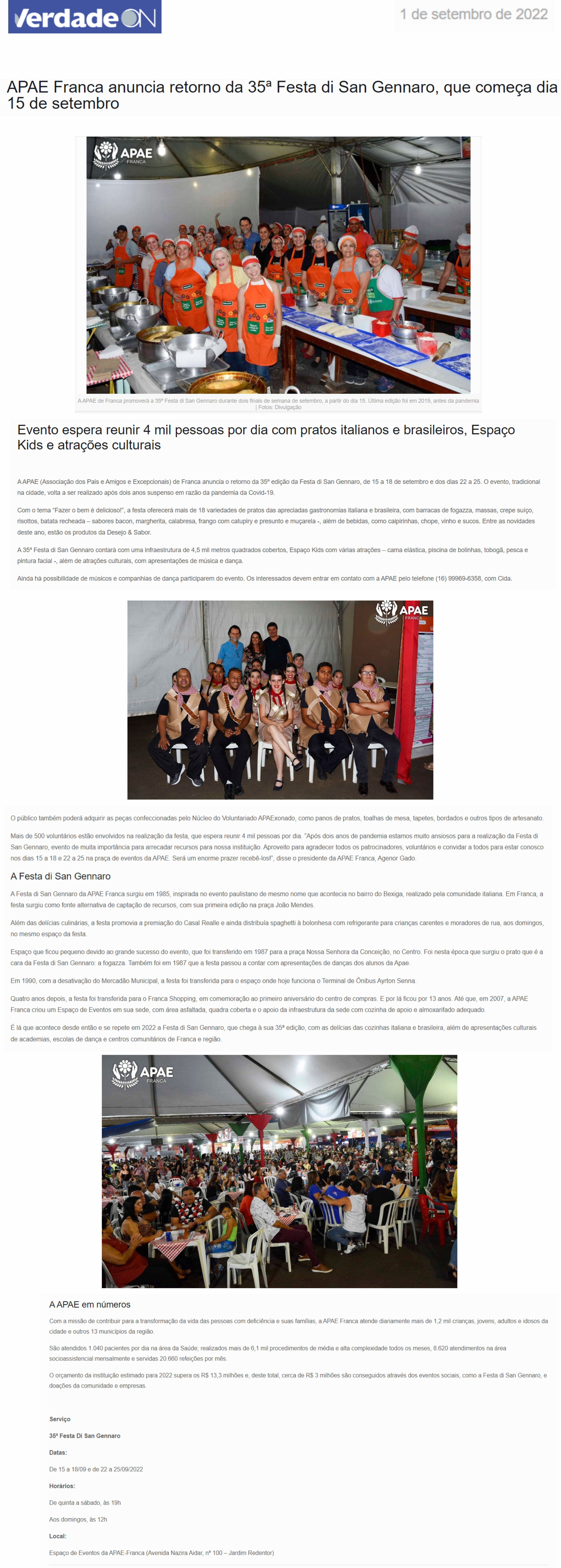 20.08.25 portal fnt APAE Franca realiza Festa di San Gennaro em setembro com novidades e s...