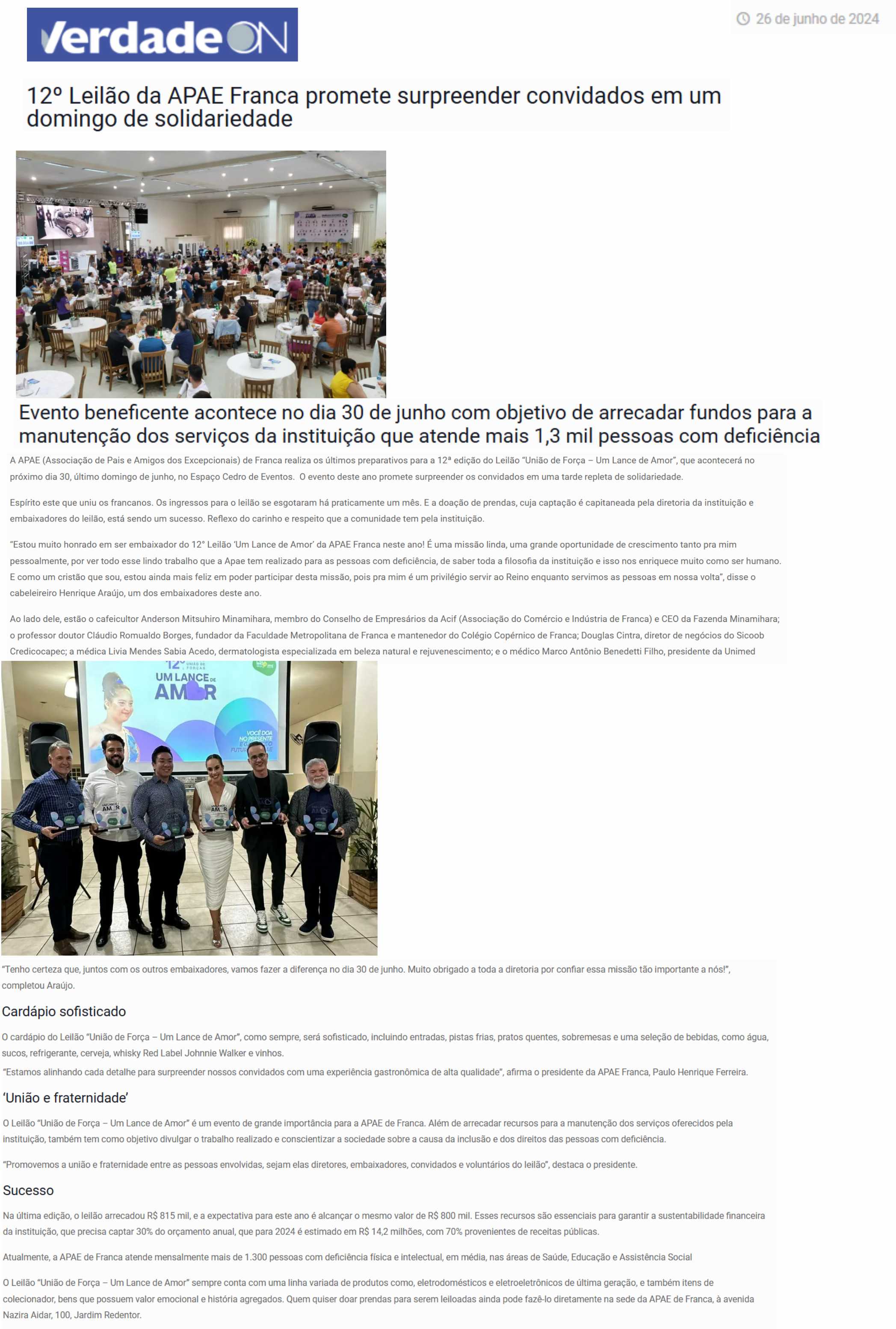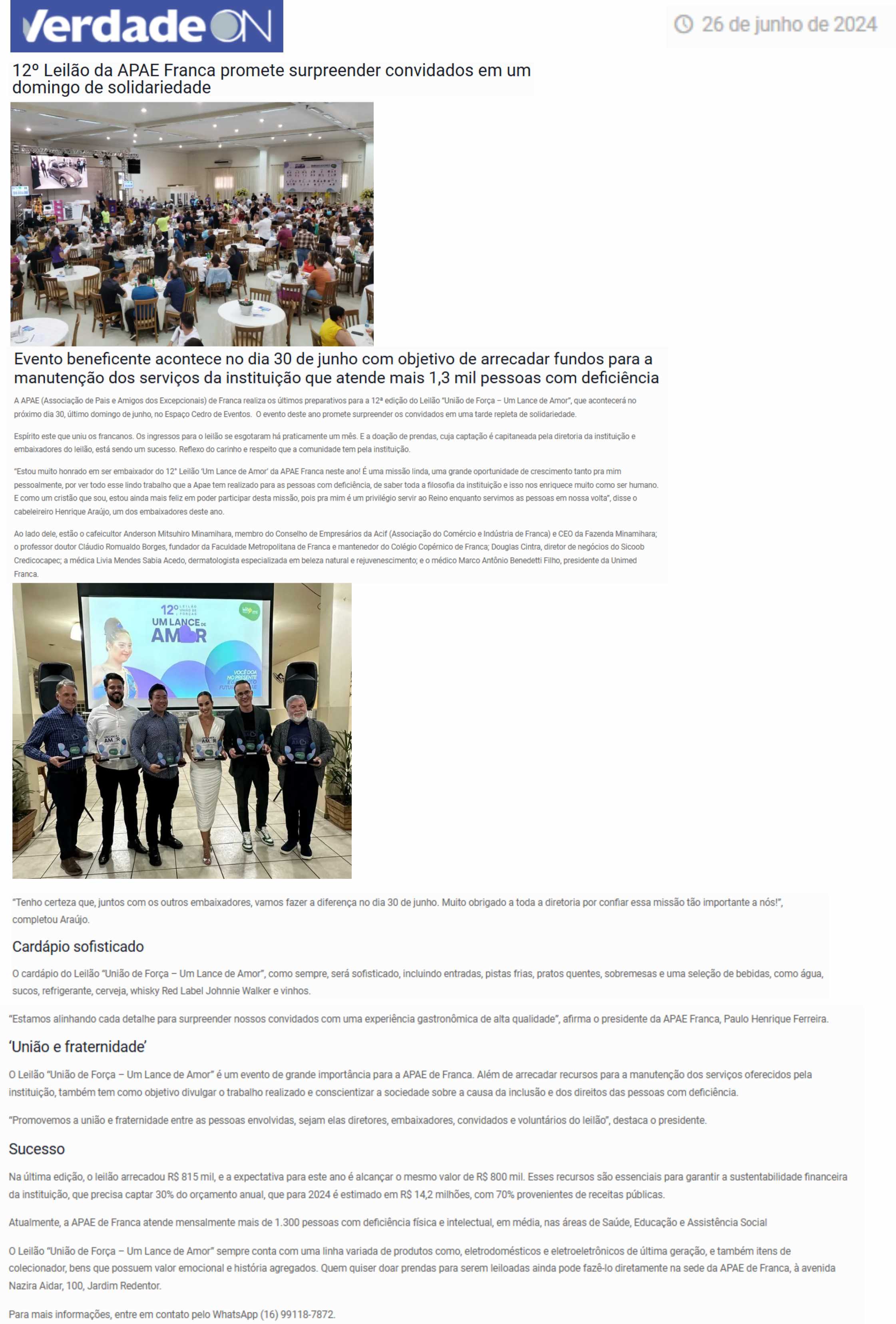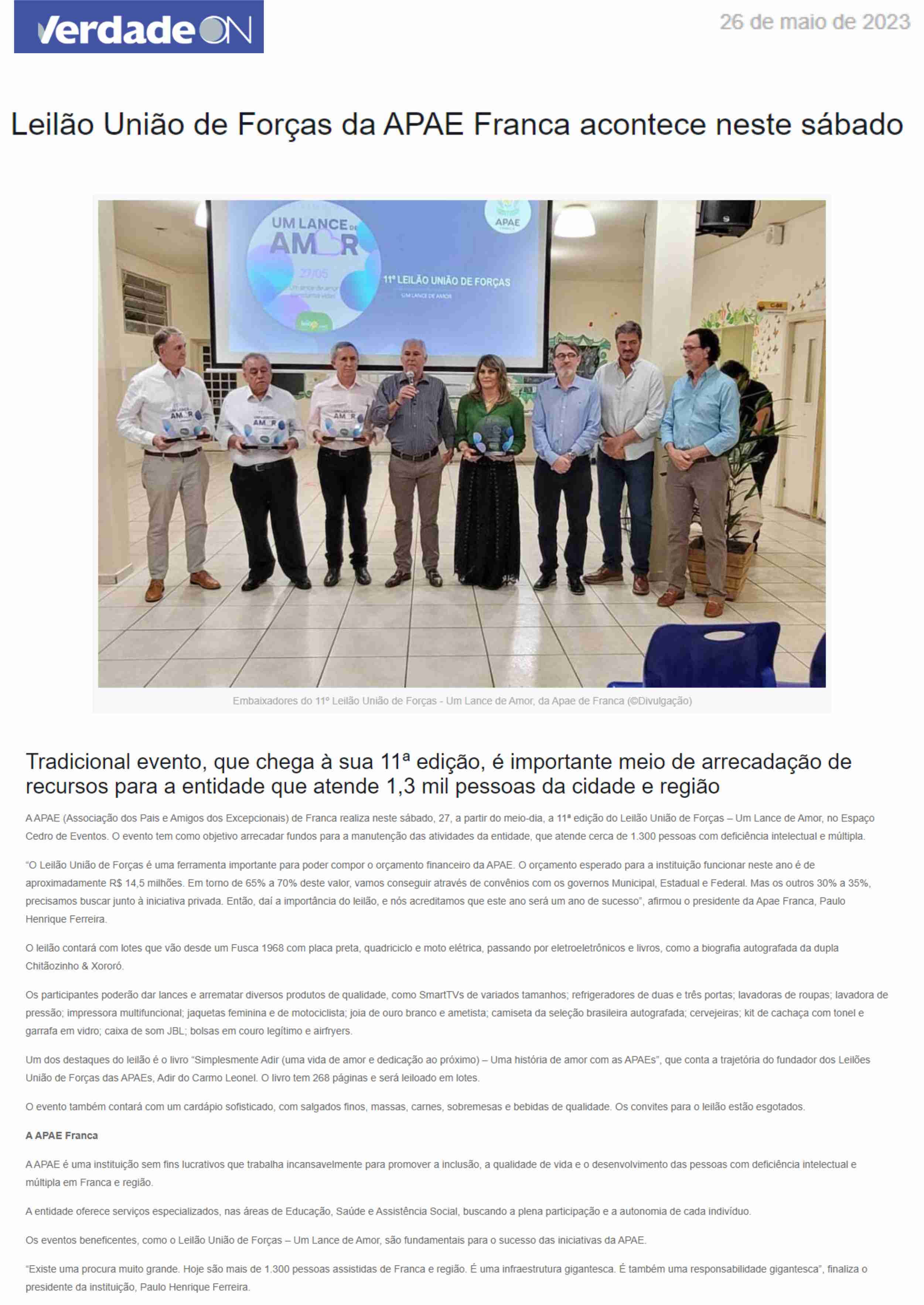28.05.25 VNS APAE de Franca arrecada mais de R$ 1,1 milhão no 13º Leilão ‘Um Lance de Amor...
