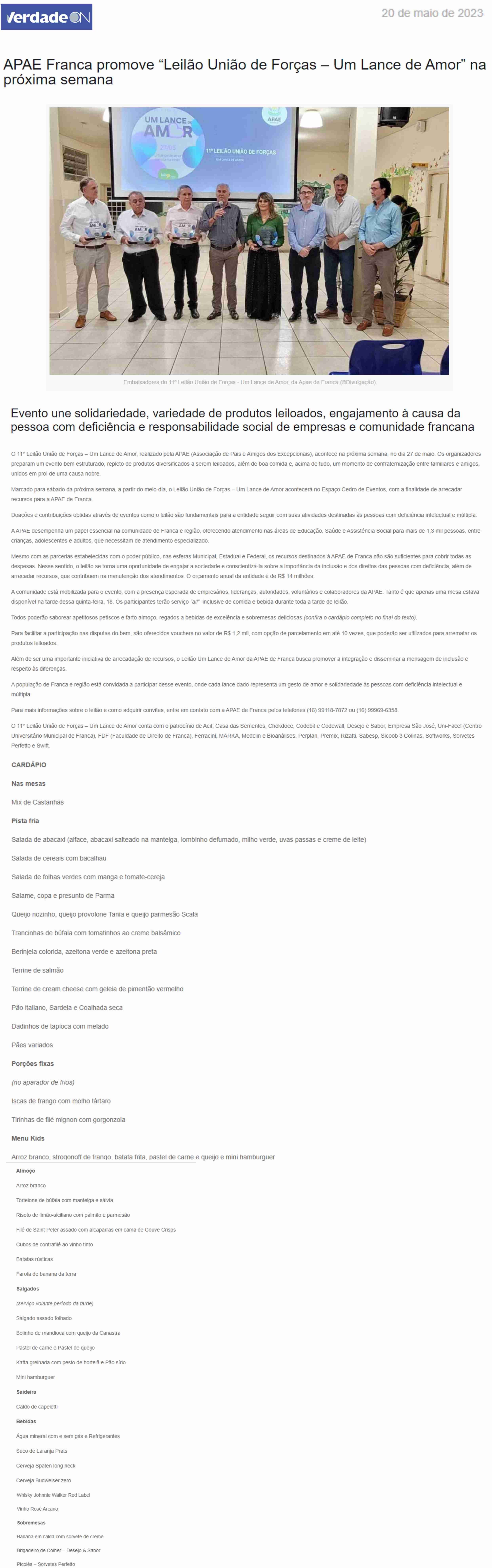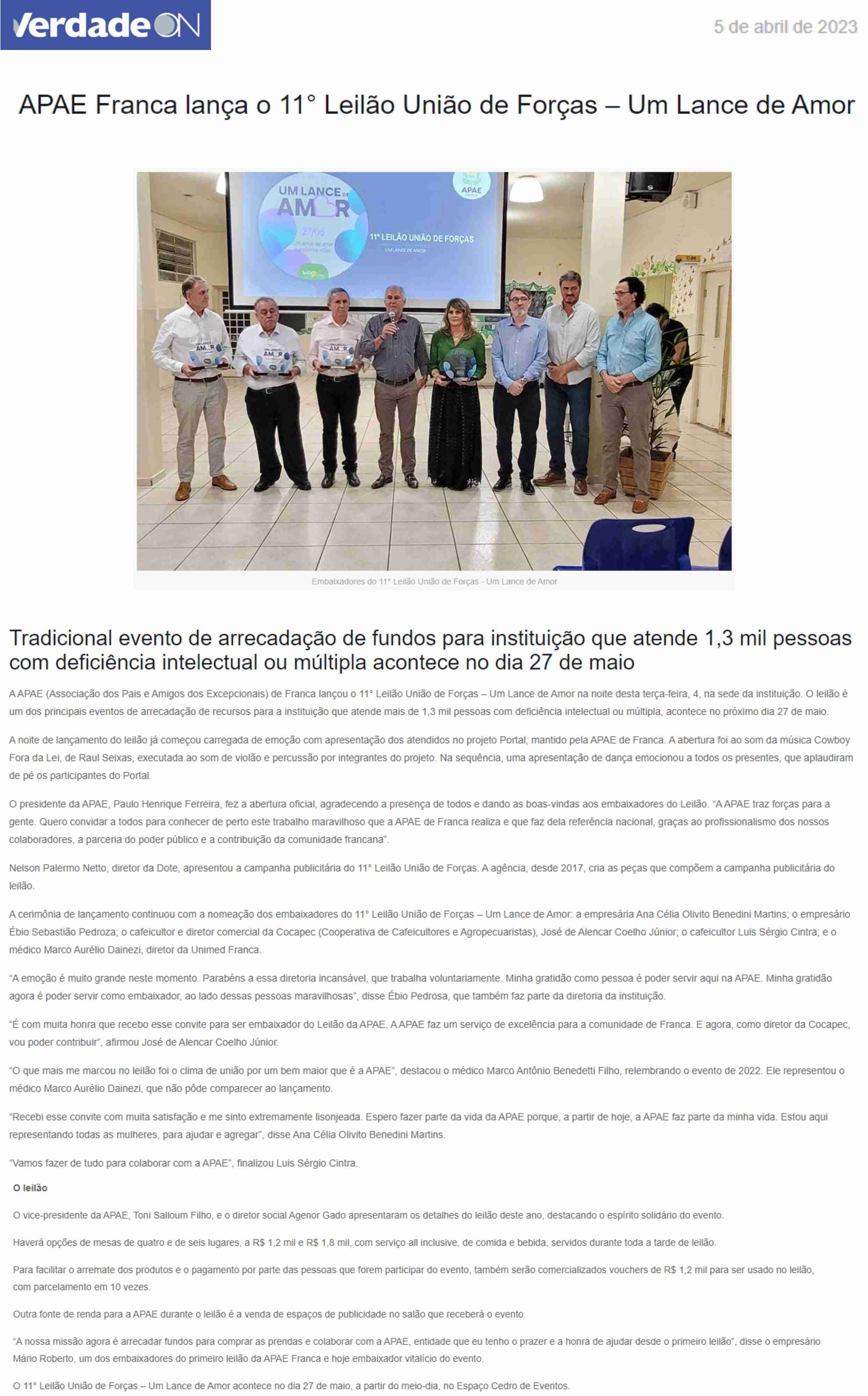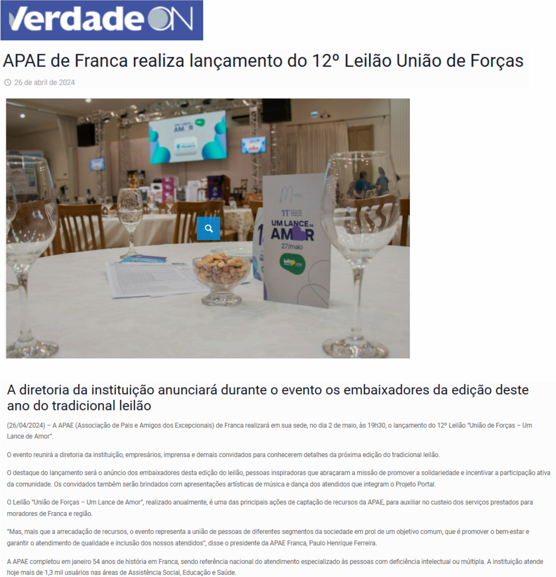 28.05.25 VNS APAE de Franca arrecada mais de R$ 1,1 milhão no 13º Leilão ‘Um Lance de Amor...