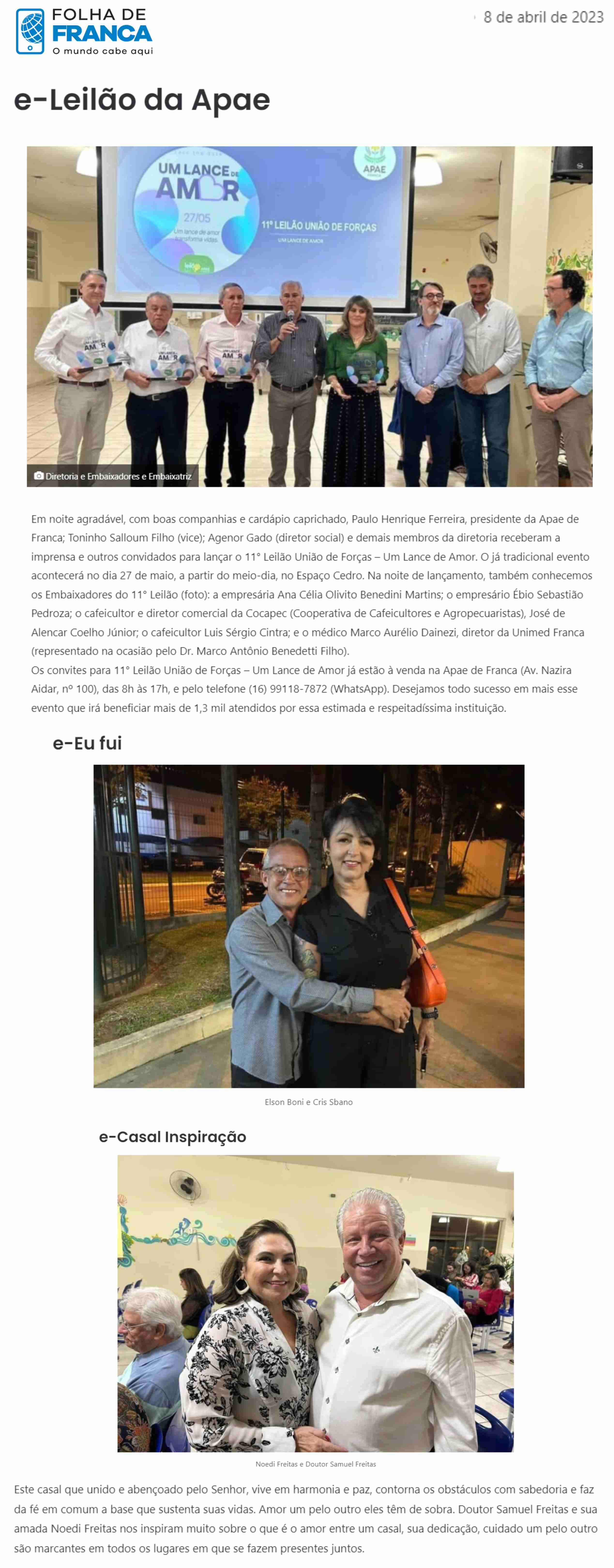 24.05.25 Notícias de Franca Notícias de Franca Leilão Um Lance de Amor é neste sábado e de...
