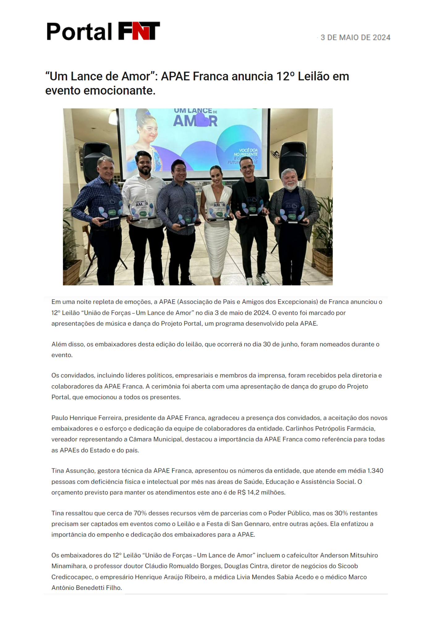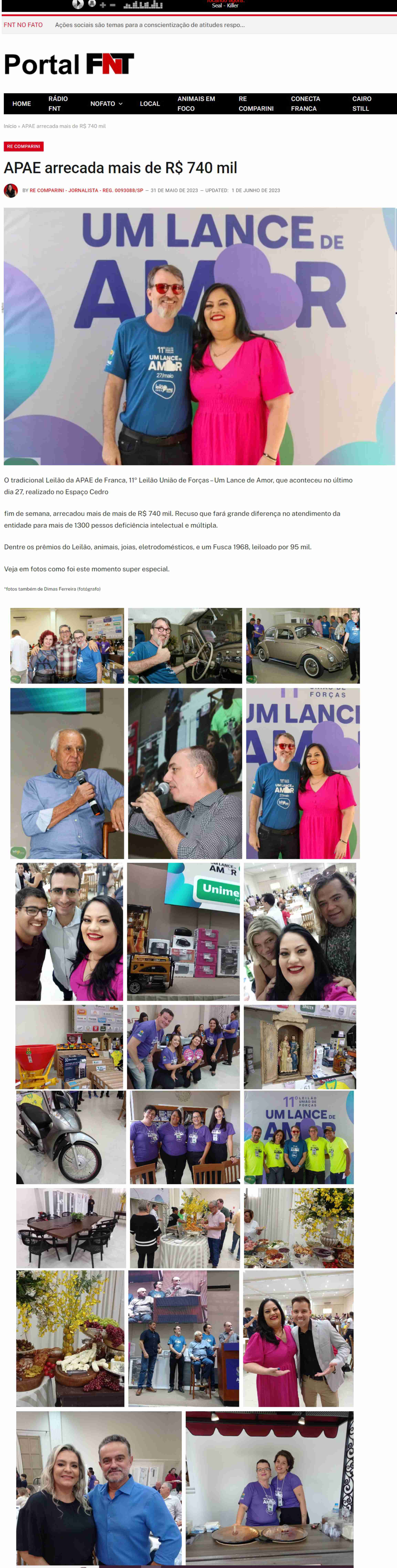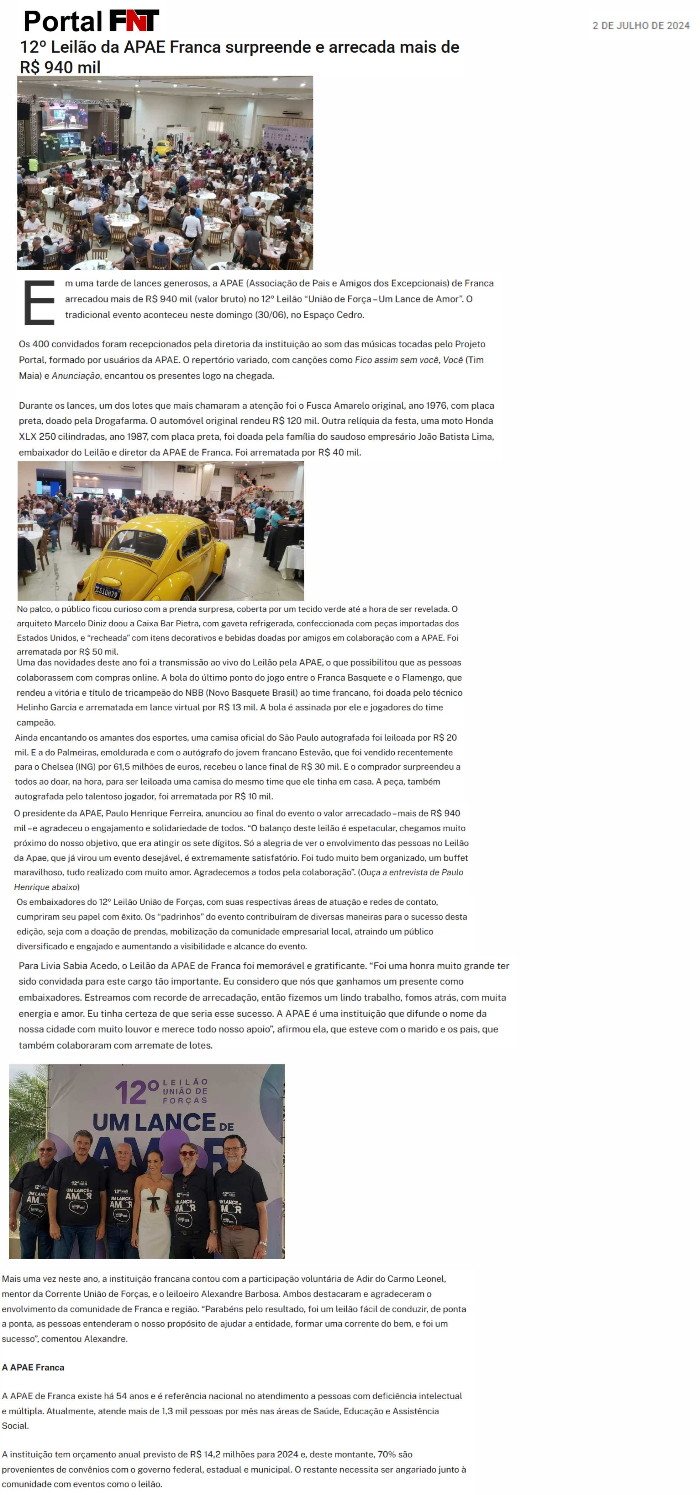 28.05.25 Portal FNT APAE de Franca arrecada mais de R$ 1,1 milhão no 13º Leilão ‘Um Lance...