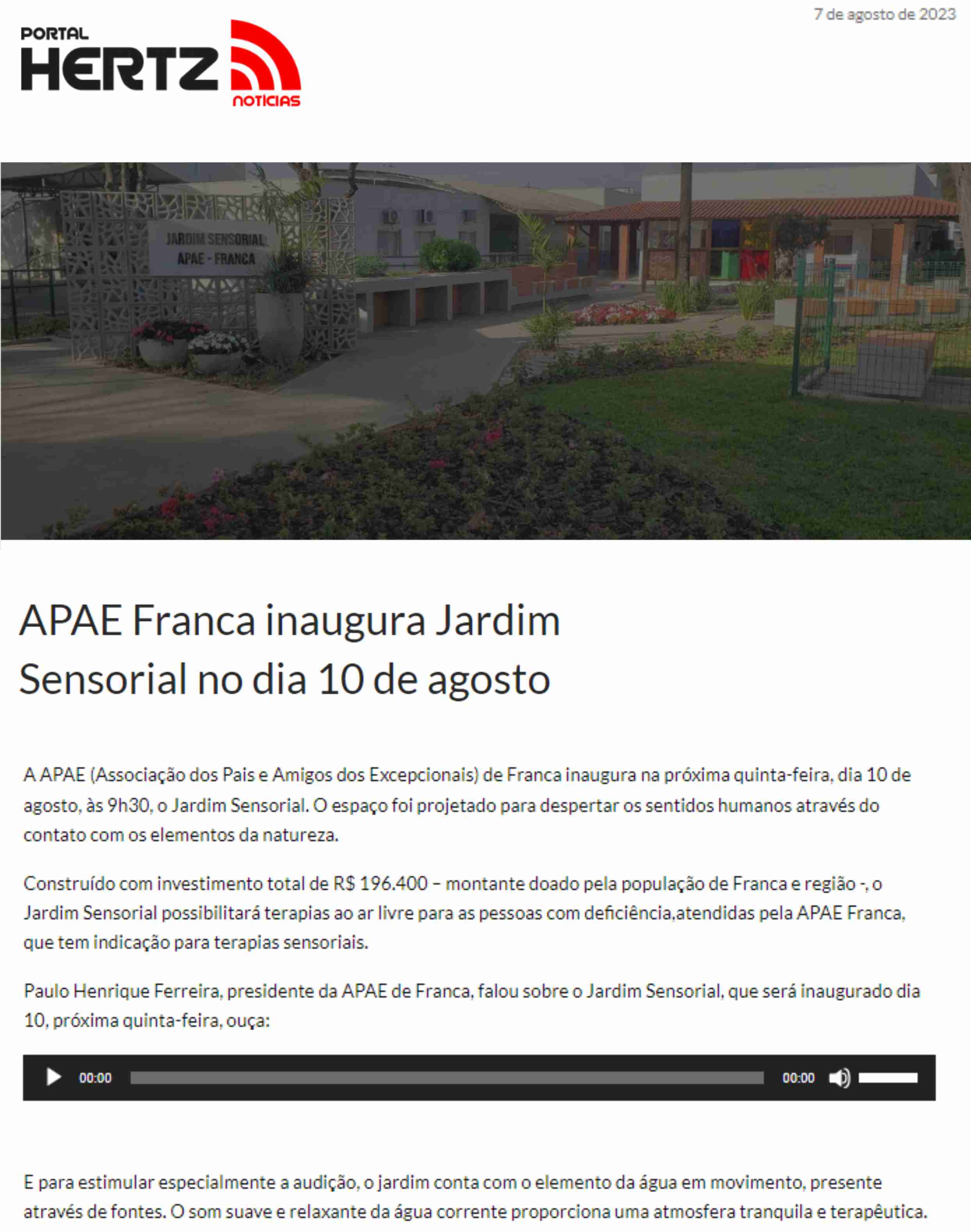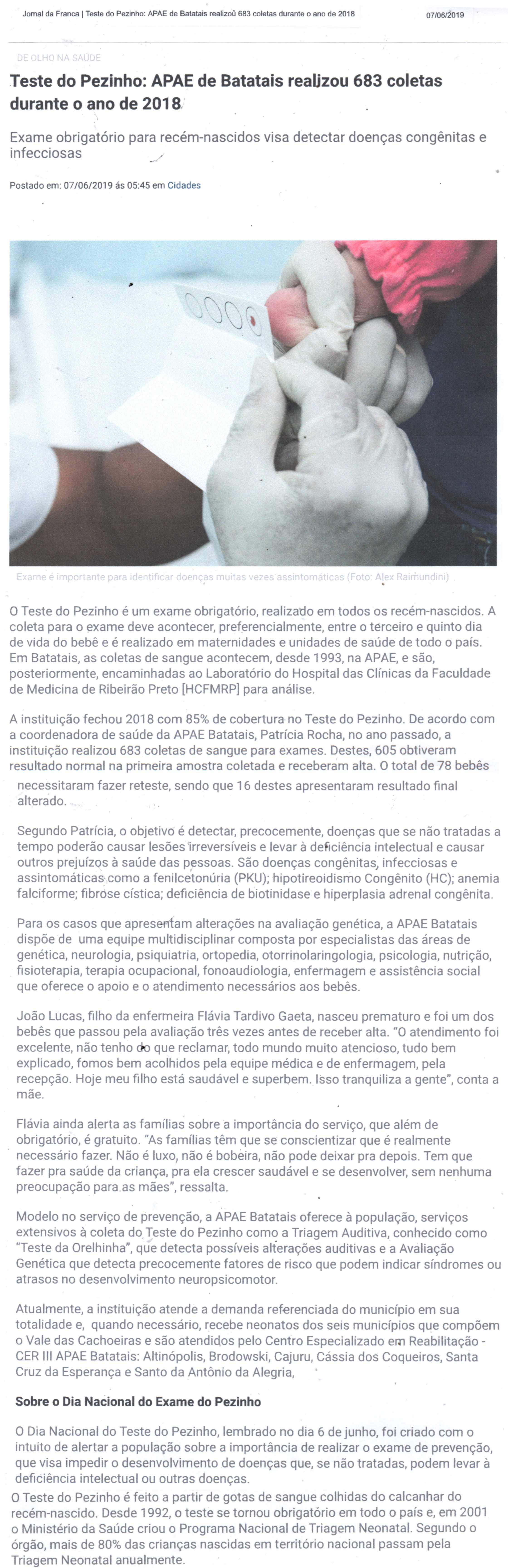 23.07.25 Vi no Site APAE Franca amplia cuidados na primeira infância com projeto de preven...