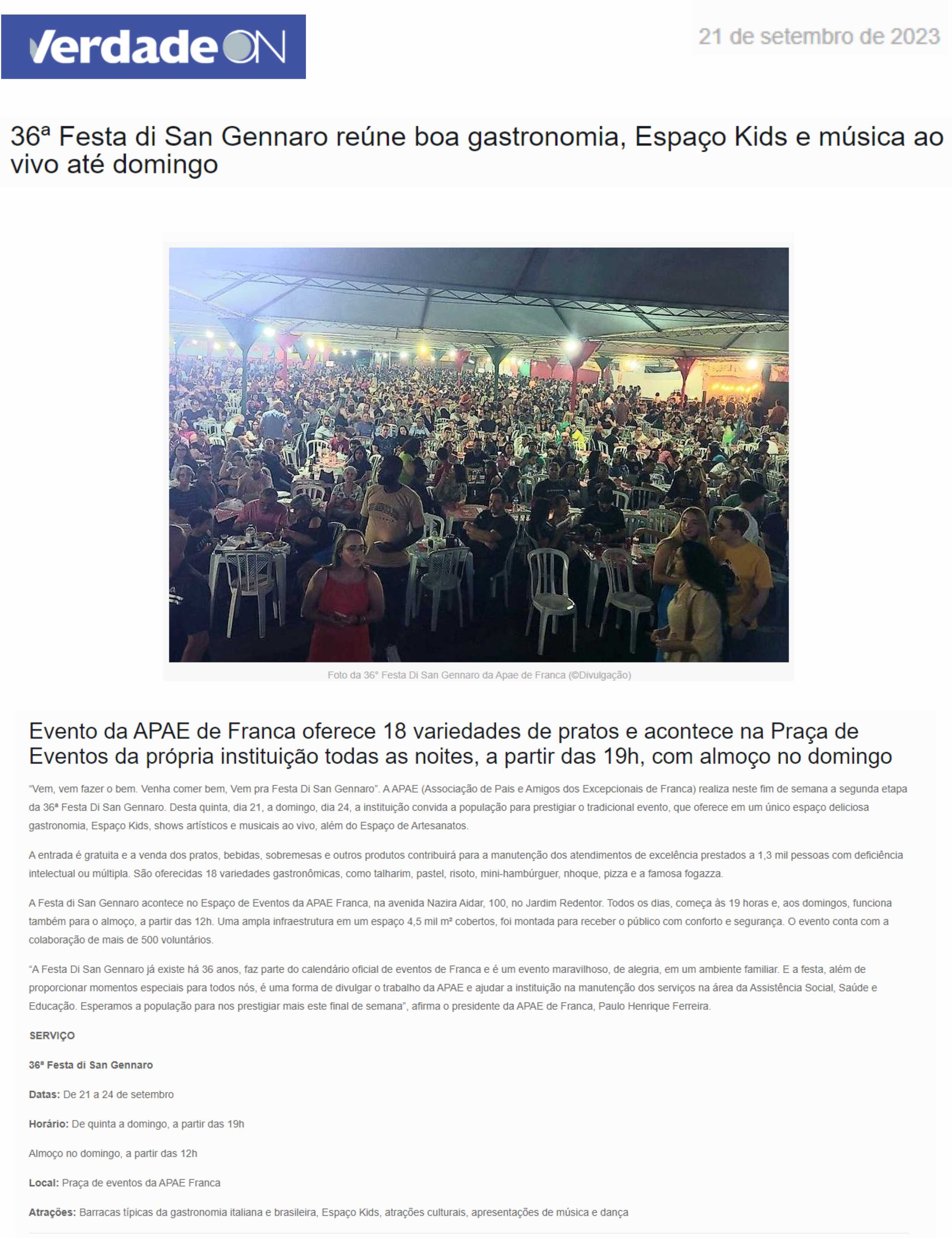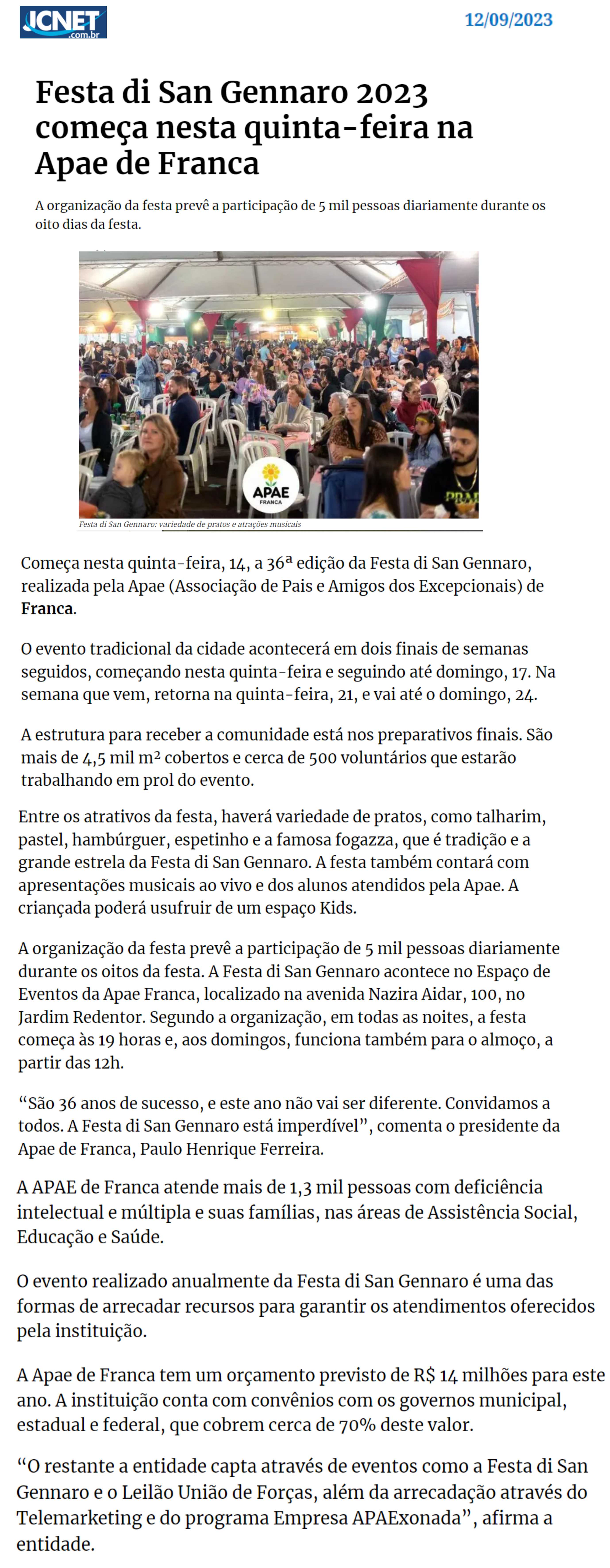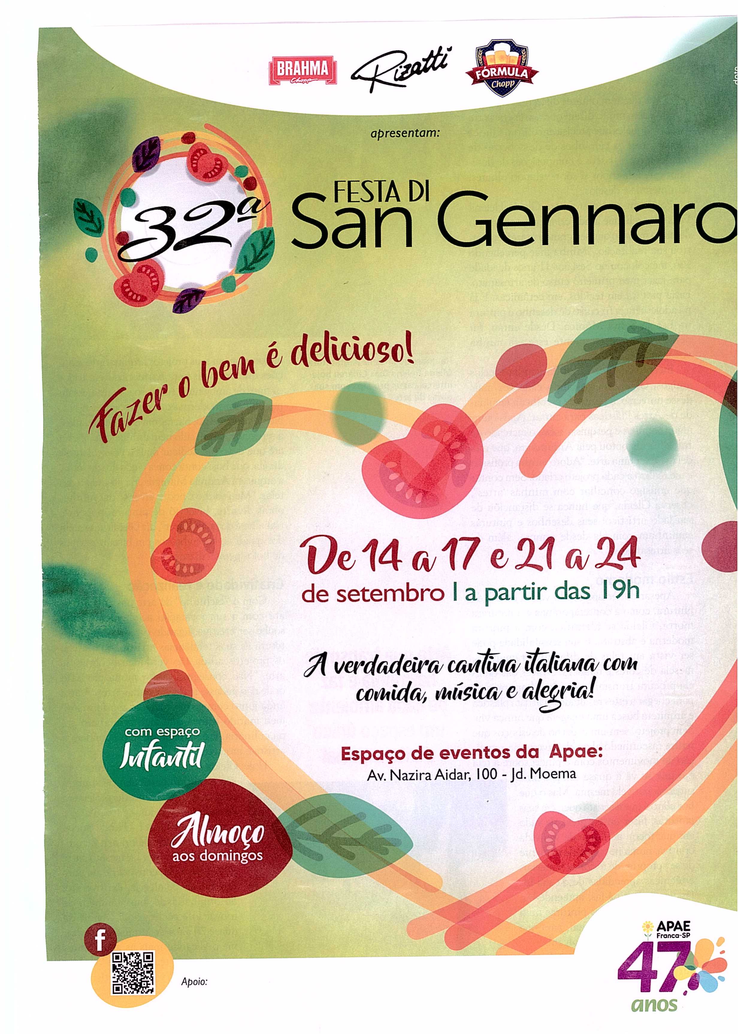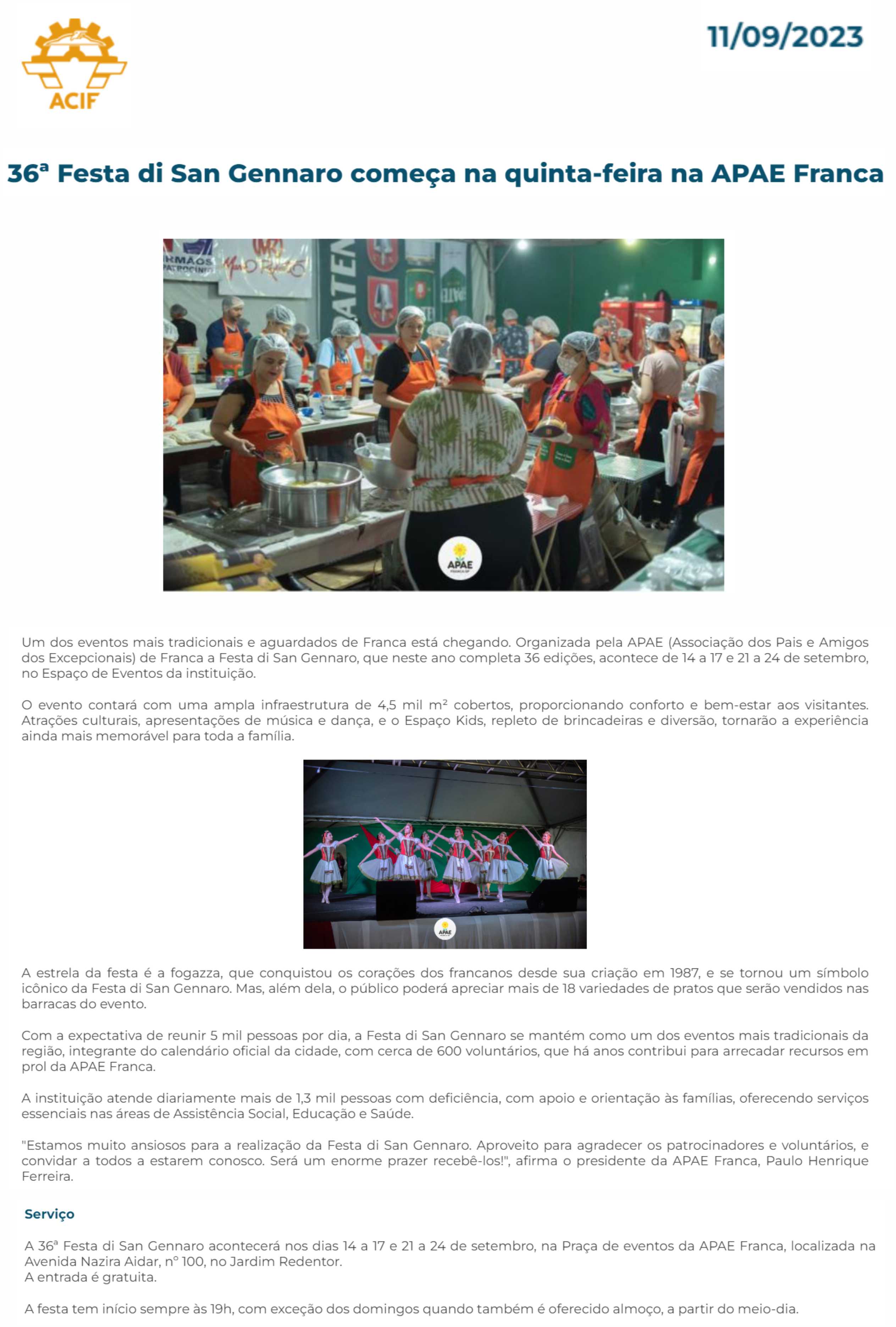 20.09.2025 ACIF Franca APAE Franca realiza Festa Di San Gennaro em setembro com novidades...