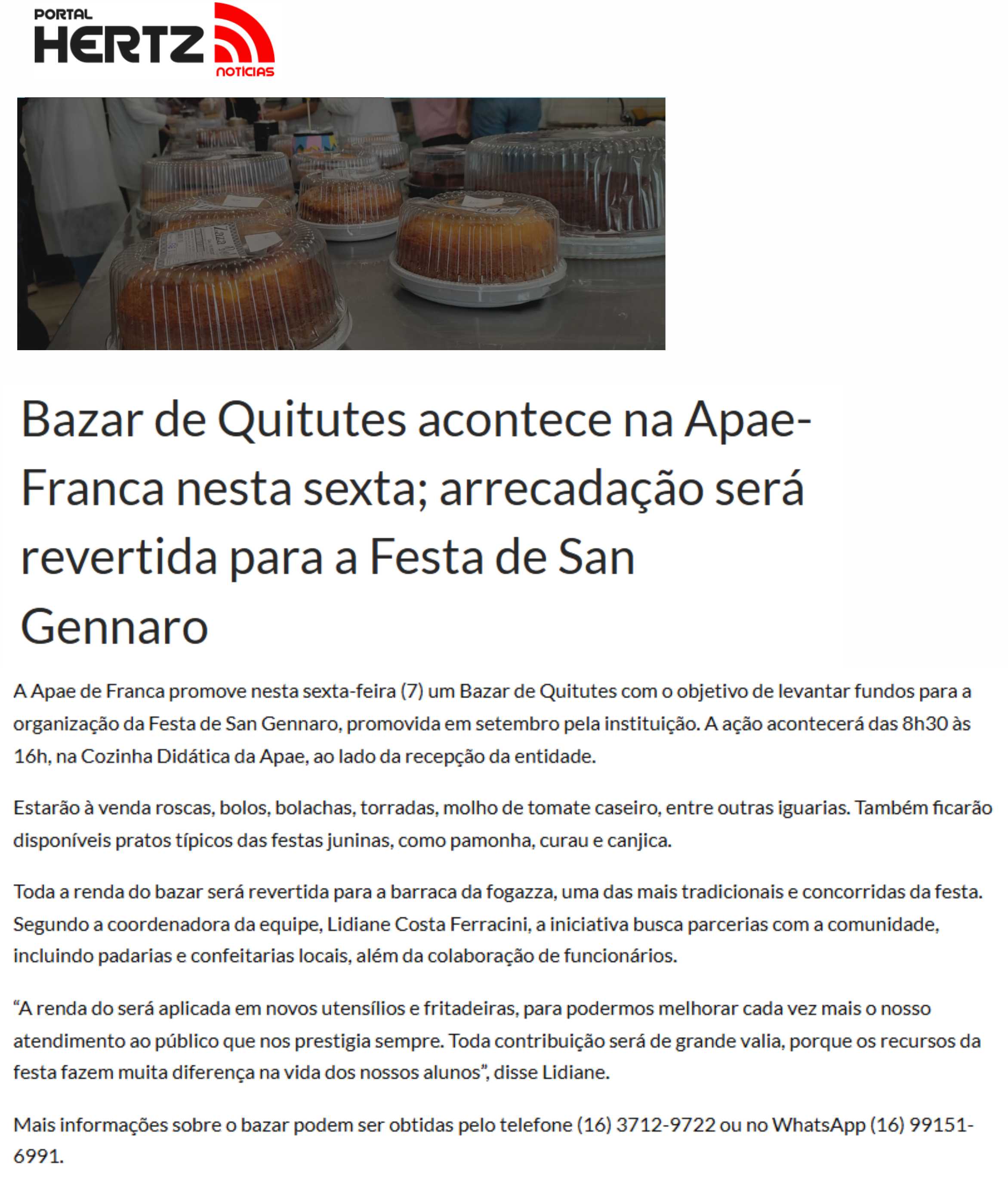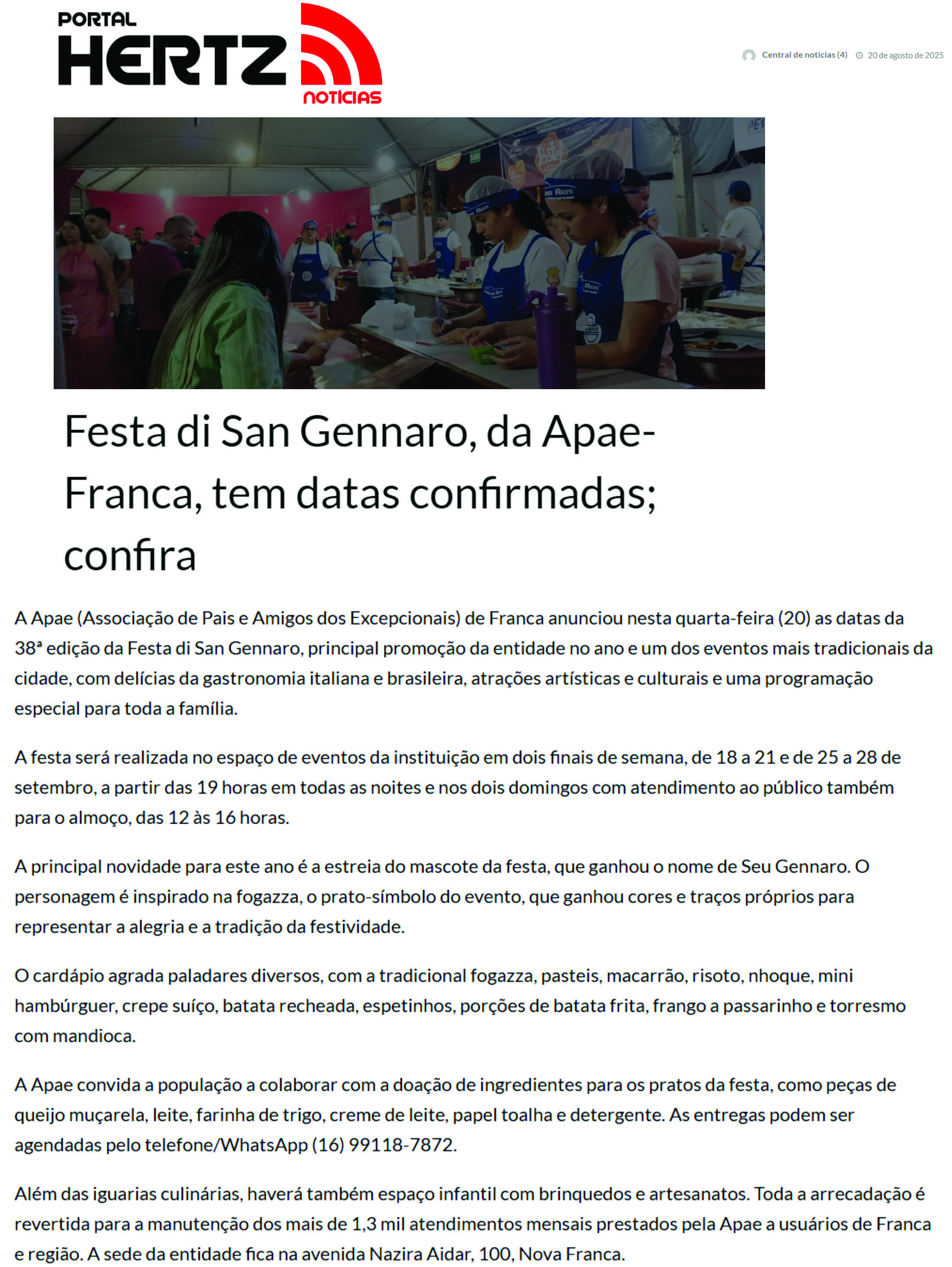 20.09.2025 Hertz Notícias APAE Franca organiza mais uma edição da Festa Di San Gennaro nes...