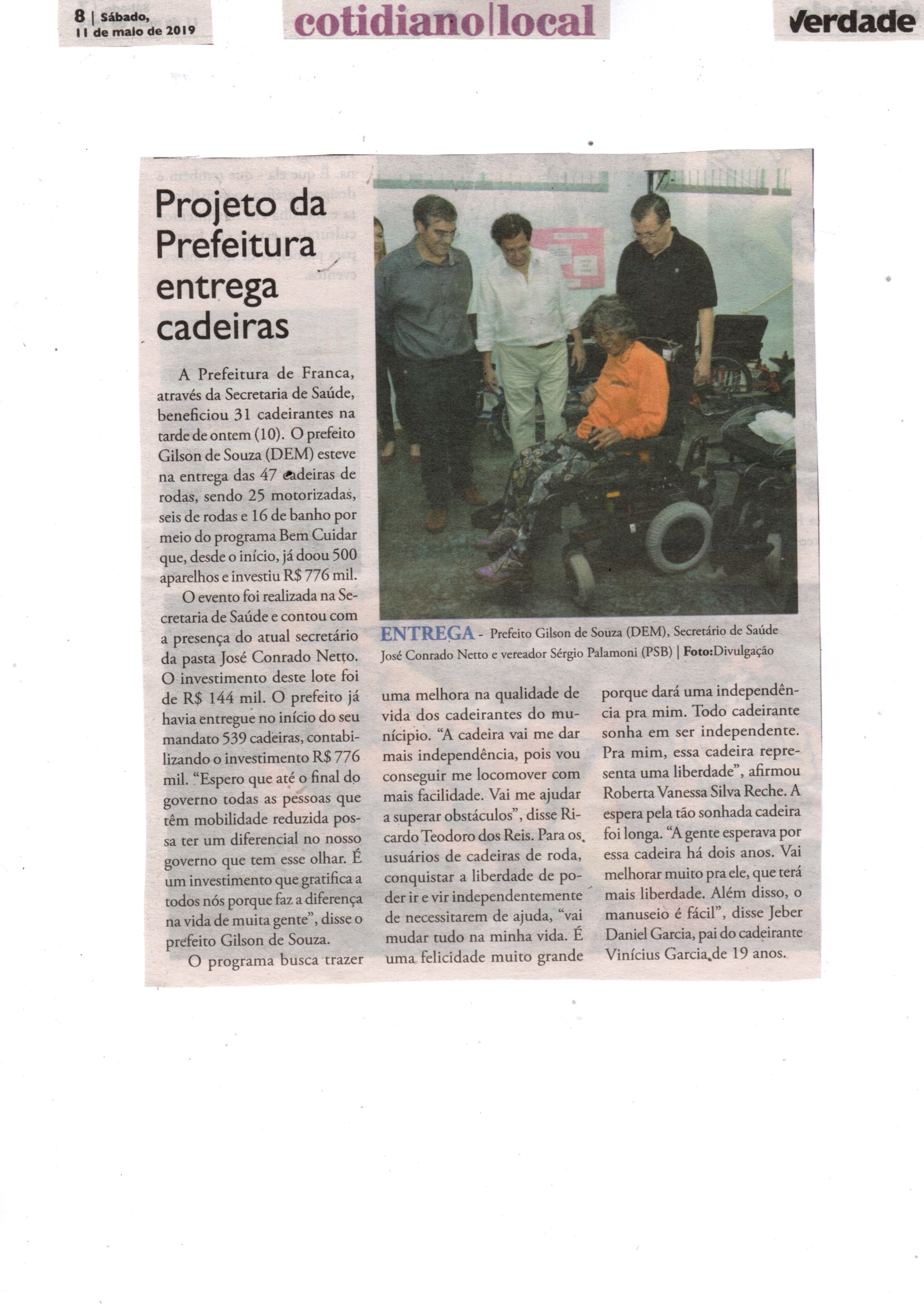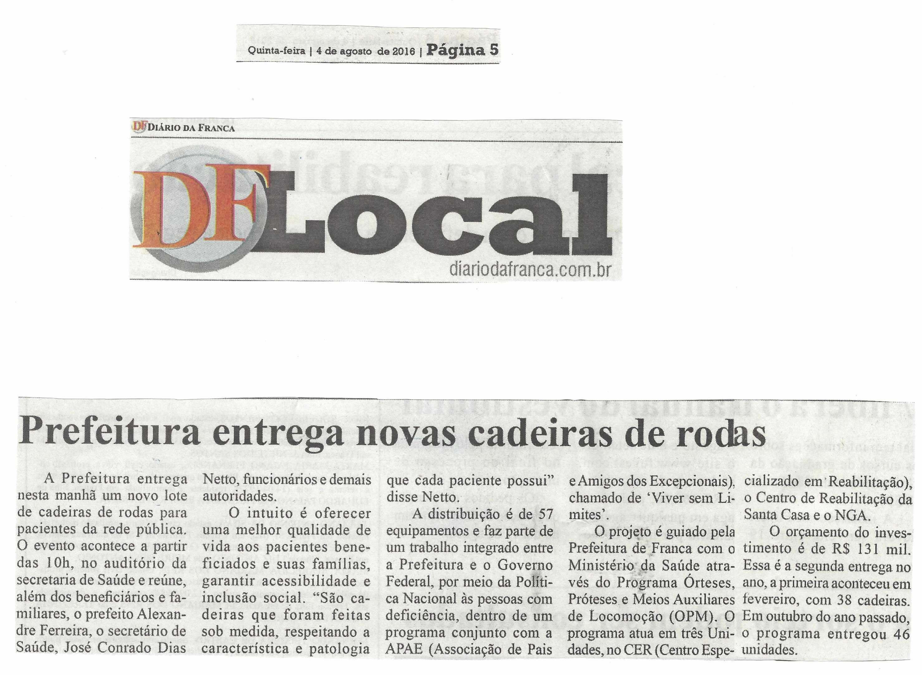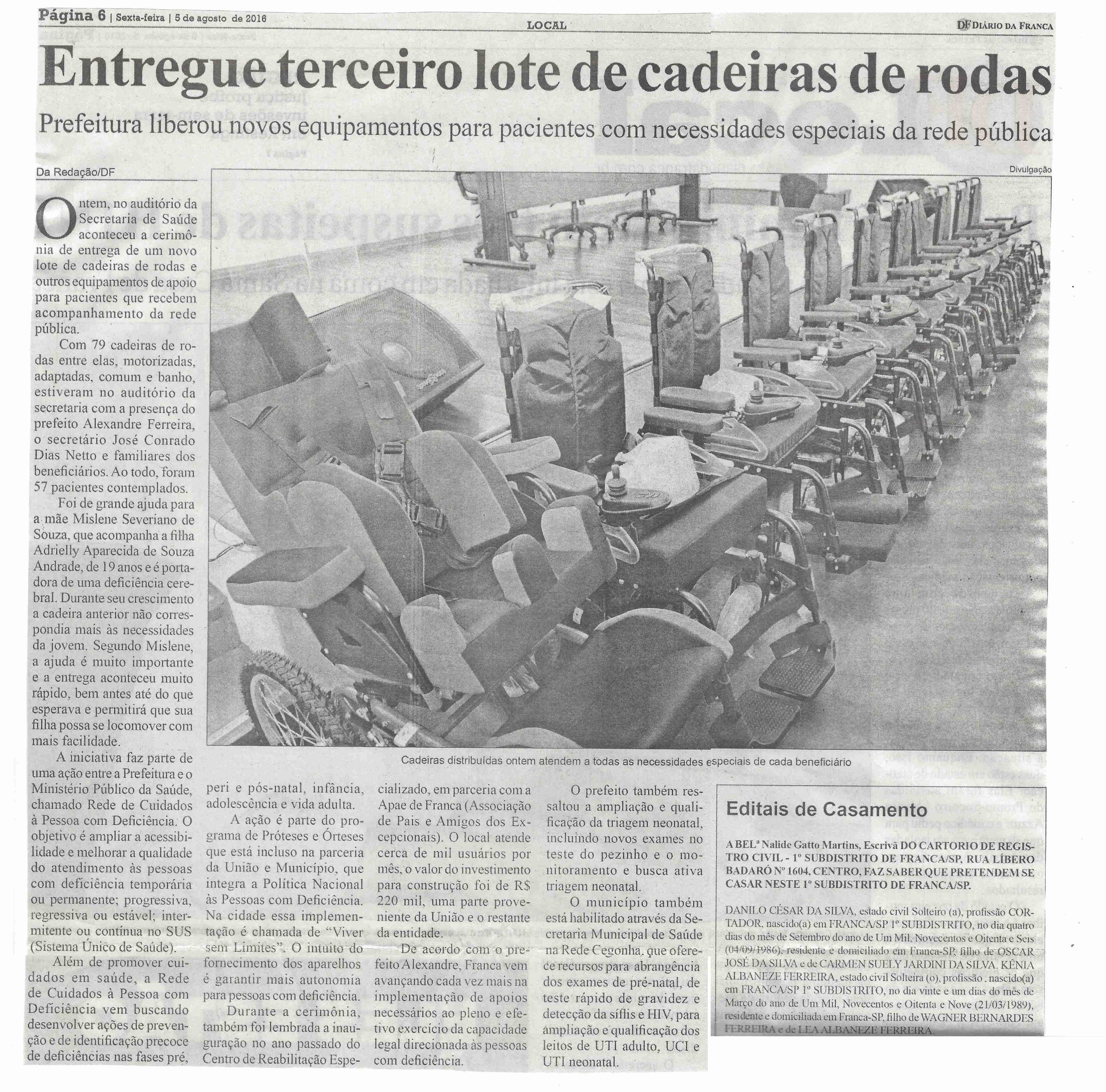 05/08/16 - DIÁRIO DA FRANCA - Entregue terceiro lote de cadeiras de rodas - 0508-diario-da...