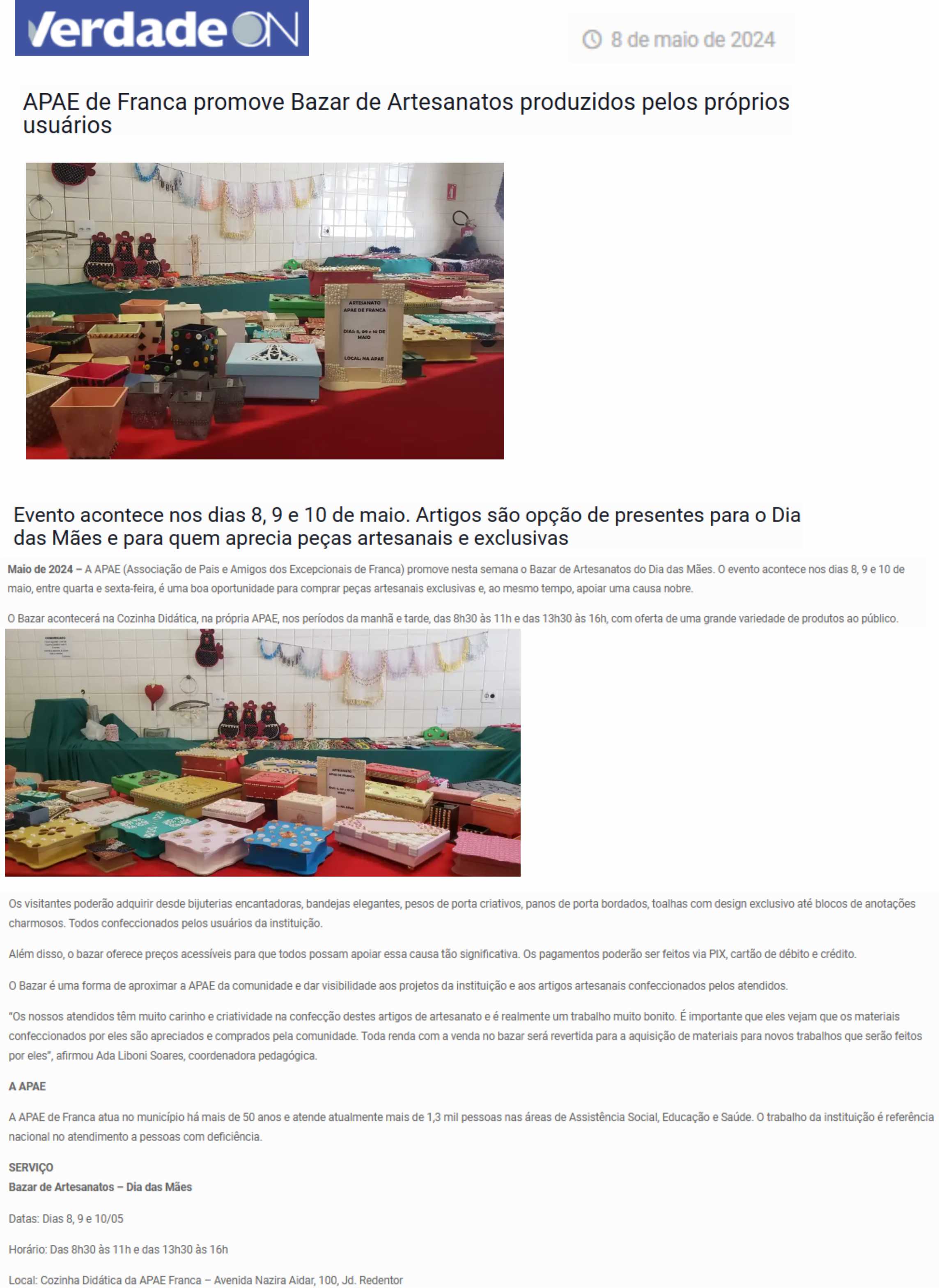 02.07.25 Vi no Site APAE de Franca realiza Bazar de Quitutes nesta sexta, 4 de julho, com...