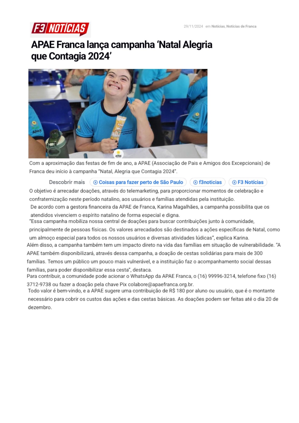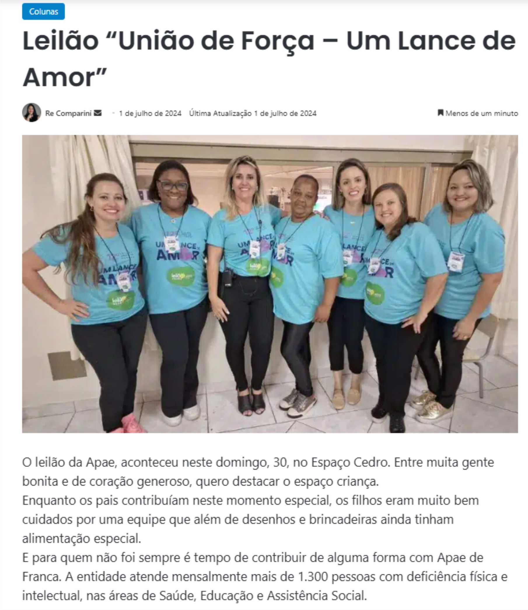 07.07.25 Portal Fato no Ato Apae mobiliza solidariedade em Franca com Campanha “Doe Amor,...