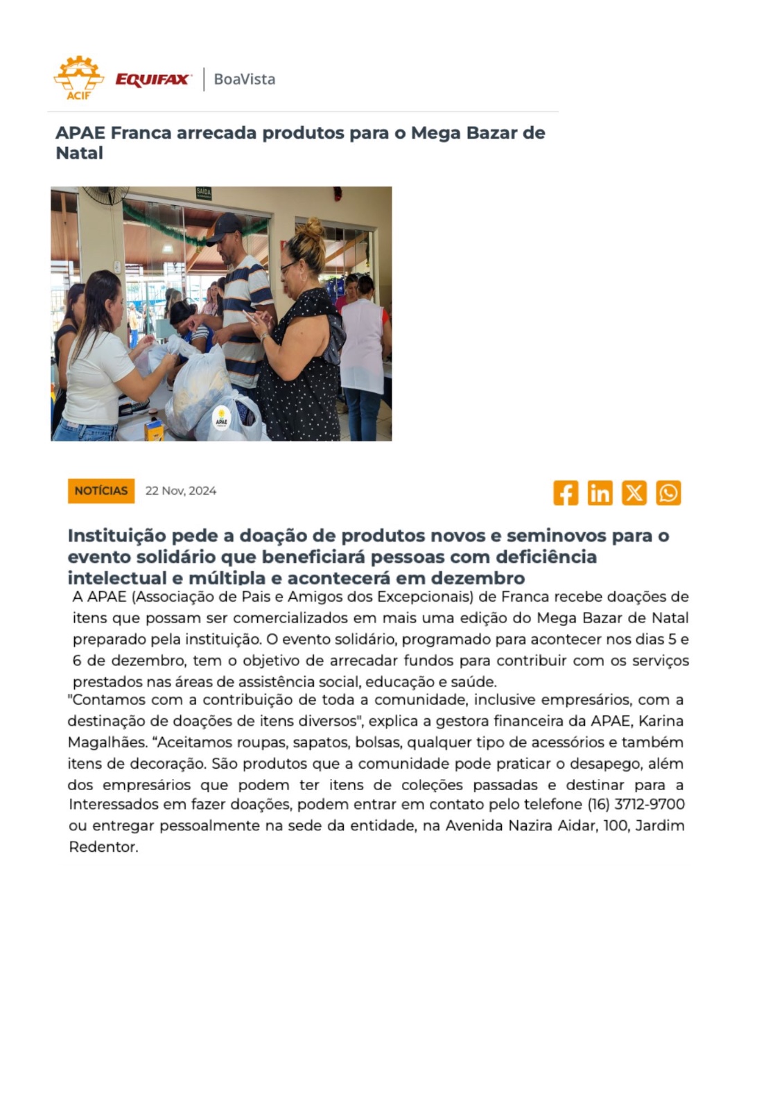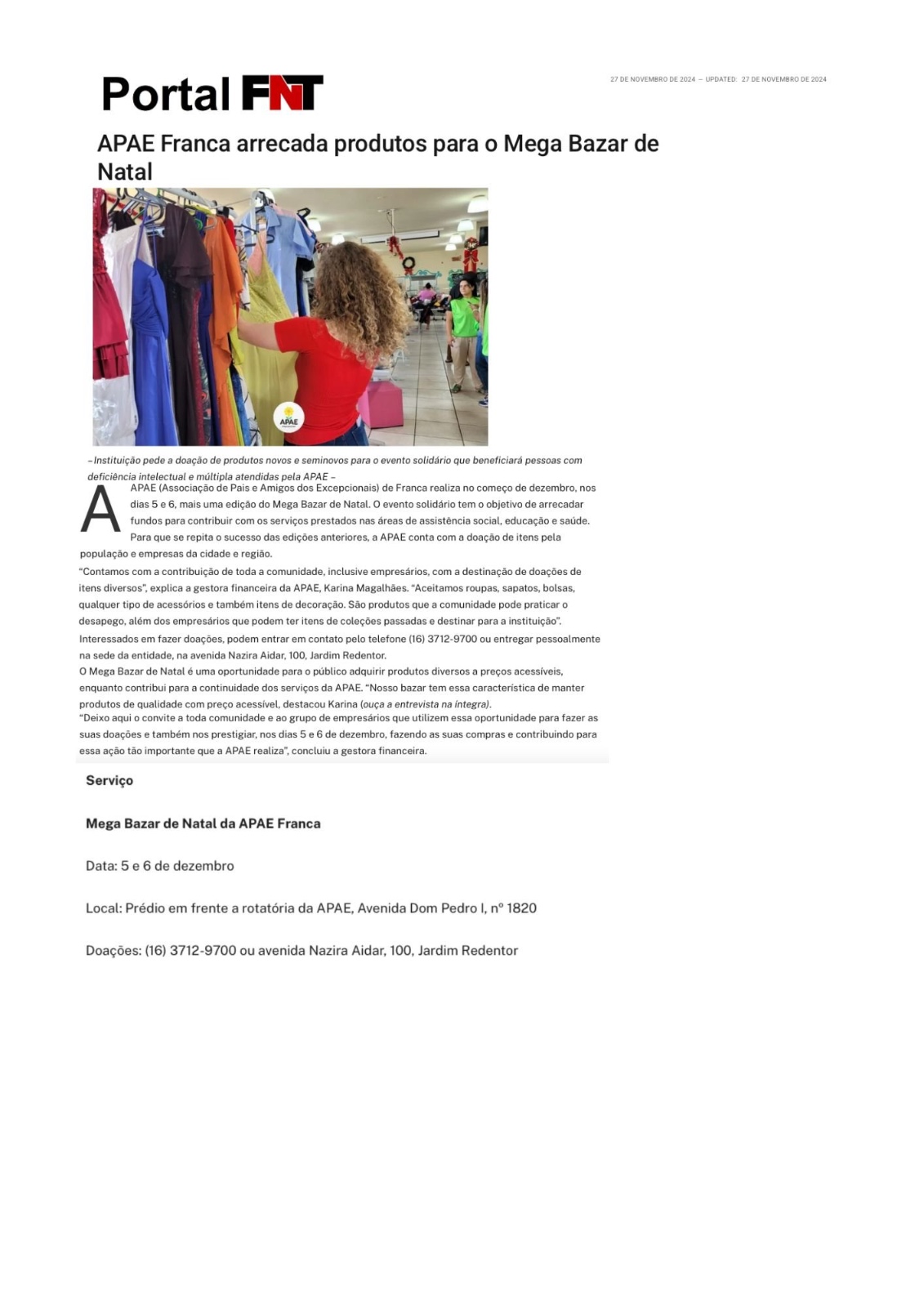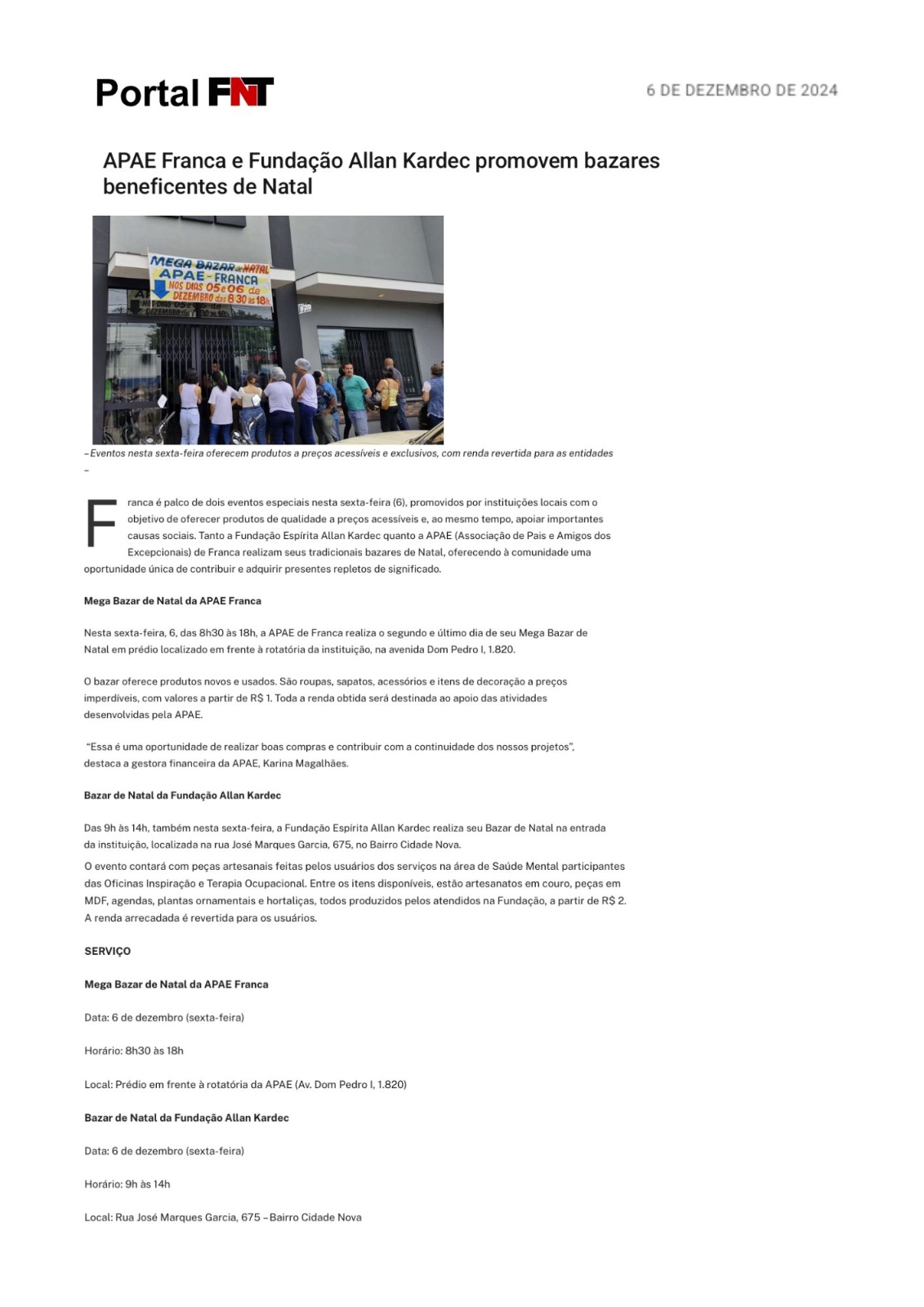 25.11.25 Pulsar Noticias APAE Franca promove Mega Bazar solidário de Natal - 251125-pulsar...