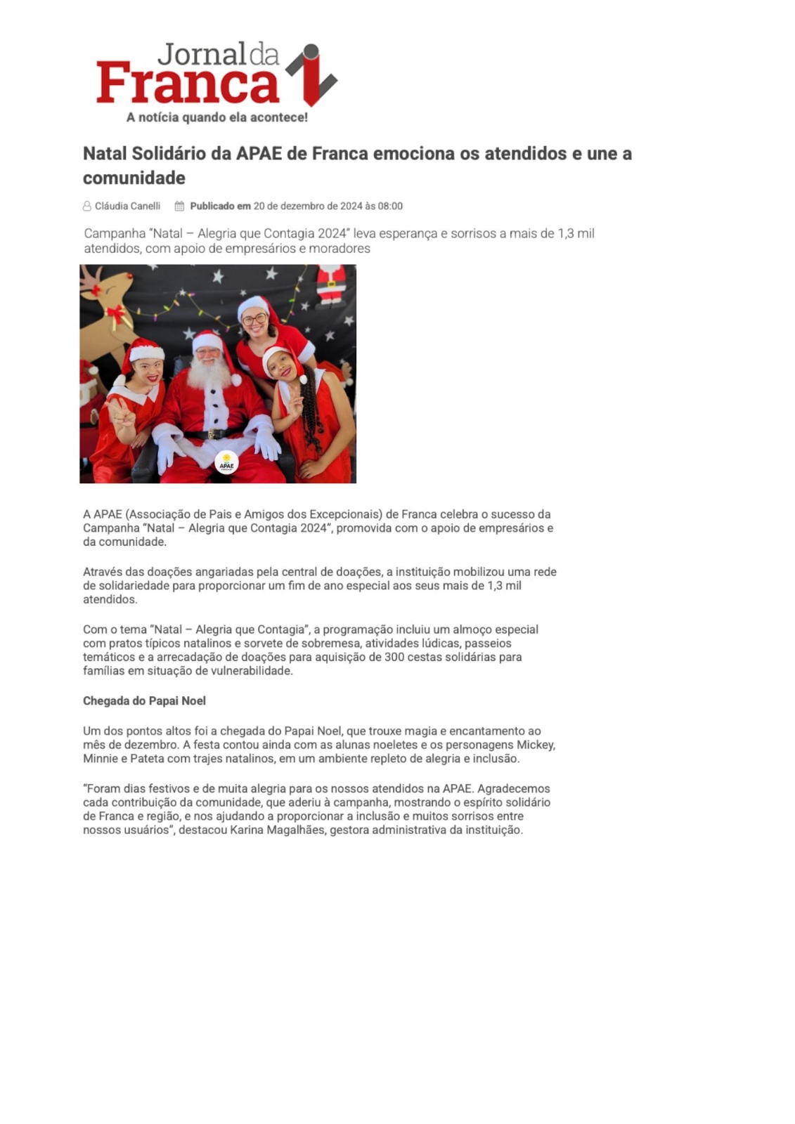 17.12.25 PORTAL FTN Papai Noel emociona atendidos na chegada à APAE Franca - 171225-portal...