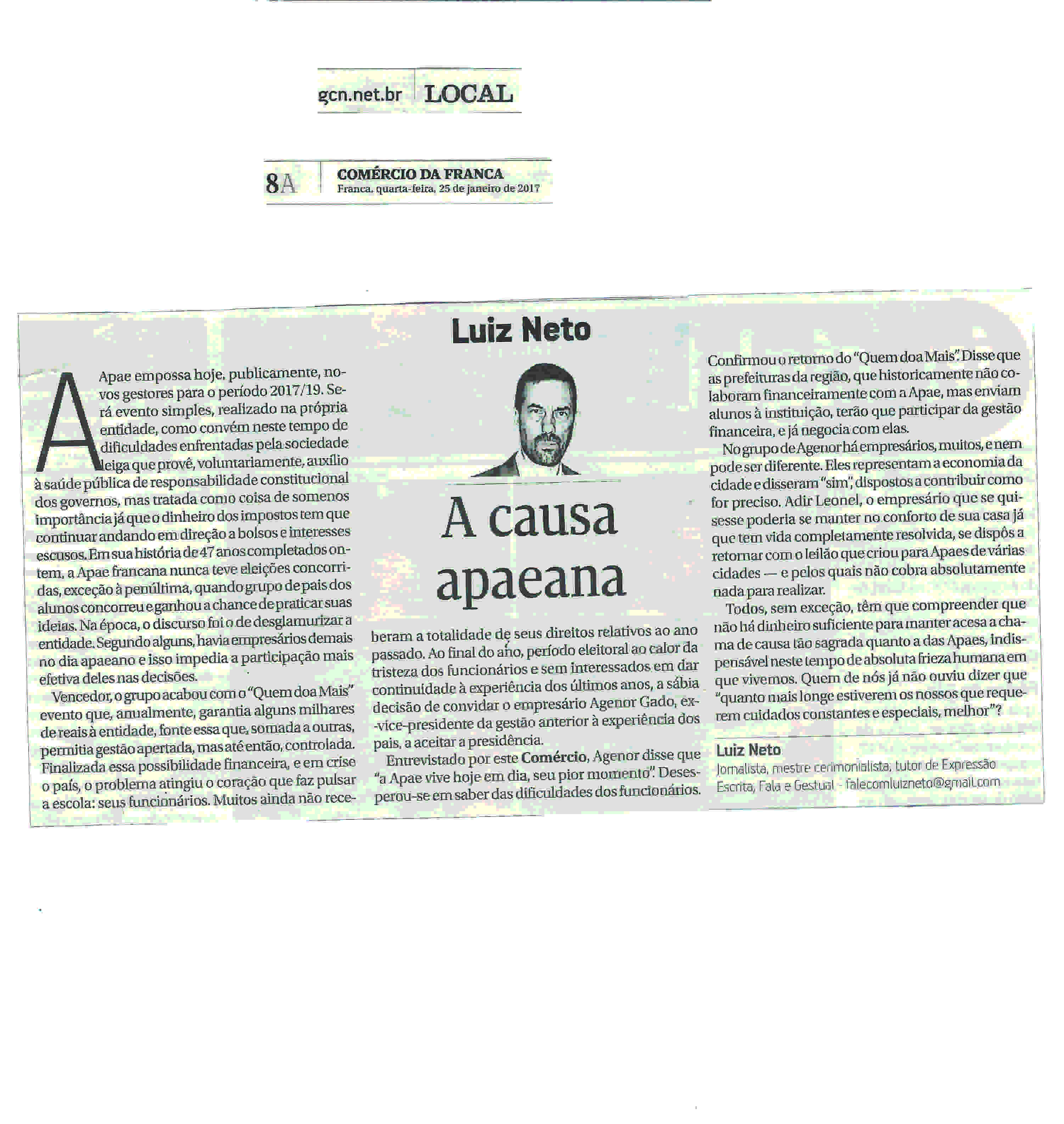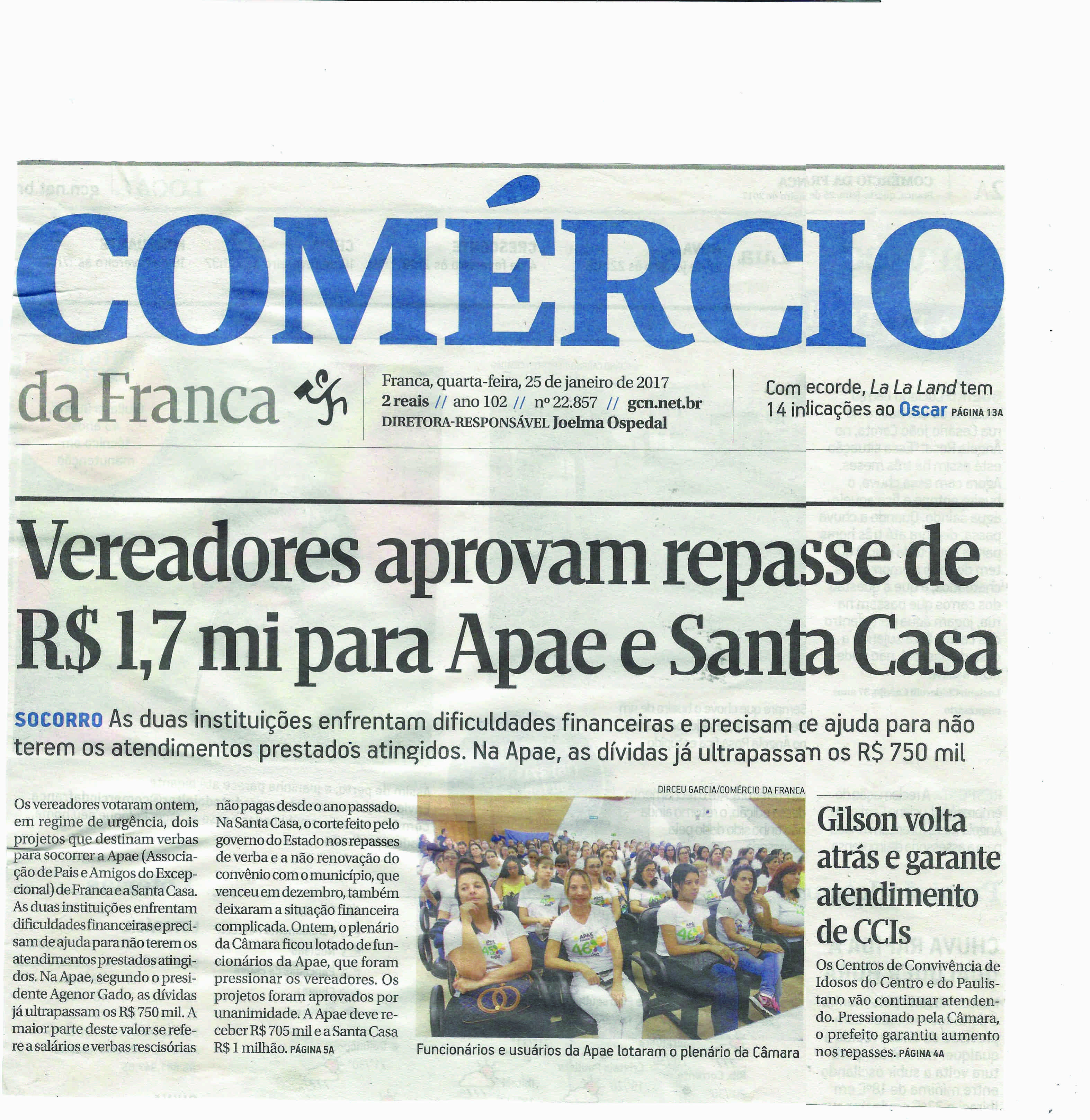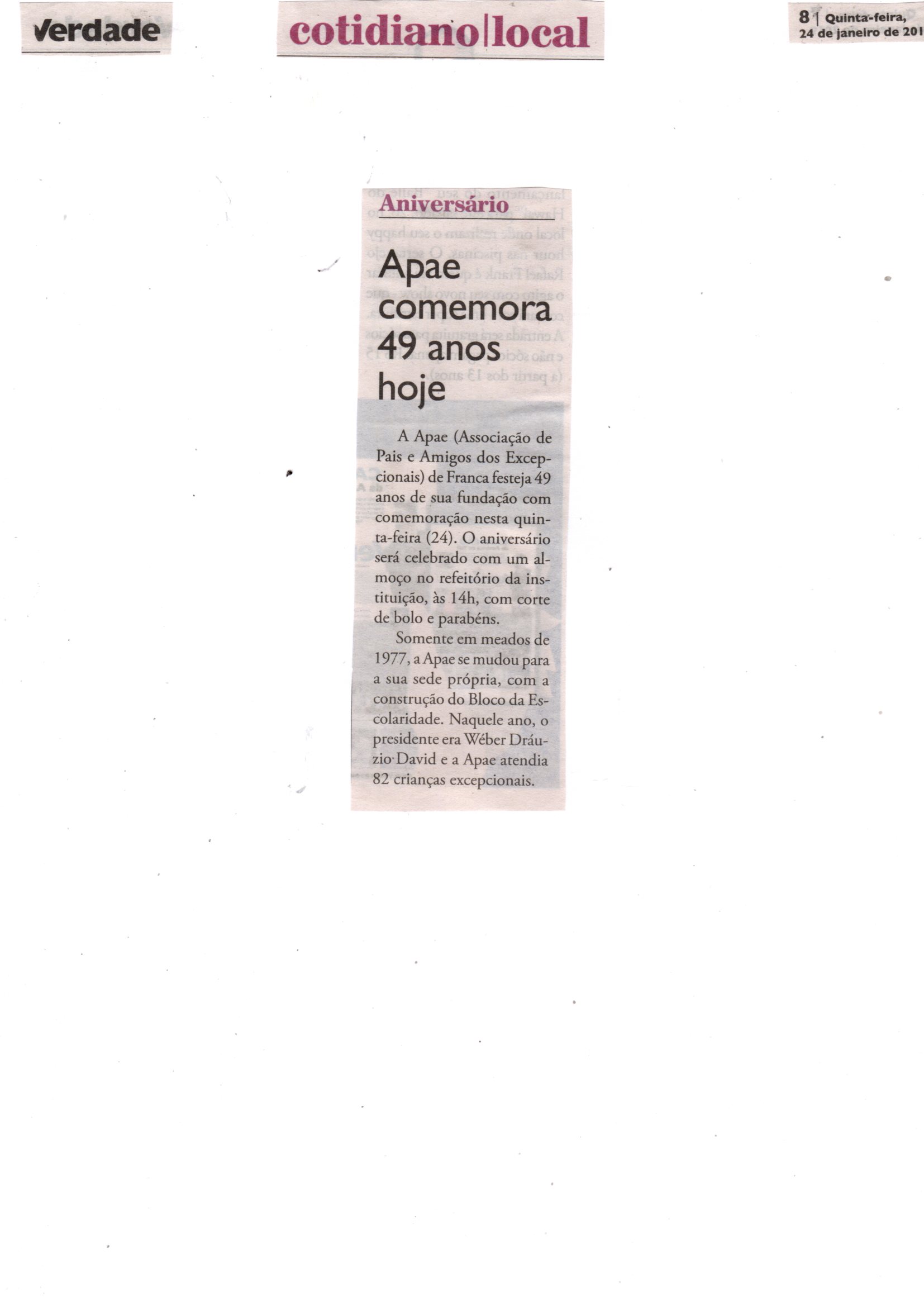 24-25/01/16 - COMÉRCIO DA FRANCA - Apae de Franca completa hoje 46 anos de fundação - 24-...