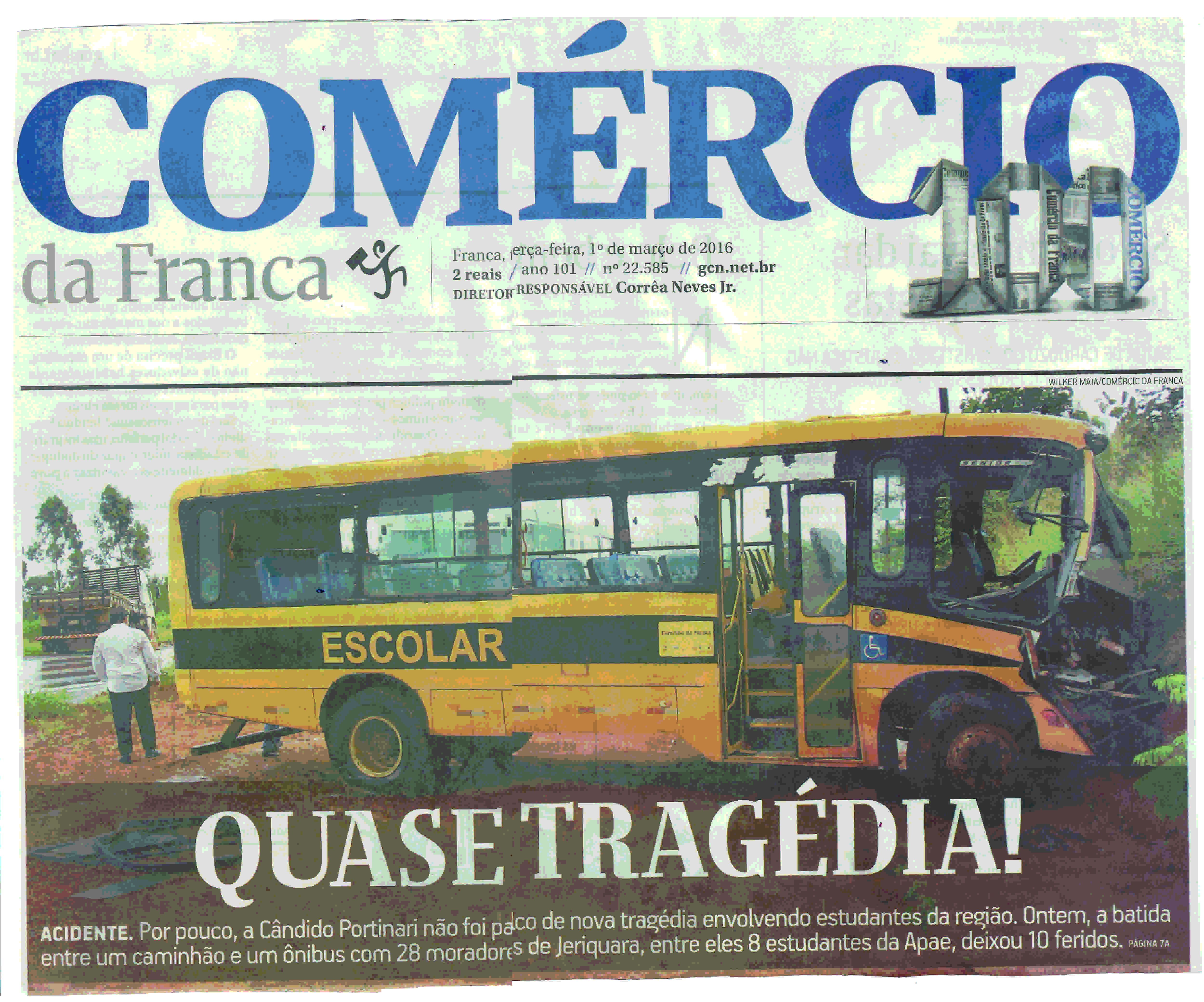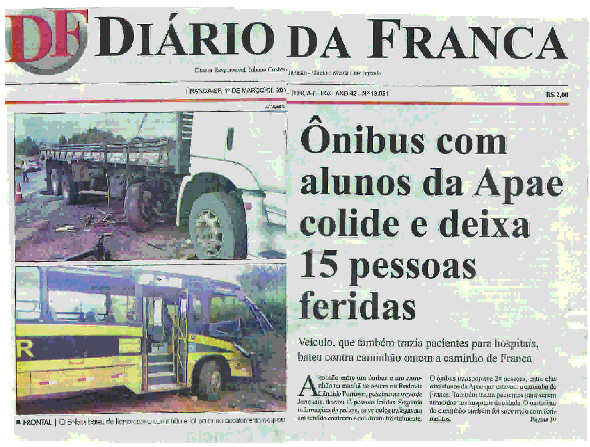 01/03/16 - DIÁRIO DA FRANCA - Ônibus com alunos da Apae colide e deixa 15 pessoas feridas...