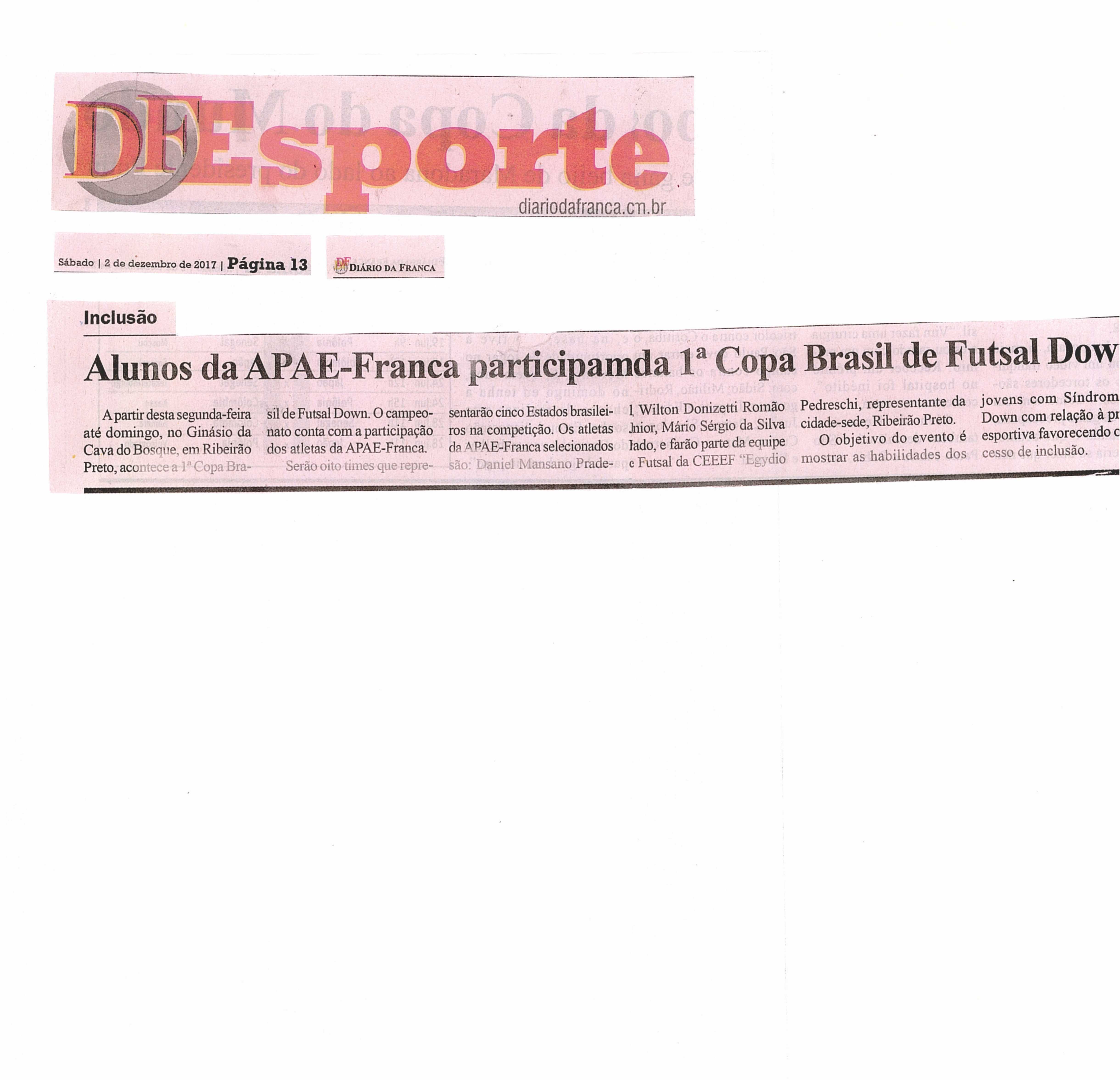 17/02/16 - JORNAL DA FRANCA - Apae Franca fará abertura da Terceira Copa Regional Três Tam...