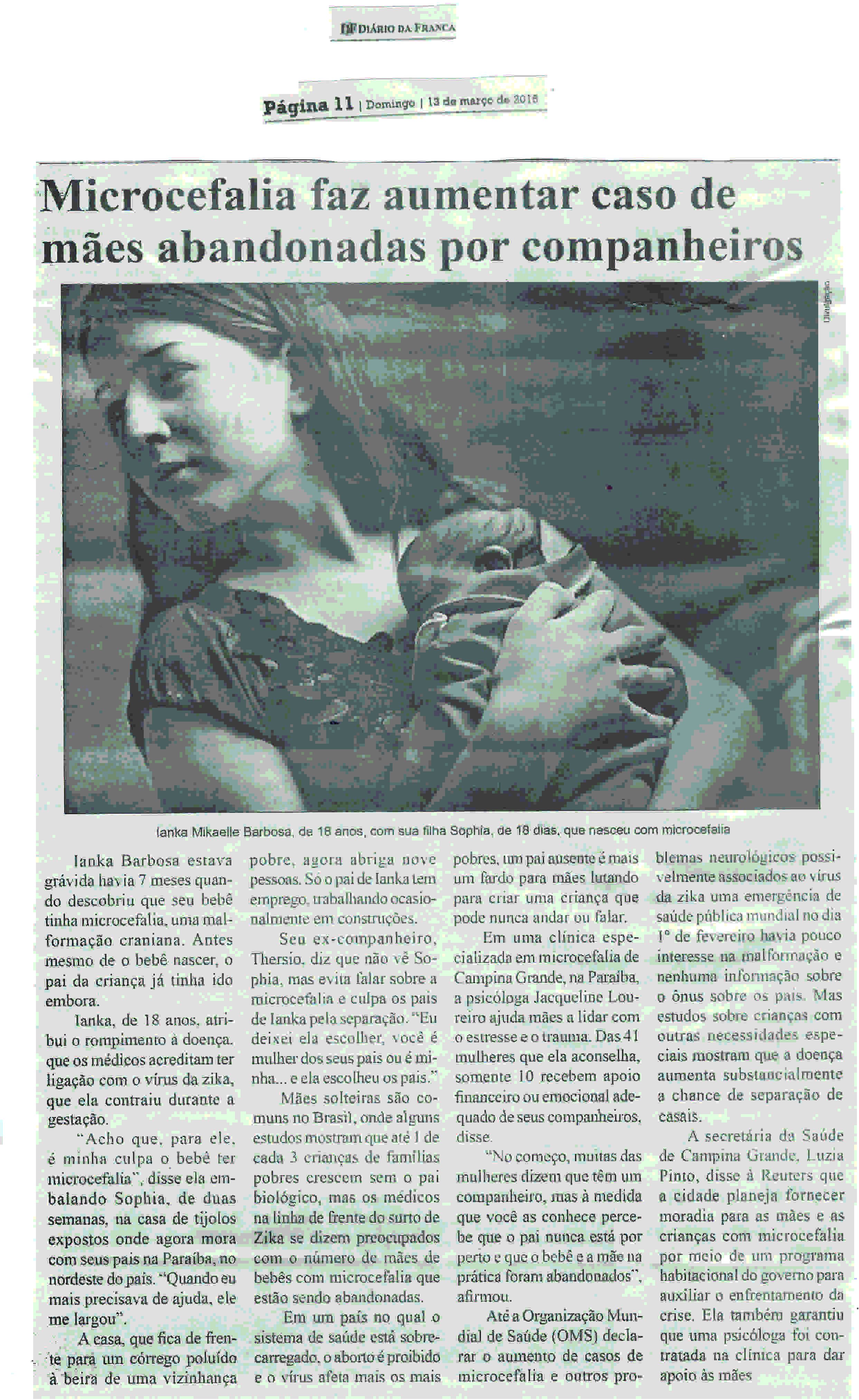 13/03/16 - DIÁRIO DA FRANCA - Microcefalia faz aumentar casos de mães abandonadas - 1303-...