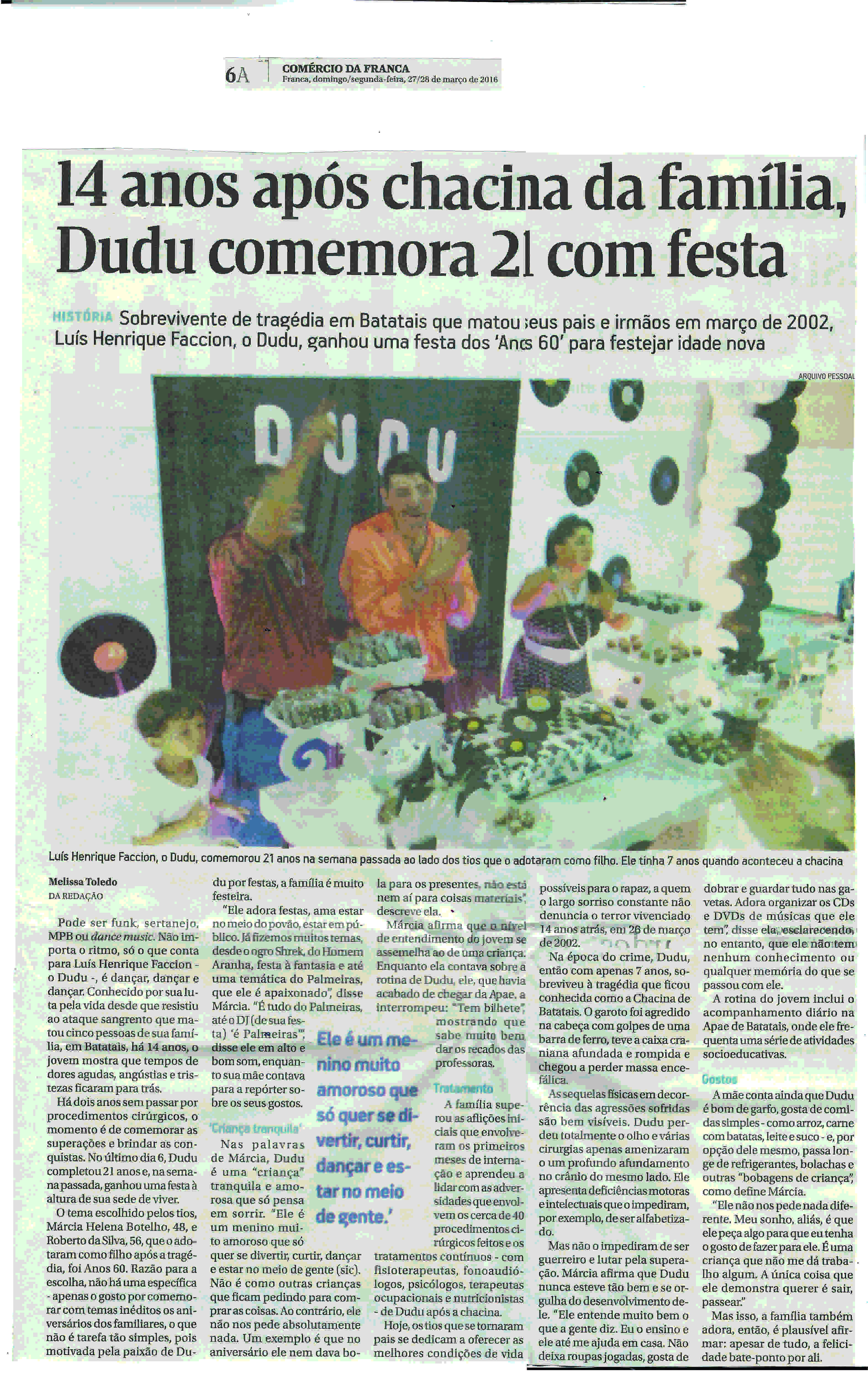 27.28/03/16 - COMÉRIO DA FRANCA - 14 anos após chacina da família Dudu comemora 21 com fes...