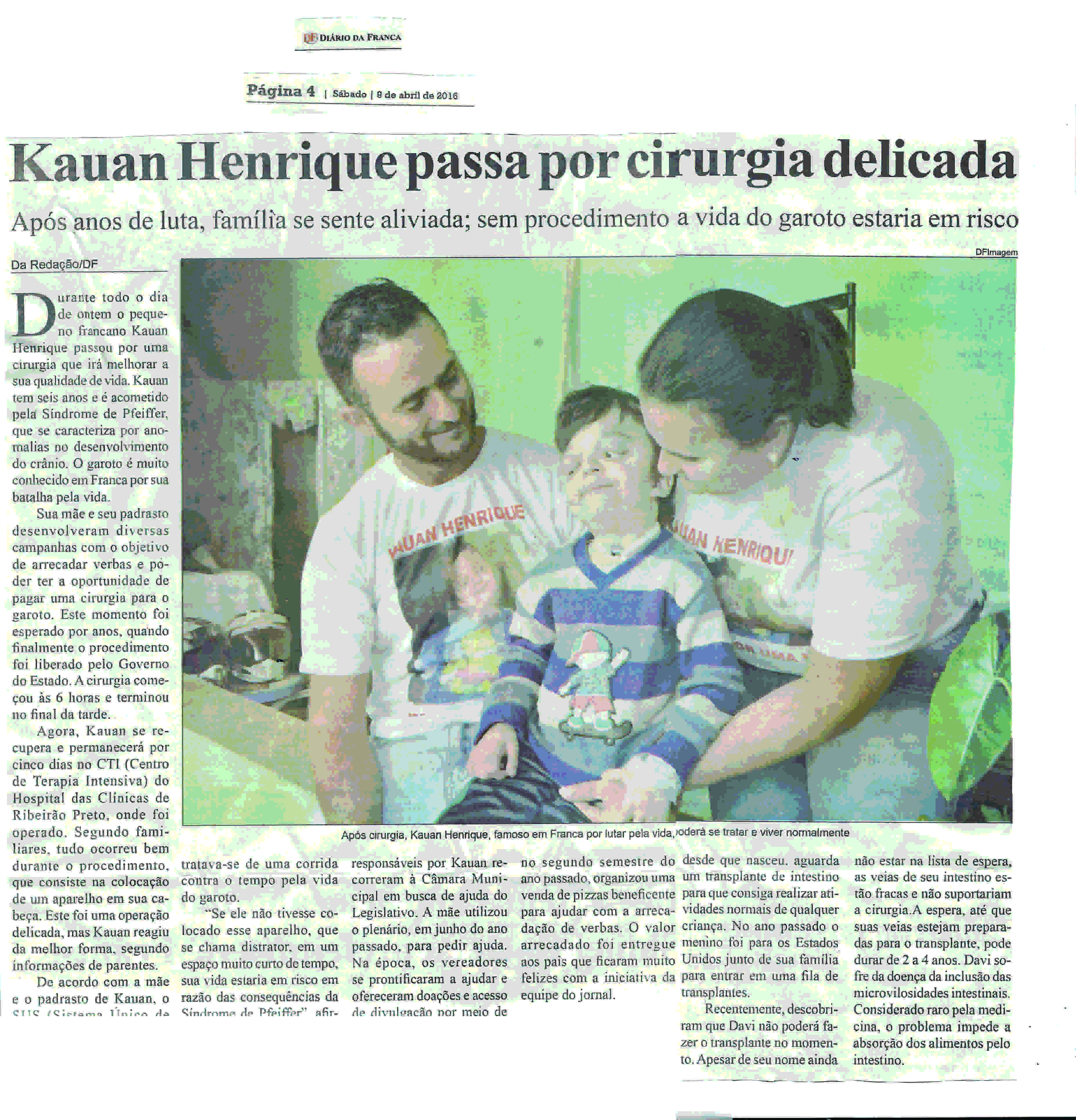 09/04/16 - DIÁRIO DA FRANCA - Kauan Henrique passa por cirurgia delicada - 0904-kauan-hen...