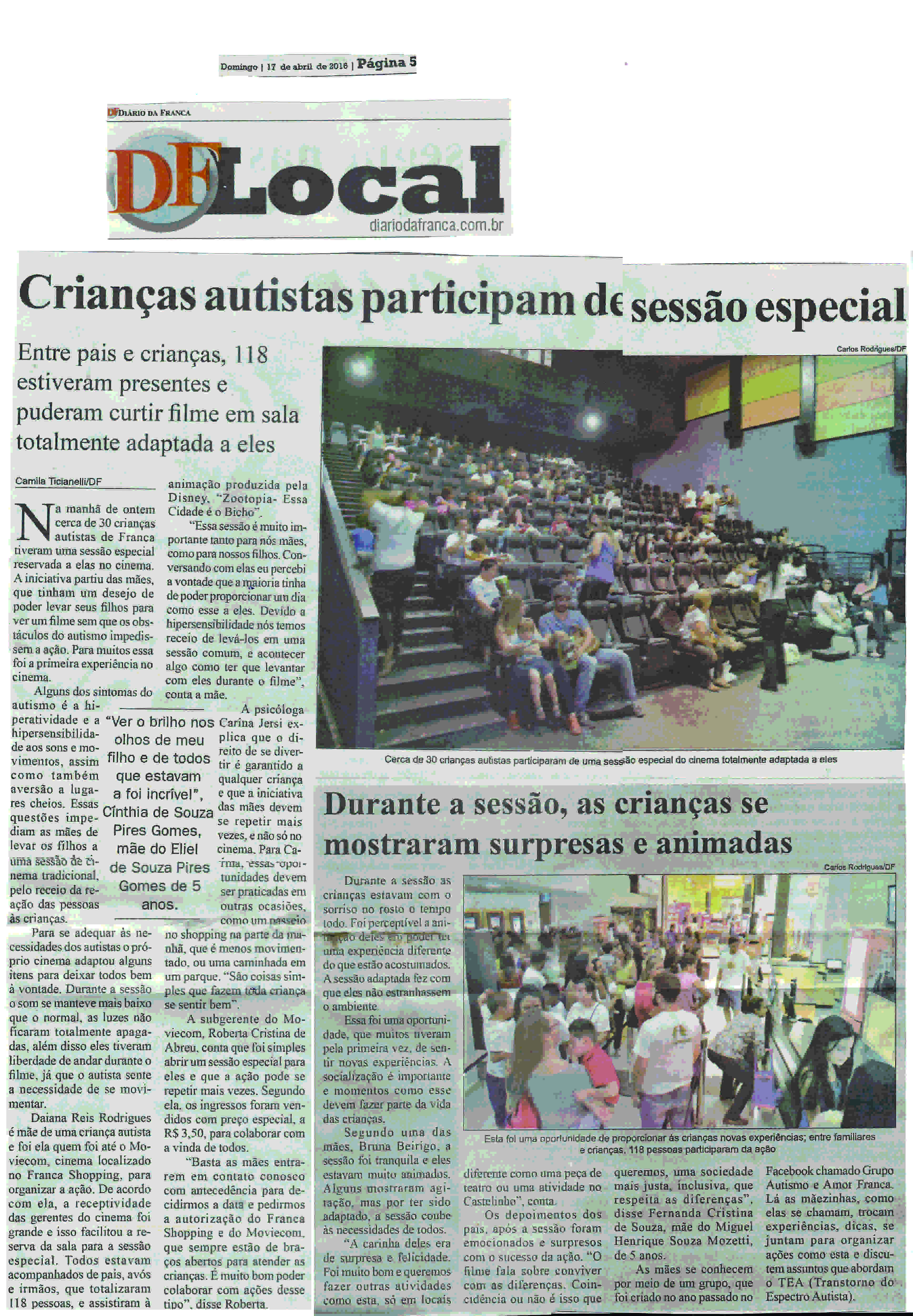 17/04/16 - DIÁRIO DA FRANCA - Crianças autistas participam de sessão especial - 1704-diari...