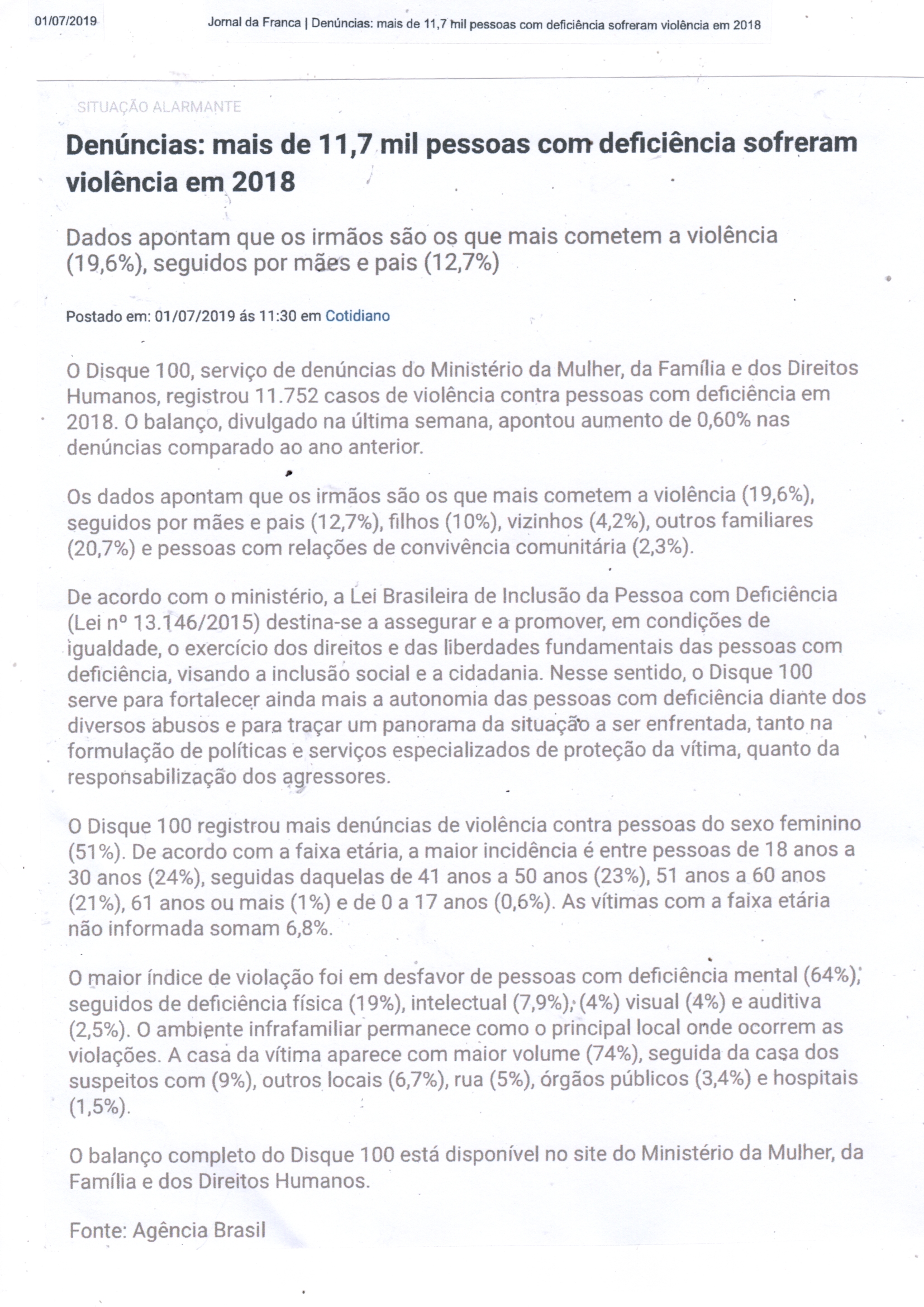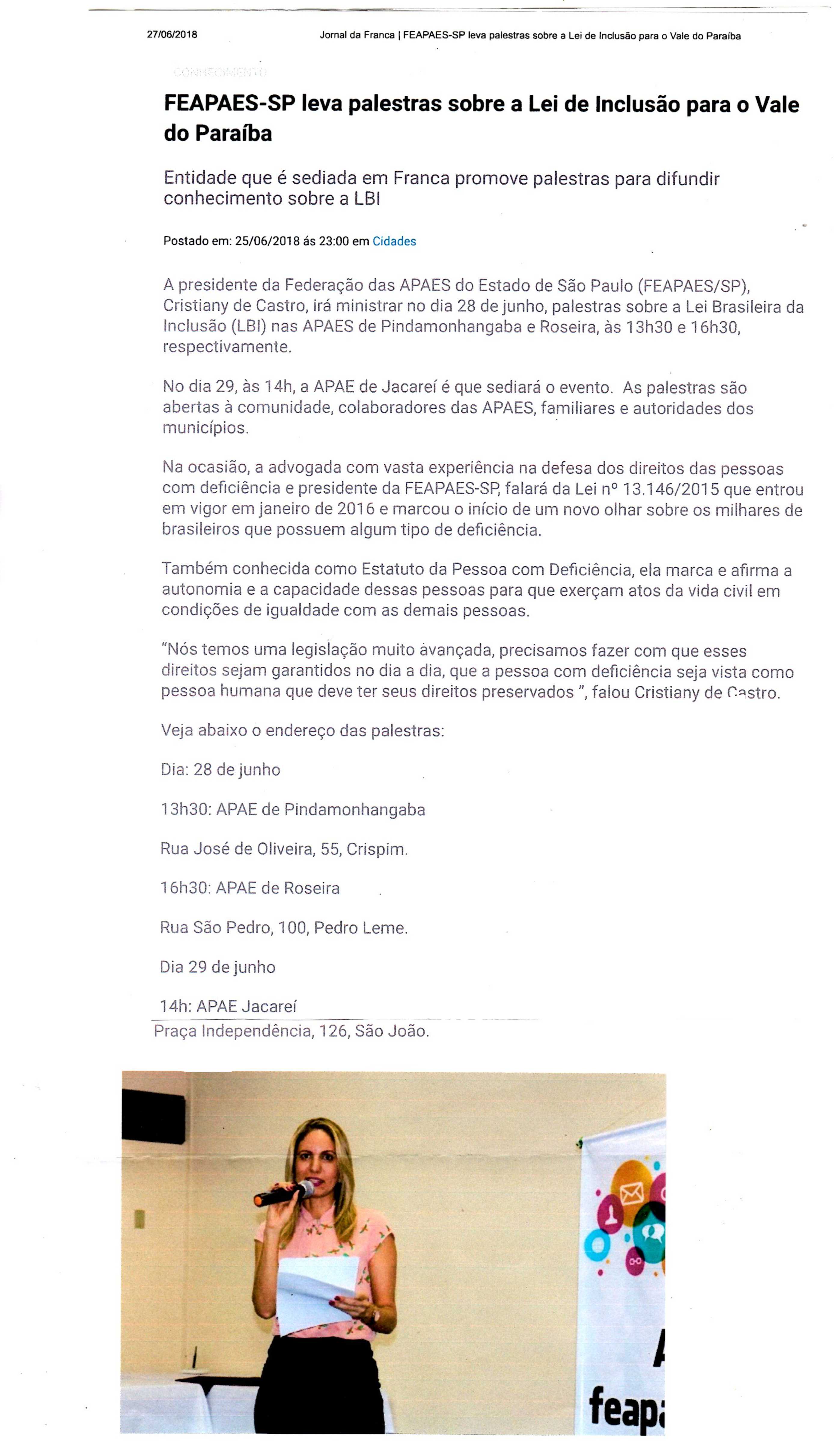 24/06/16 - JORNAL DA FRANCA - Fórum é voltado a discutir a situação real das pessoas com d...