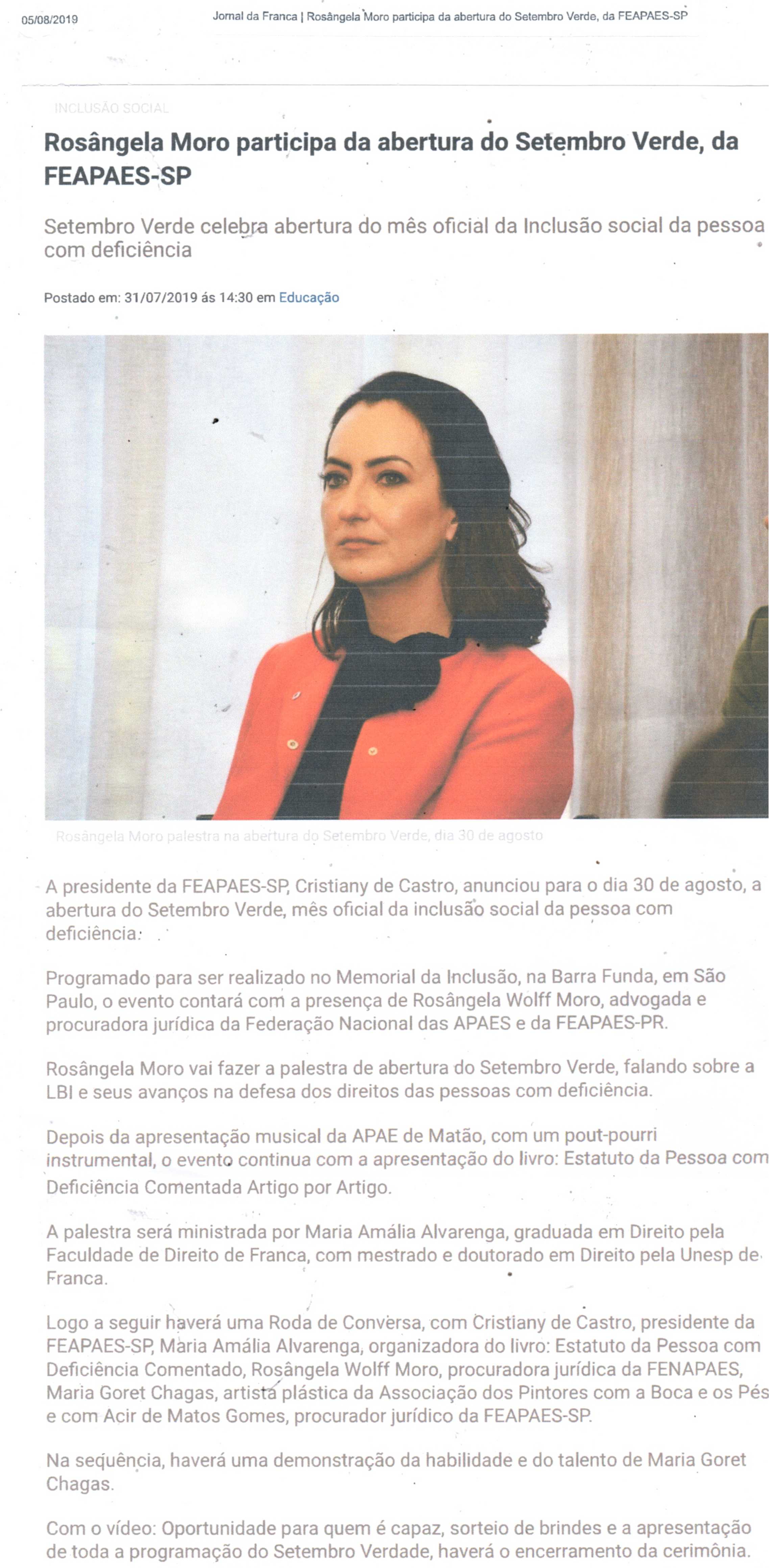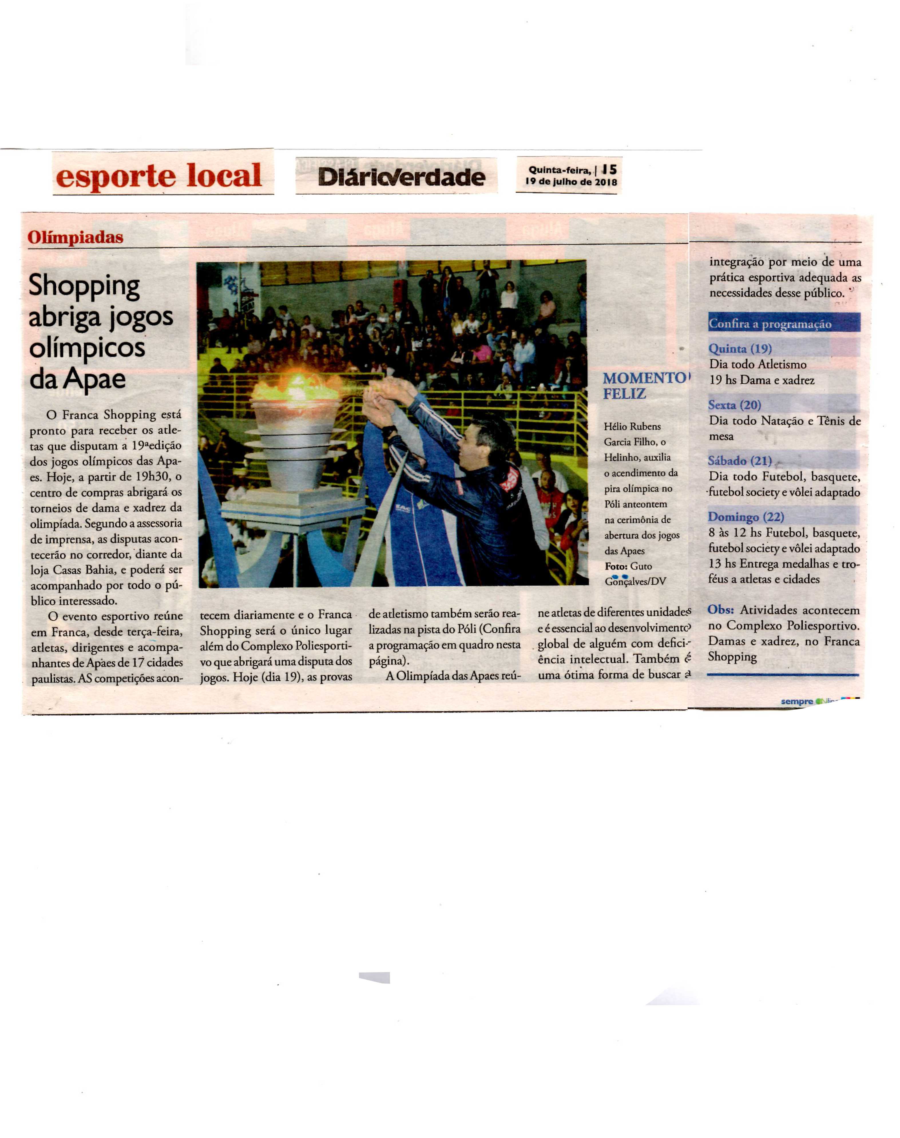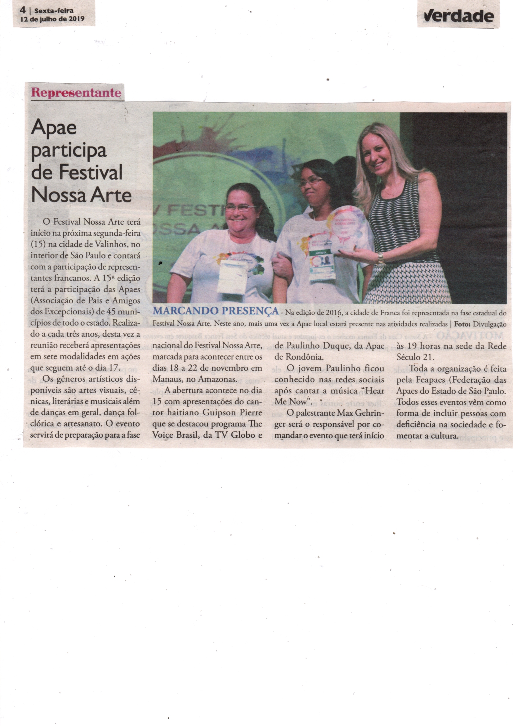 15/07/16 - JORNAL DA FRANCA - Apaes de Patrocínio Paulista e Batatais participam de Festiv...